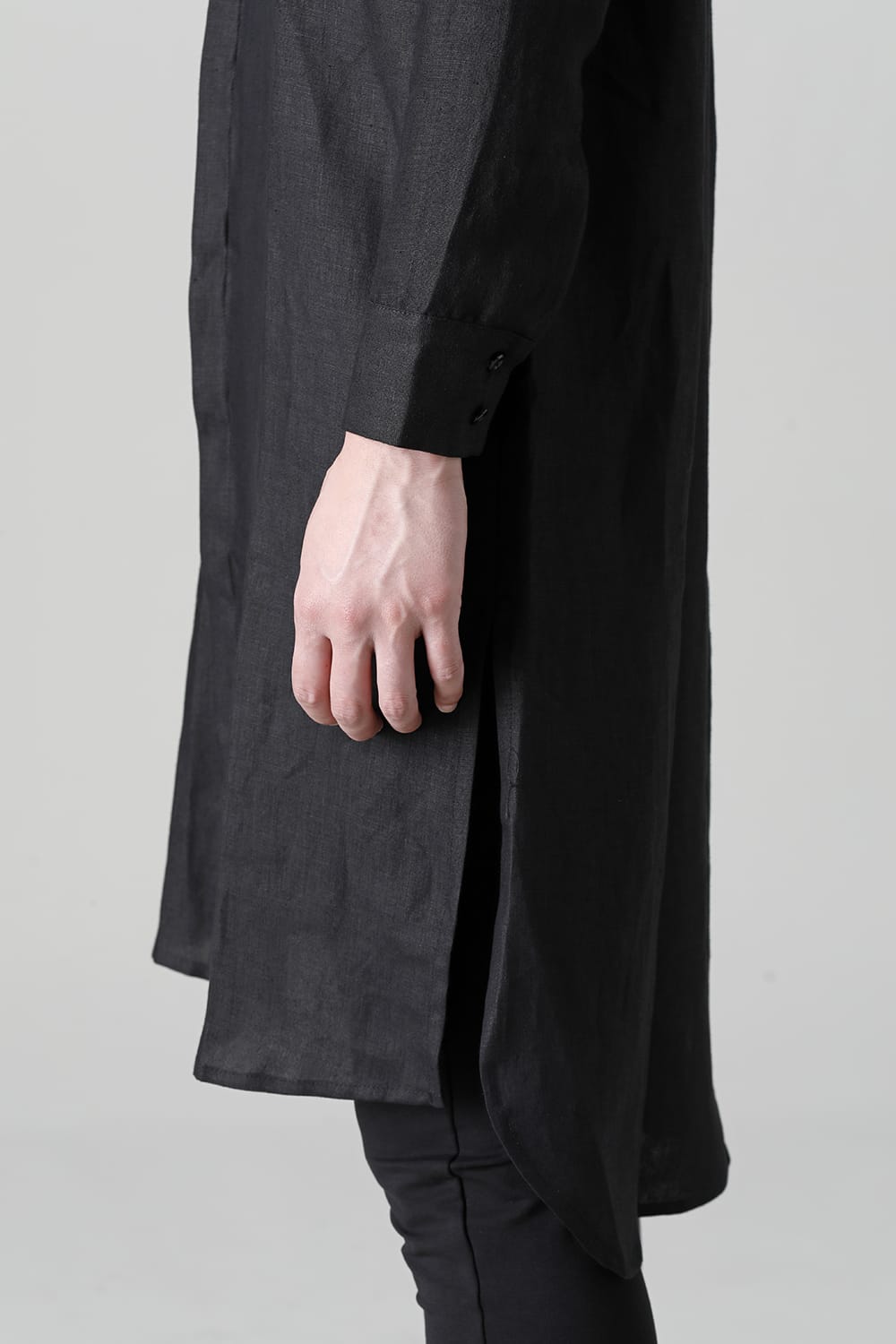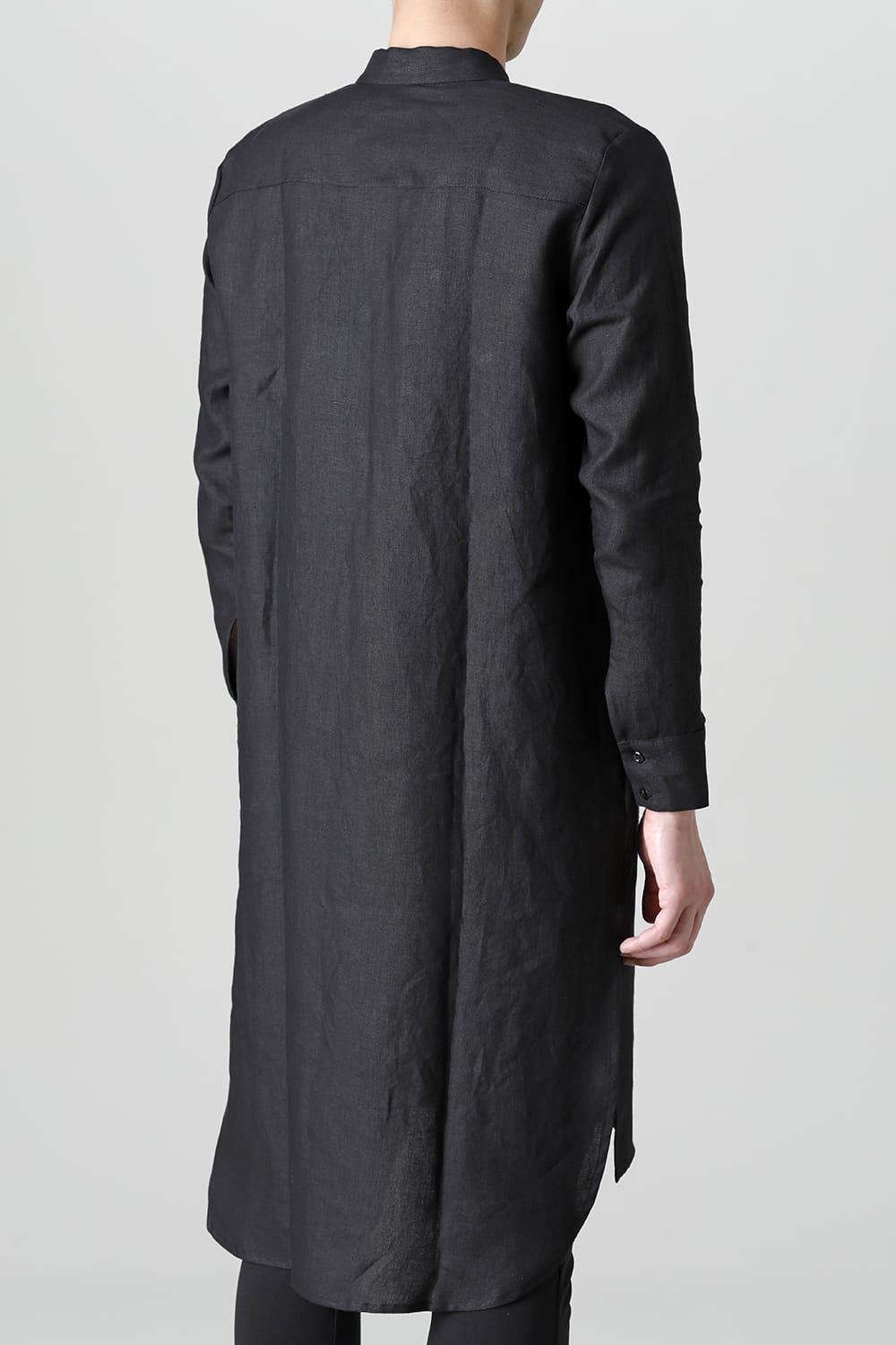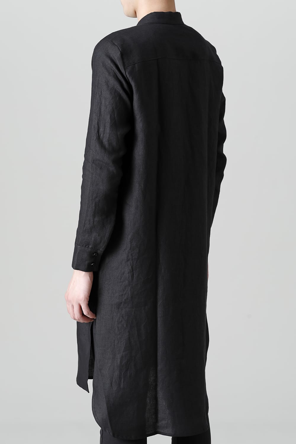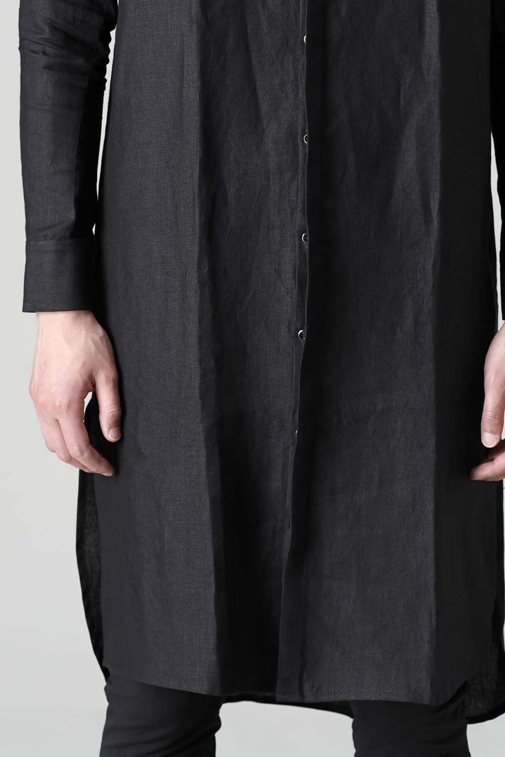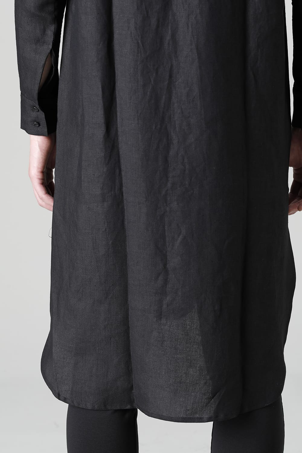 ・環境に優しい麻素材を使用した、膝丈のボタンシャツ。