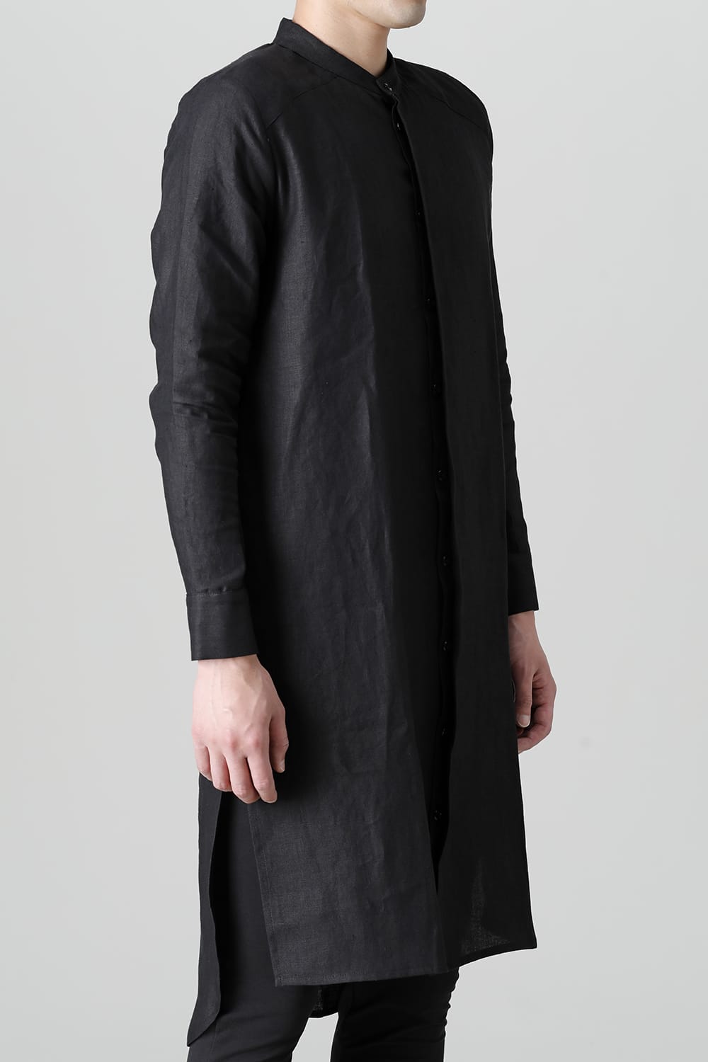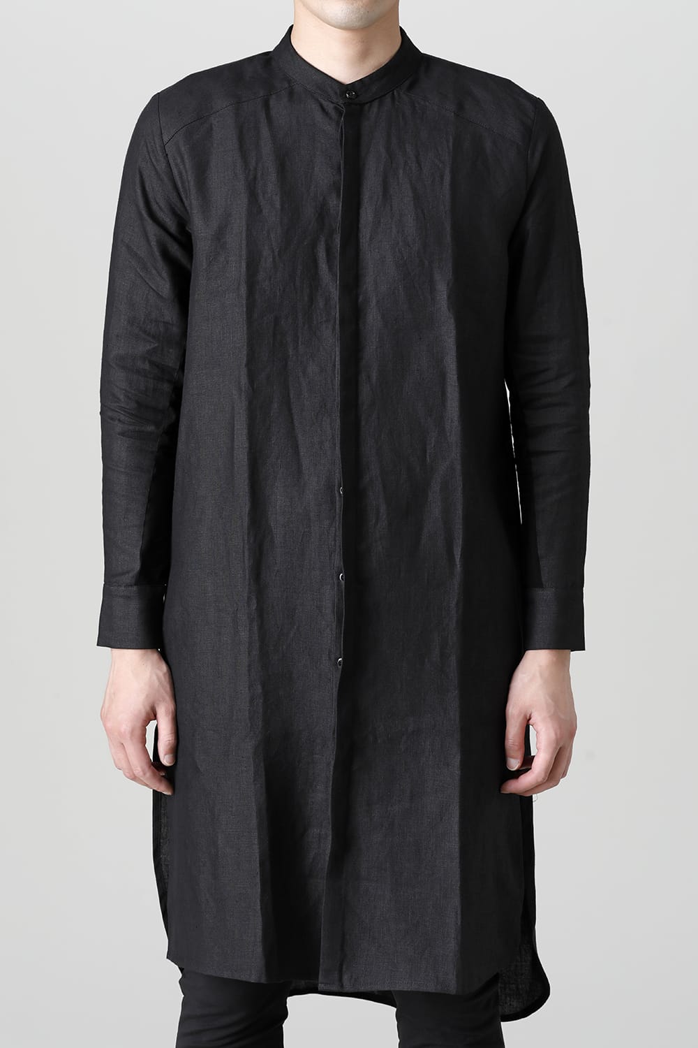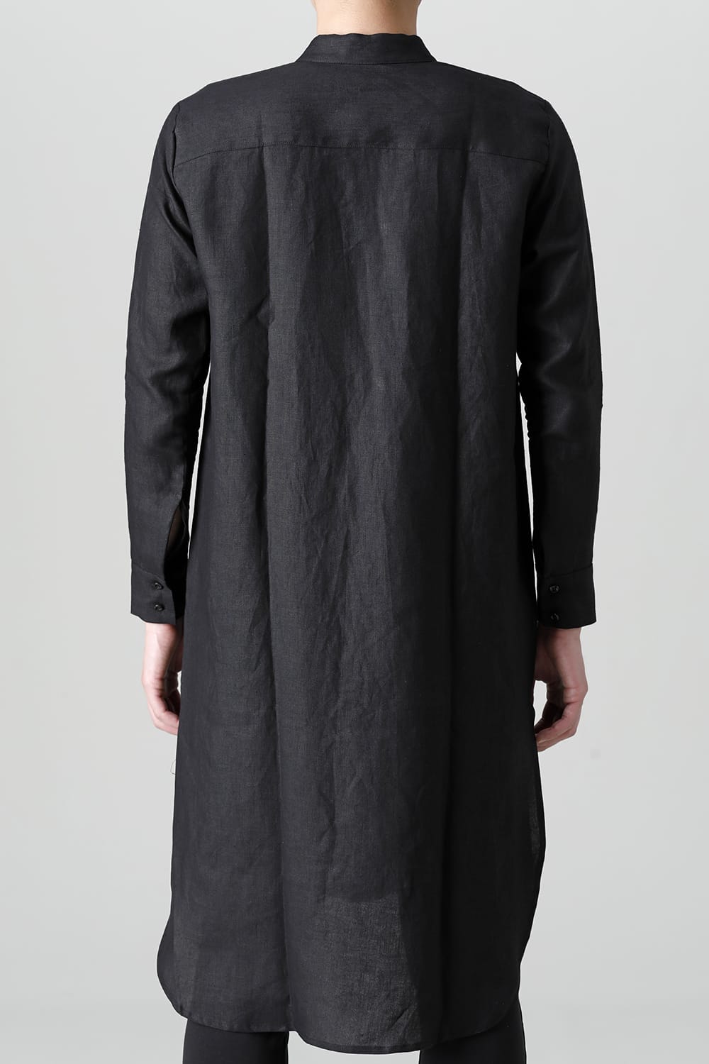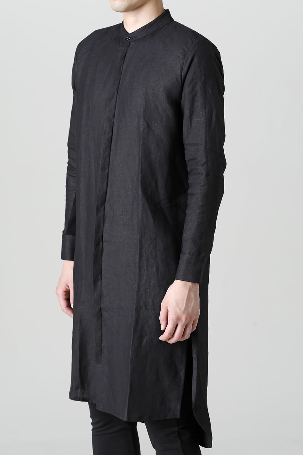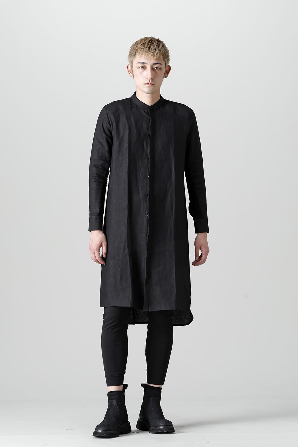 ・環境に優しい麻素材を使用した、膝丈のボタンシャツ。