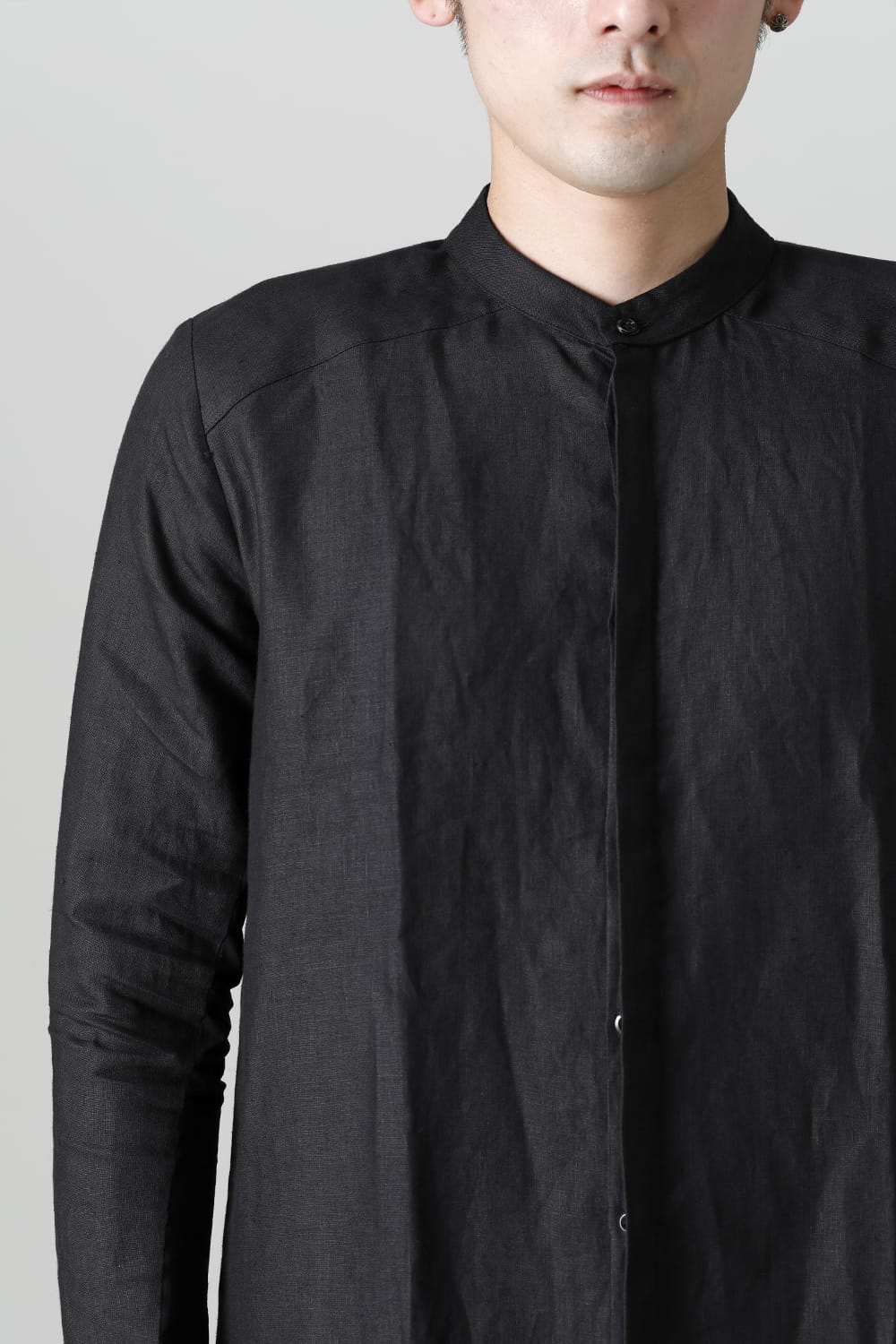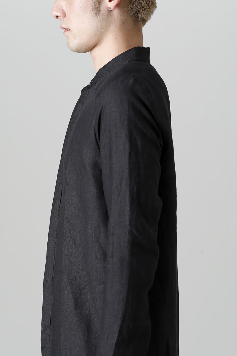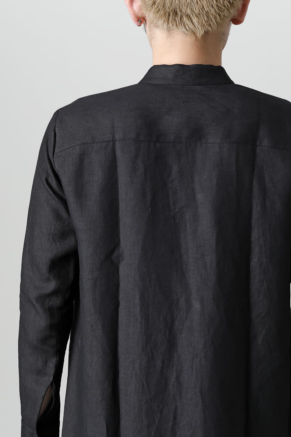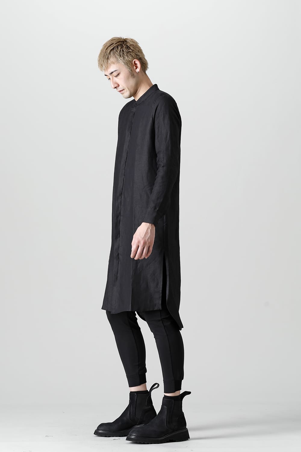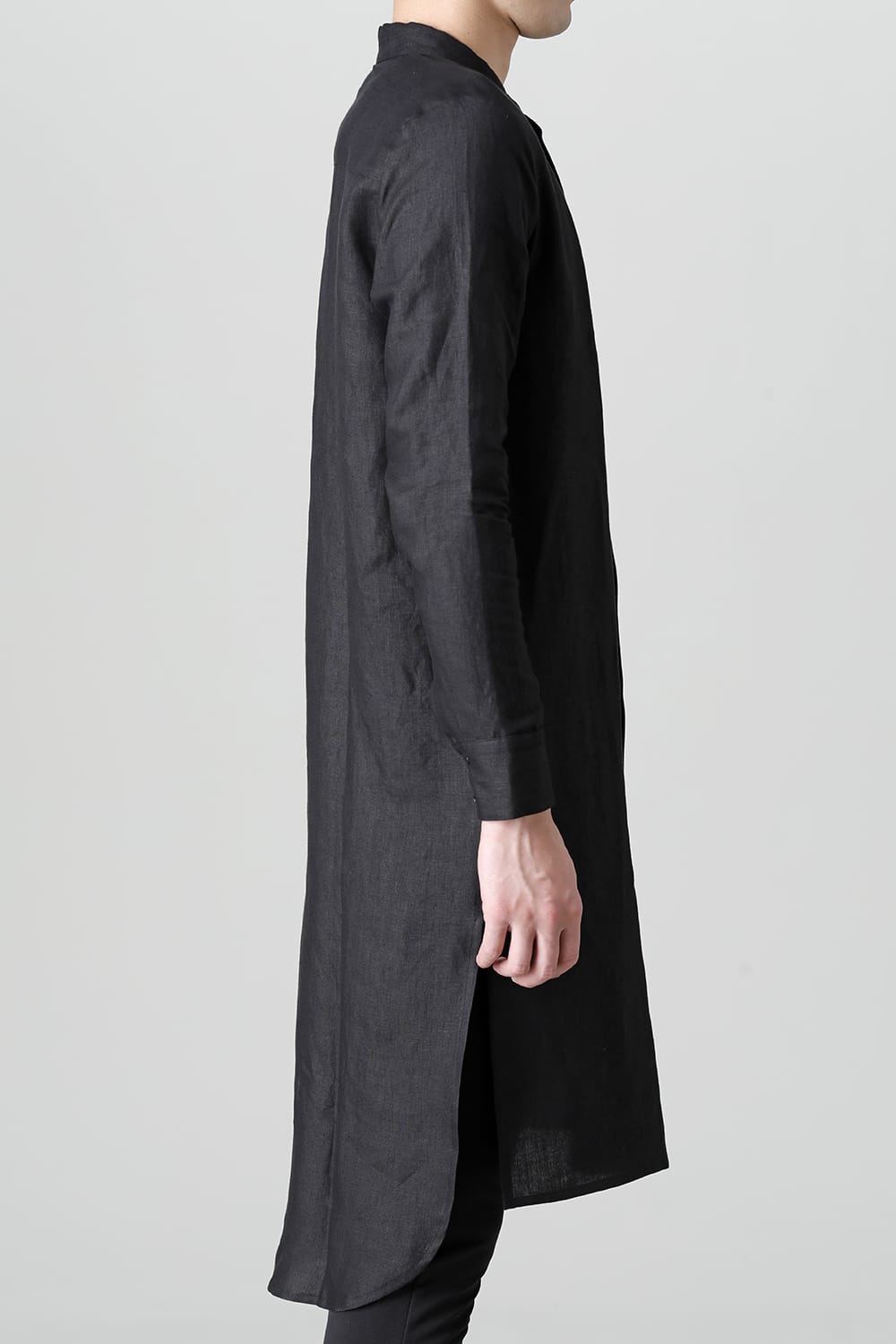 ・環境に優しい麻素材を使用した、膝丈のボタンシャツ。