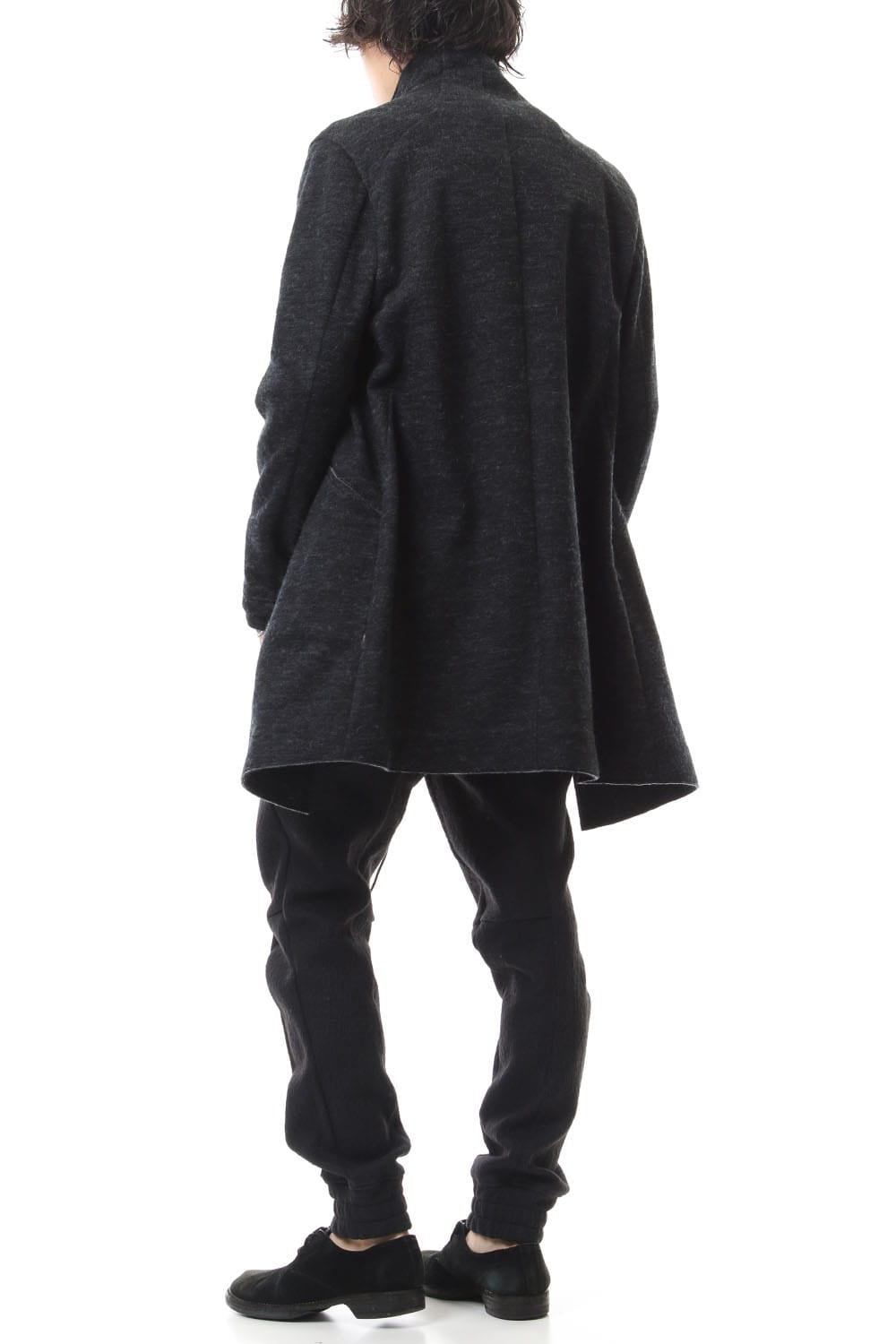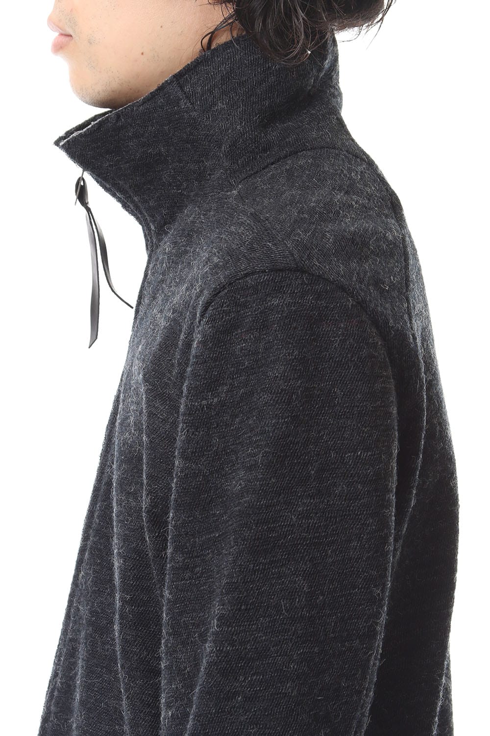 ・ノルウェーウールの糸で編んだガーゼニットとバルキーウールコットンジャージをボンディングし融合させ、表面の荒々し表情と肌面の柔らかな表情の2面性を生み出しました。