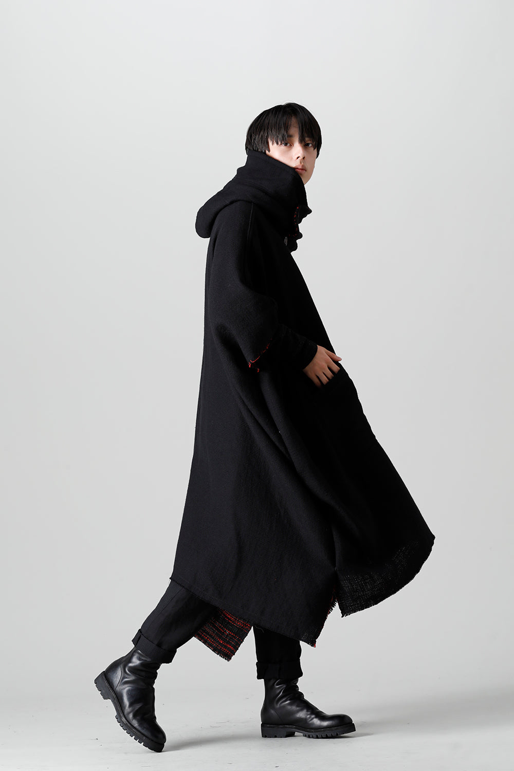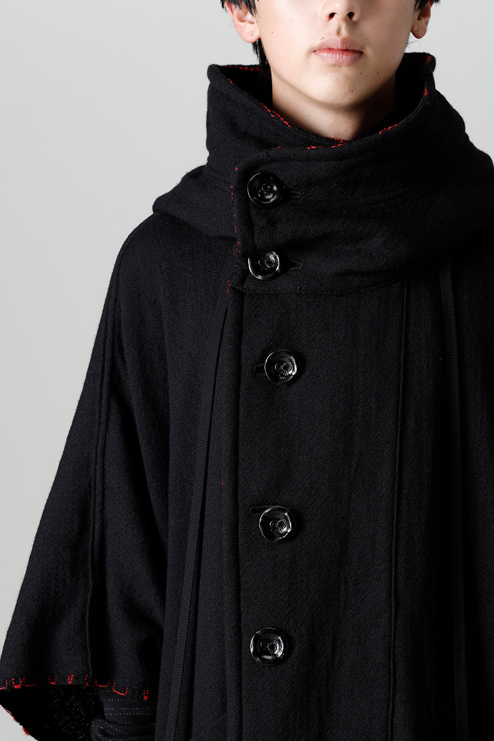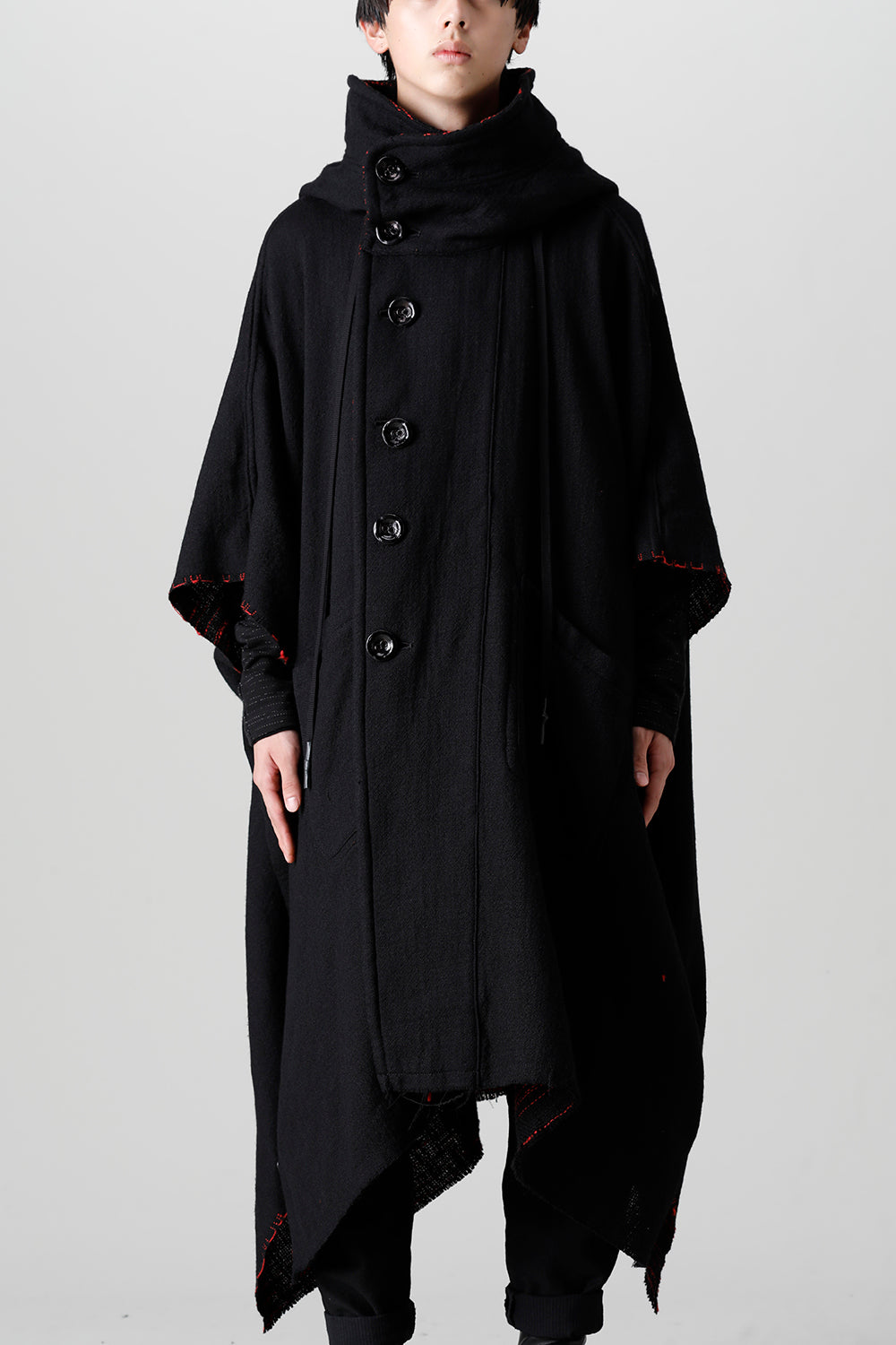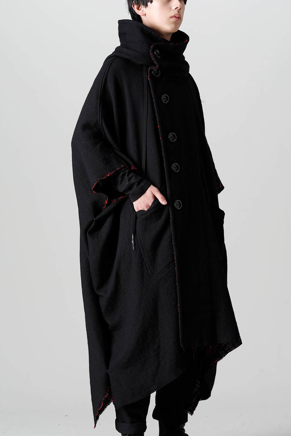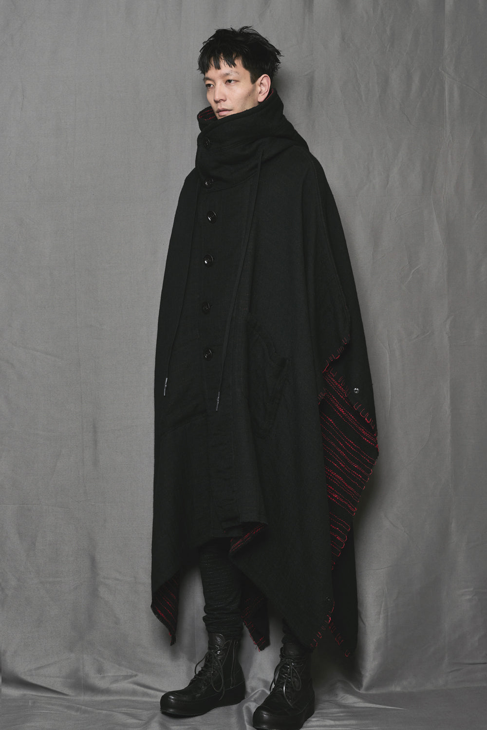 表:コットンスラブ糸 /裏:ウールの二重織スラブツイード素材のリバーシブルポンチョ。