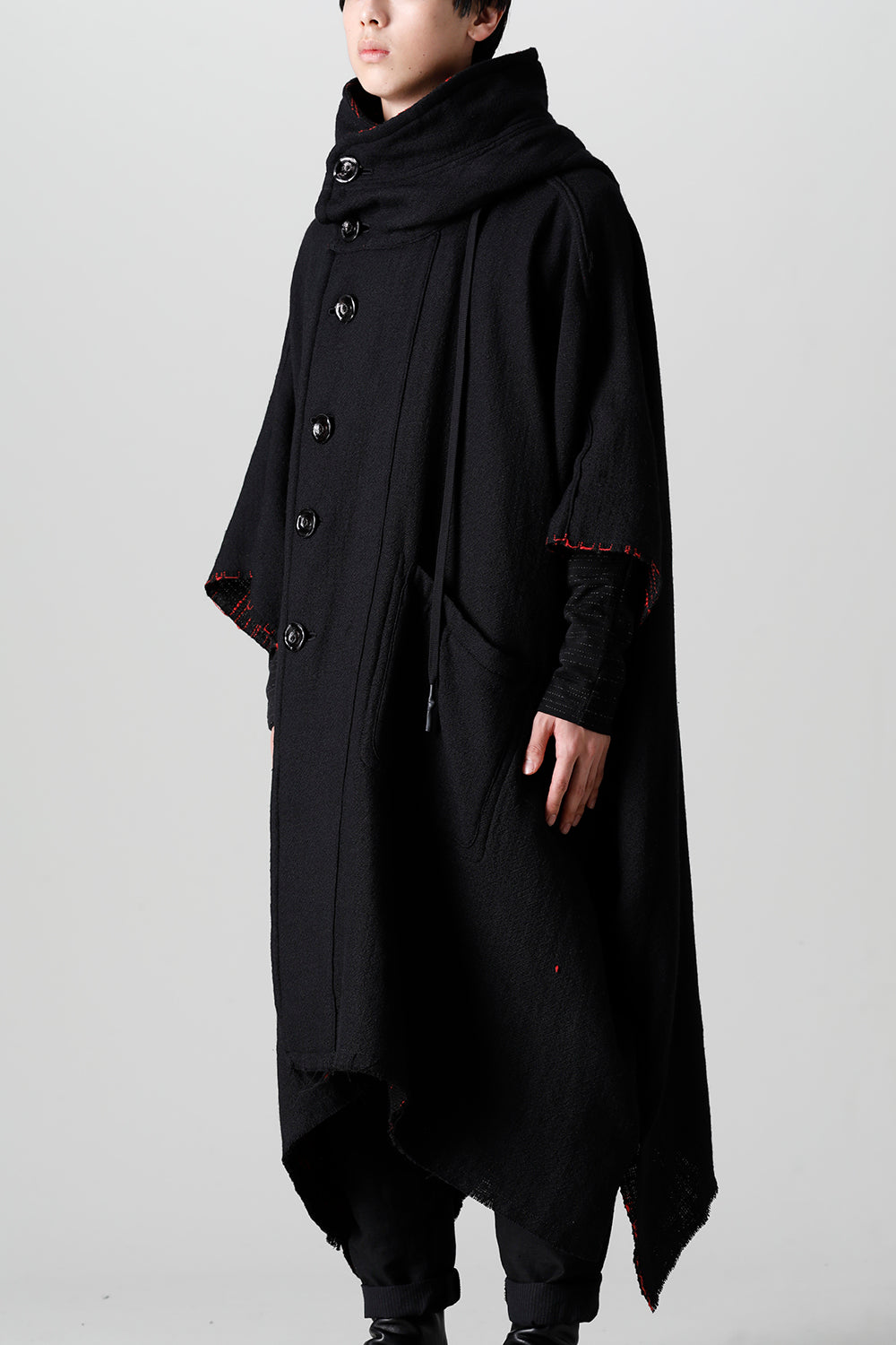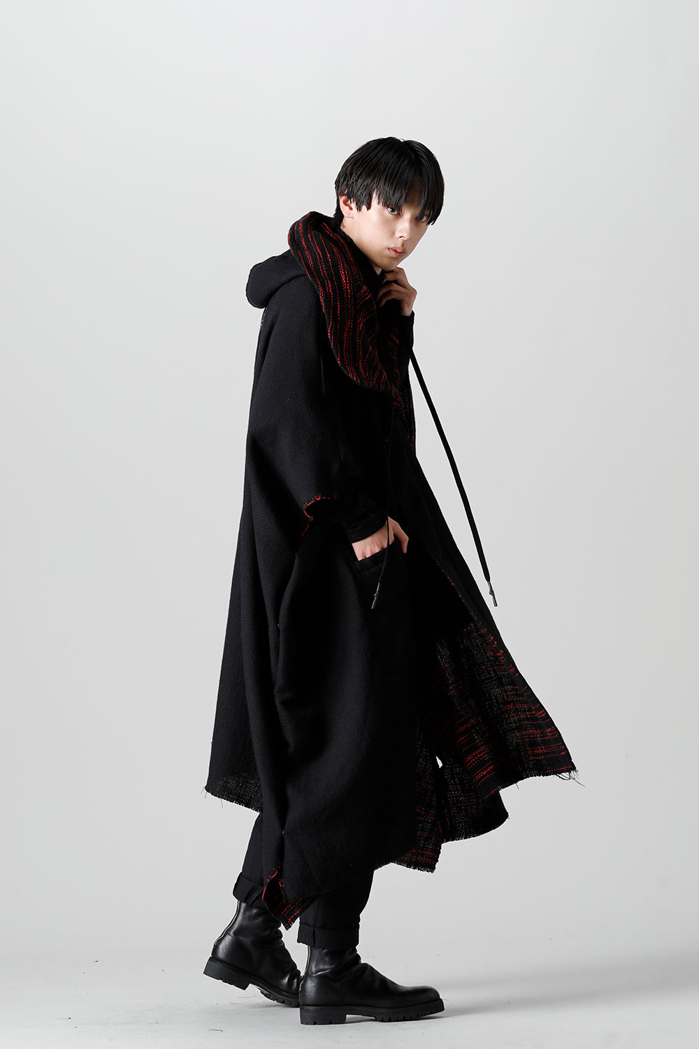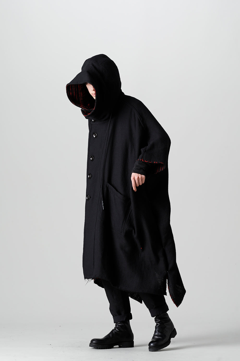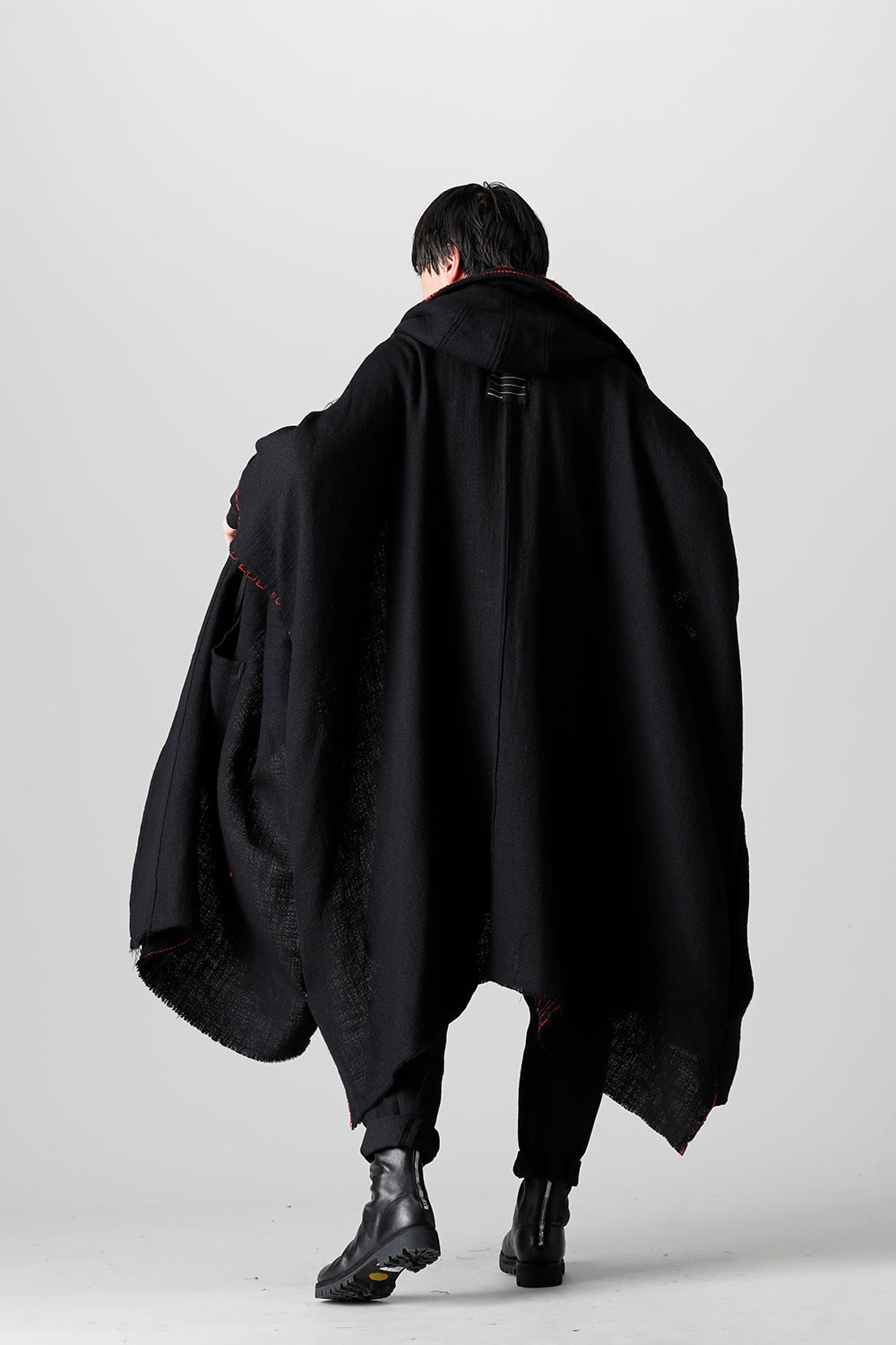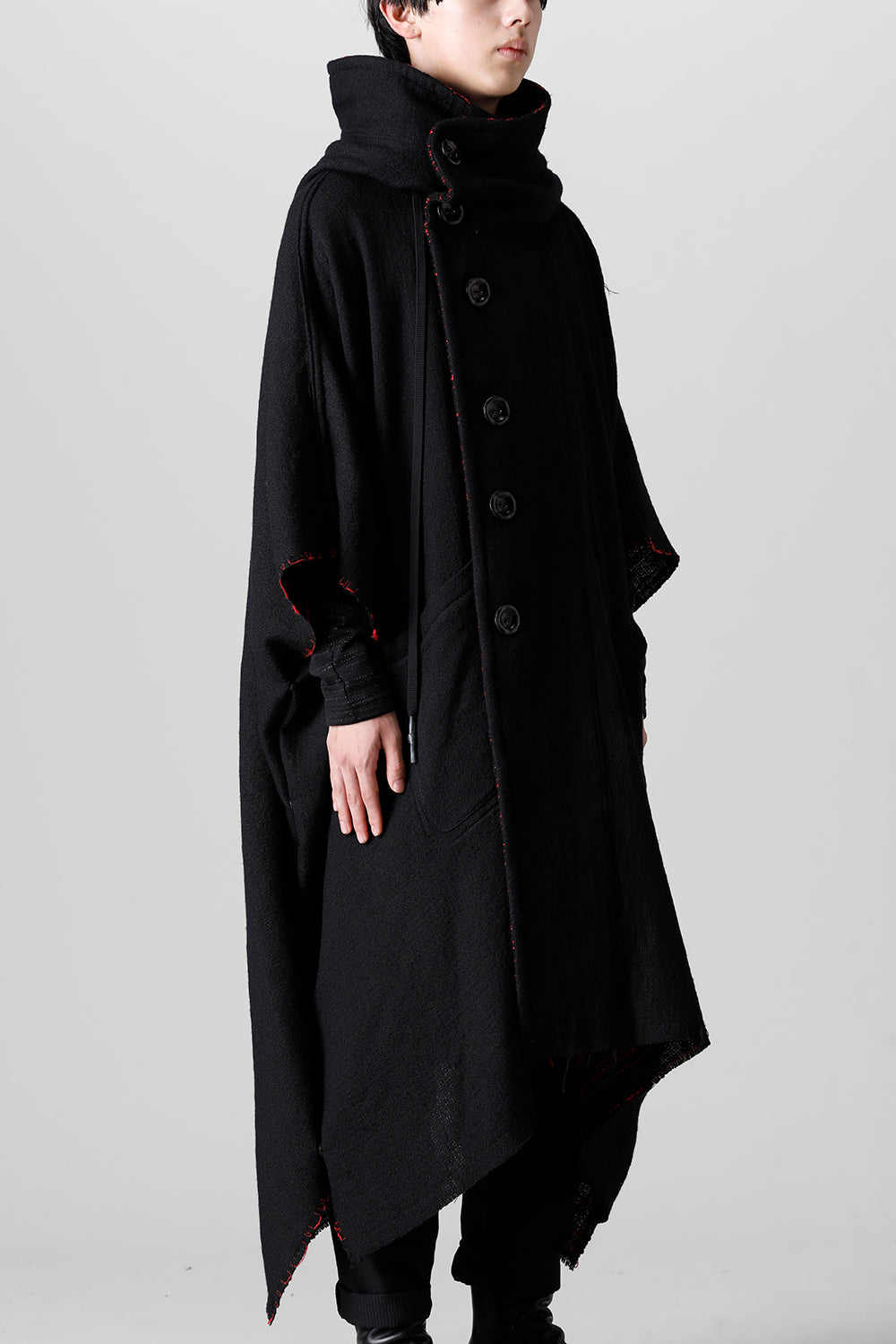 表:コットンスラブ糸 /裏:ウールの二重織スラブツイード素材のリバーシブルポンチョ。