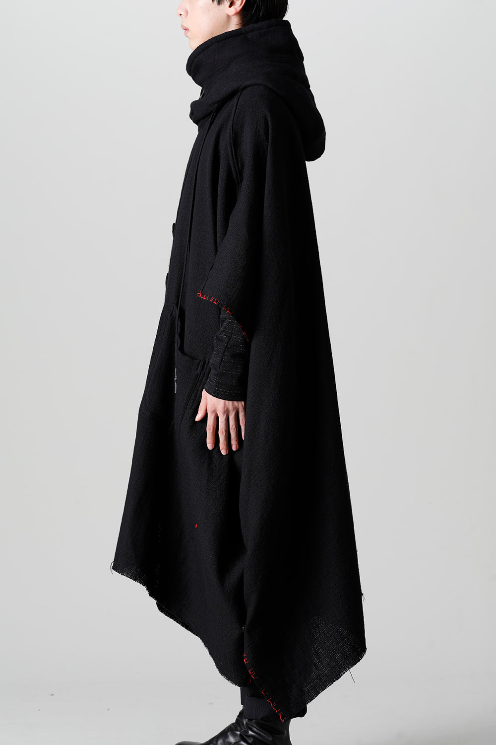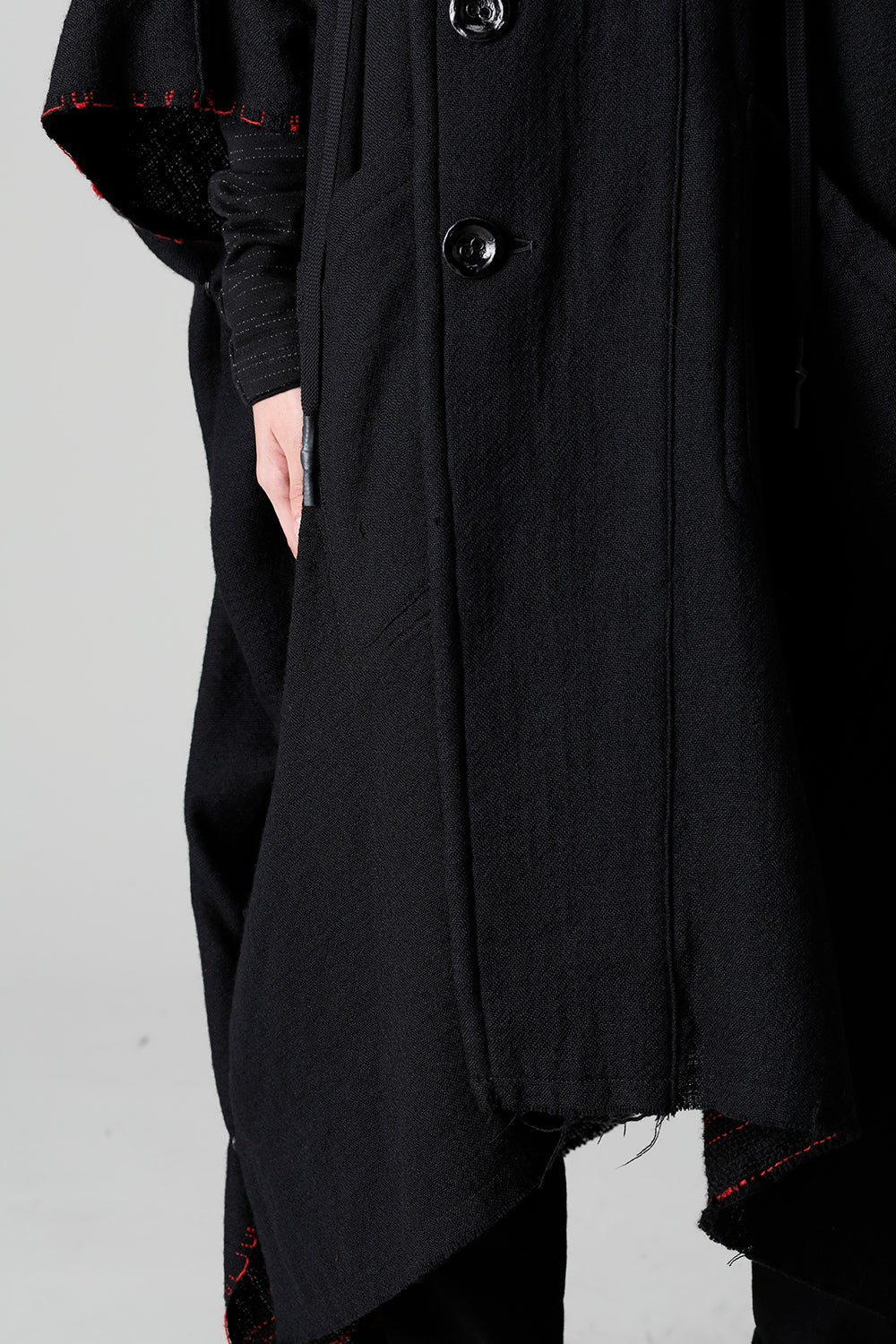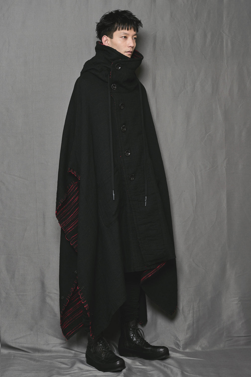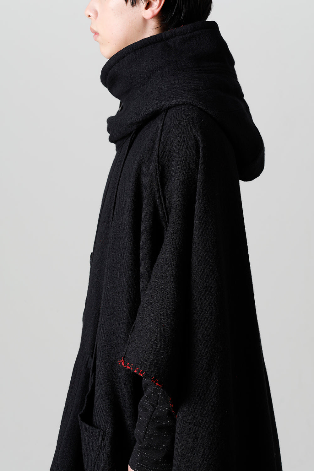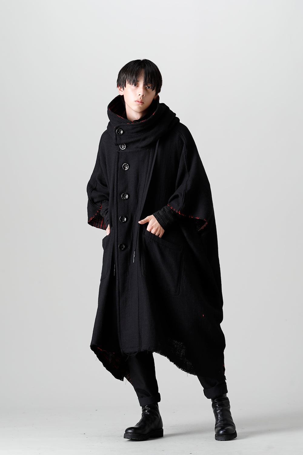 表:コットンスラブ糸 /裏:ウールの二重織スラブツイード素材のリバーシブルポンチョ。