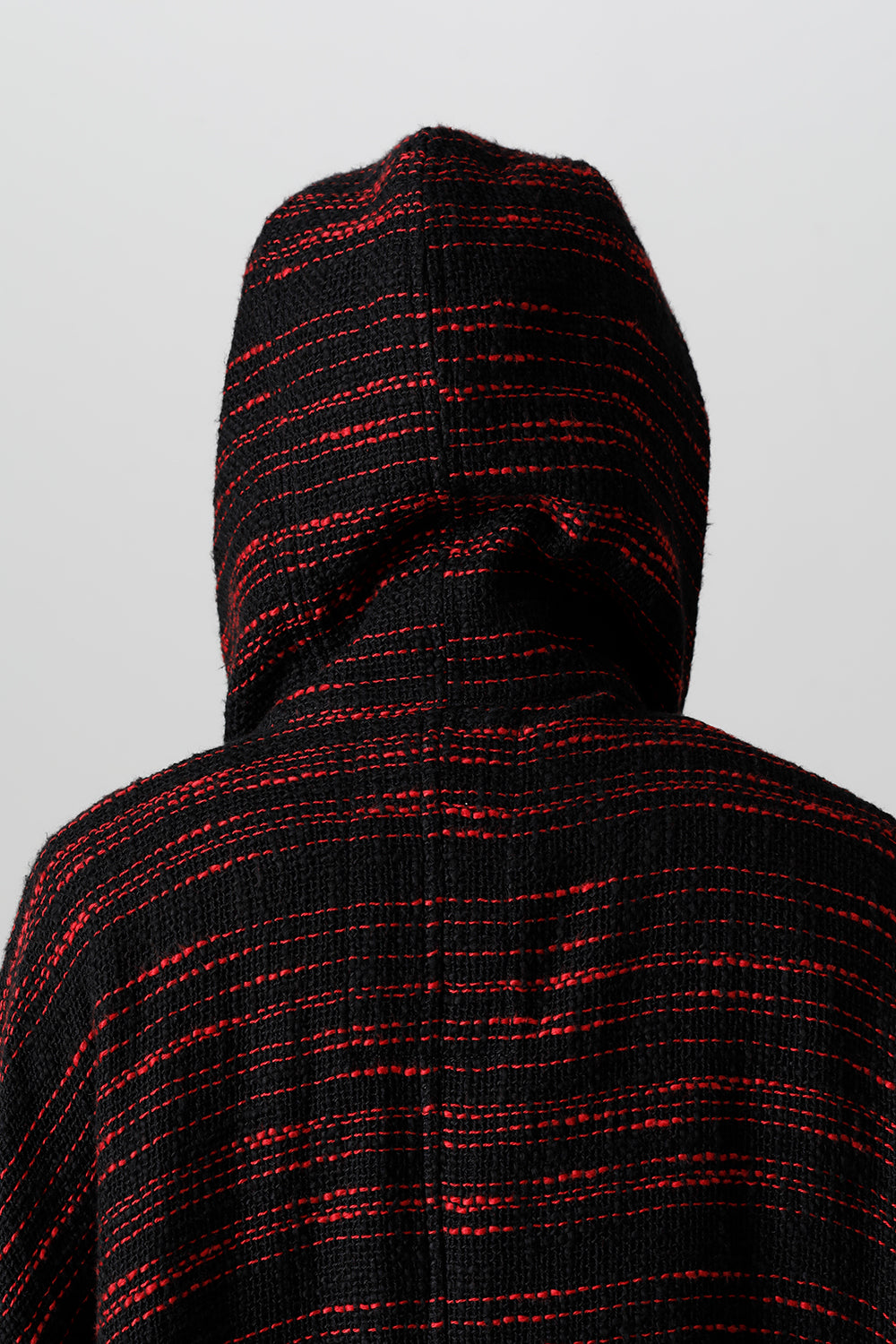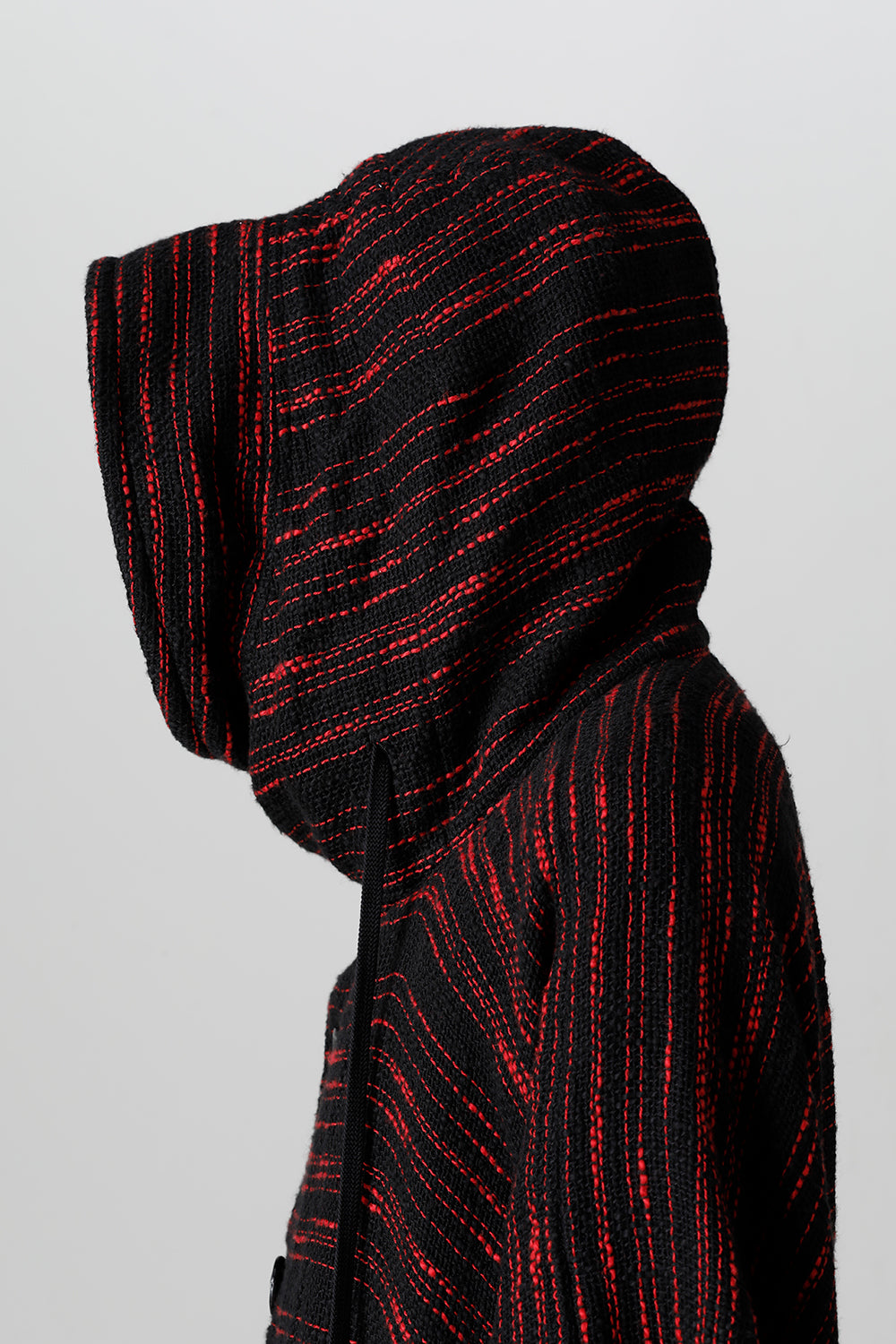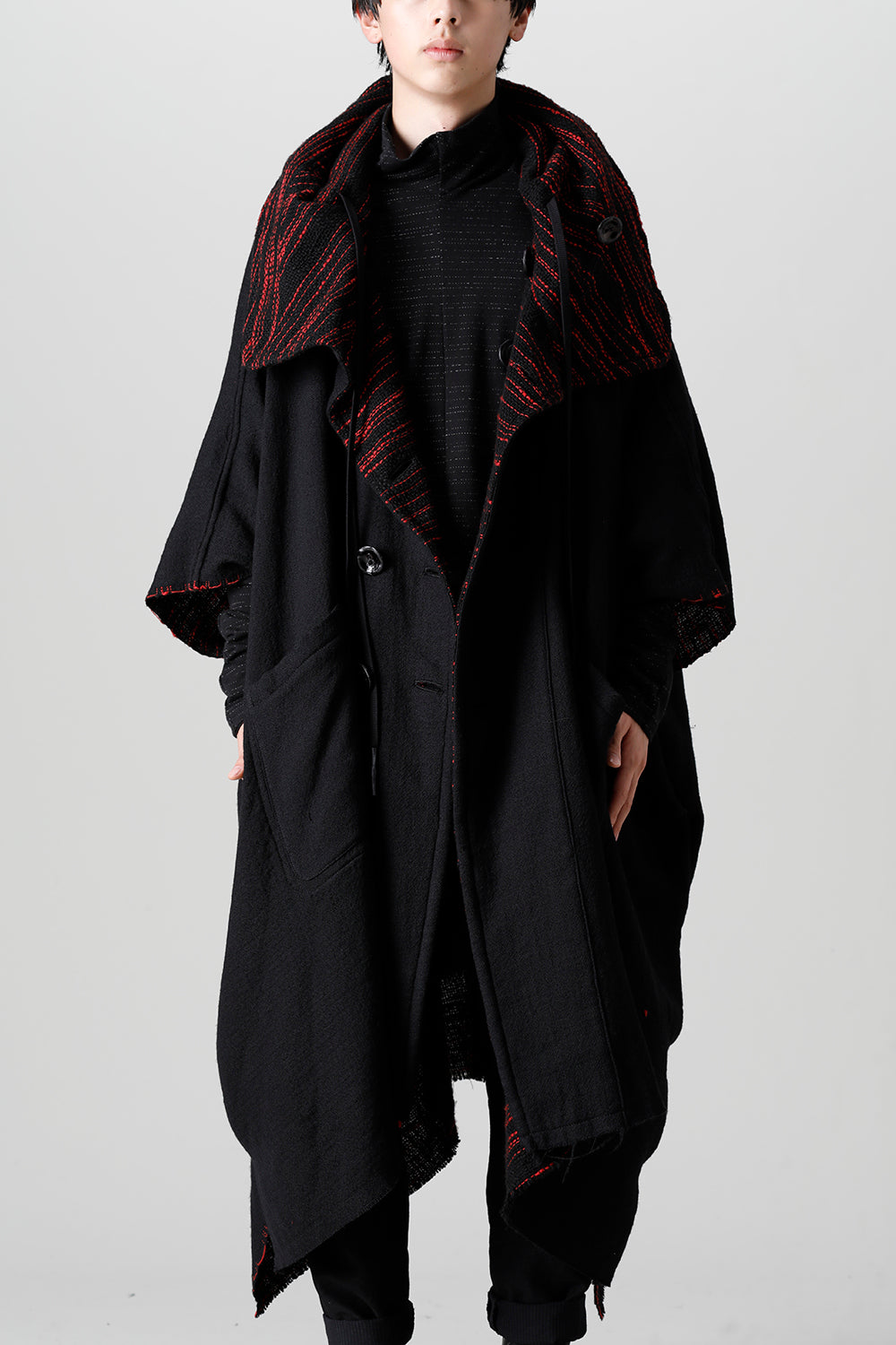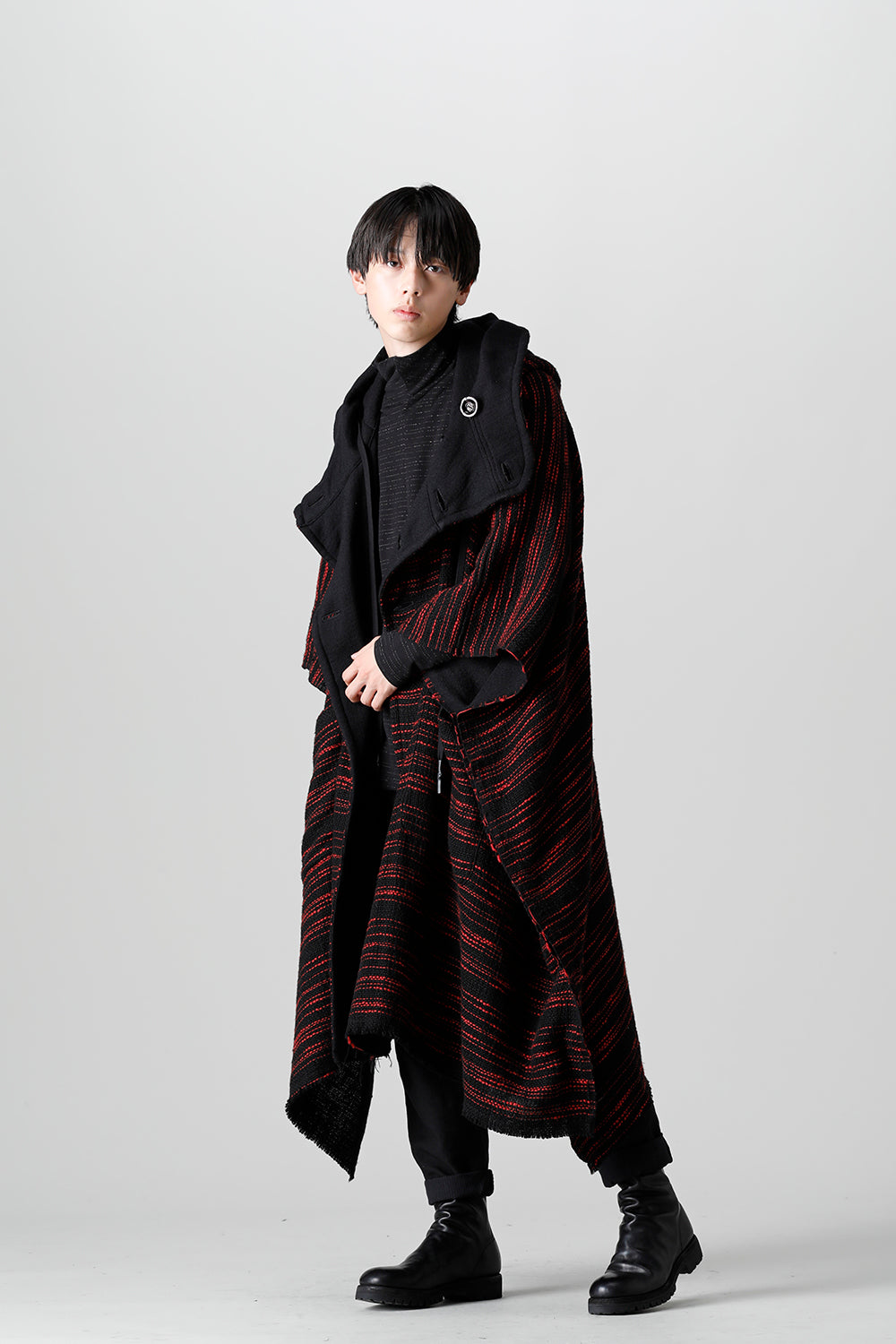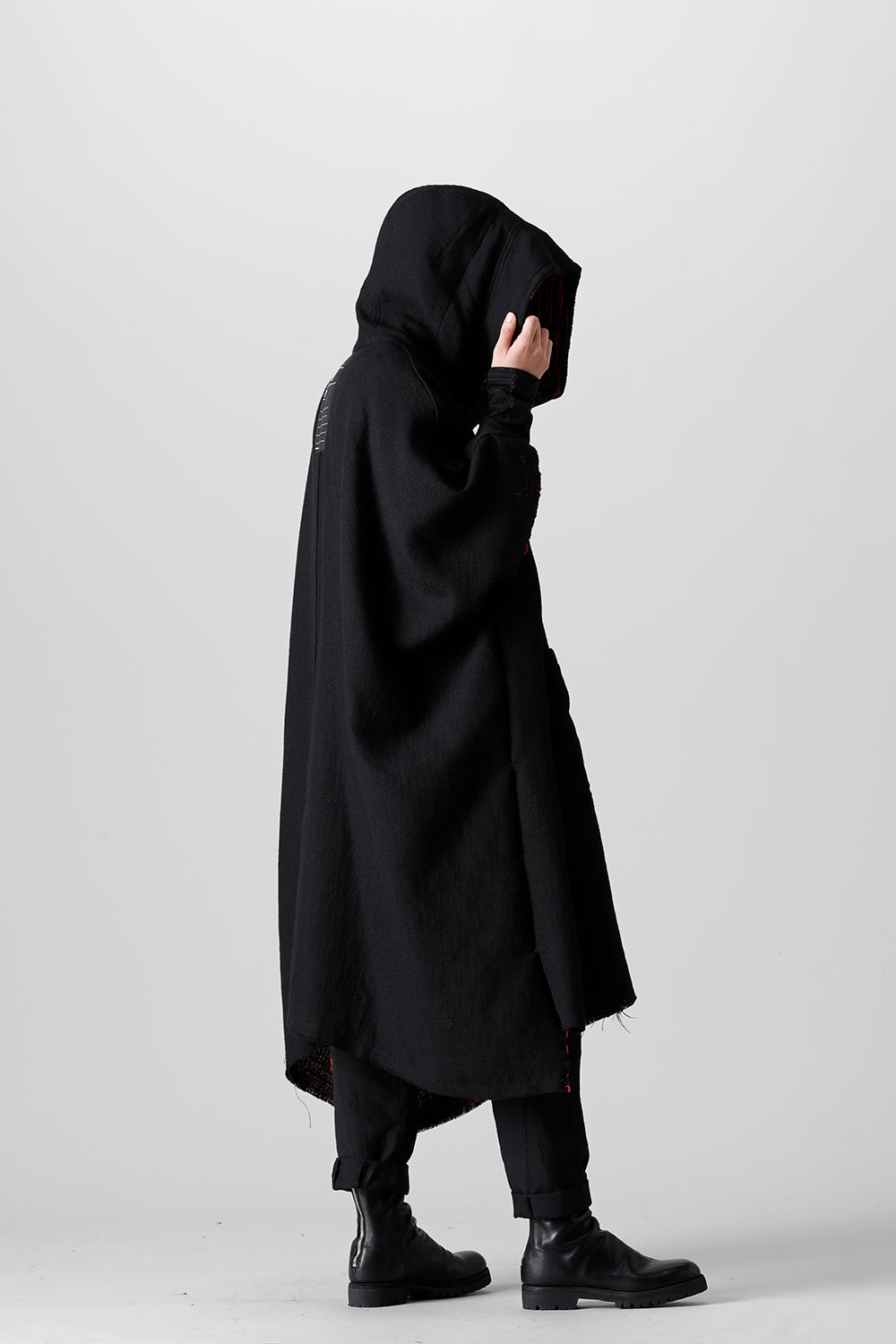 黒/赤のツイード側と裏側の黒側の2WAYでの着用が可能。