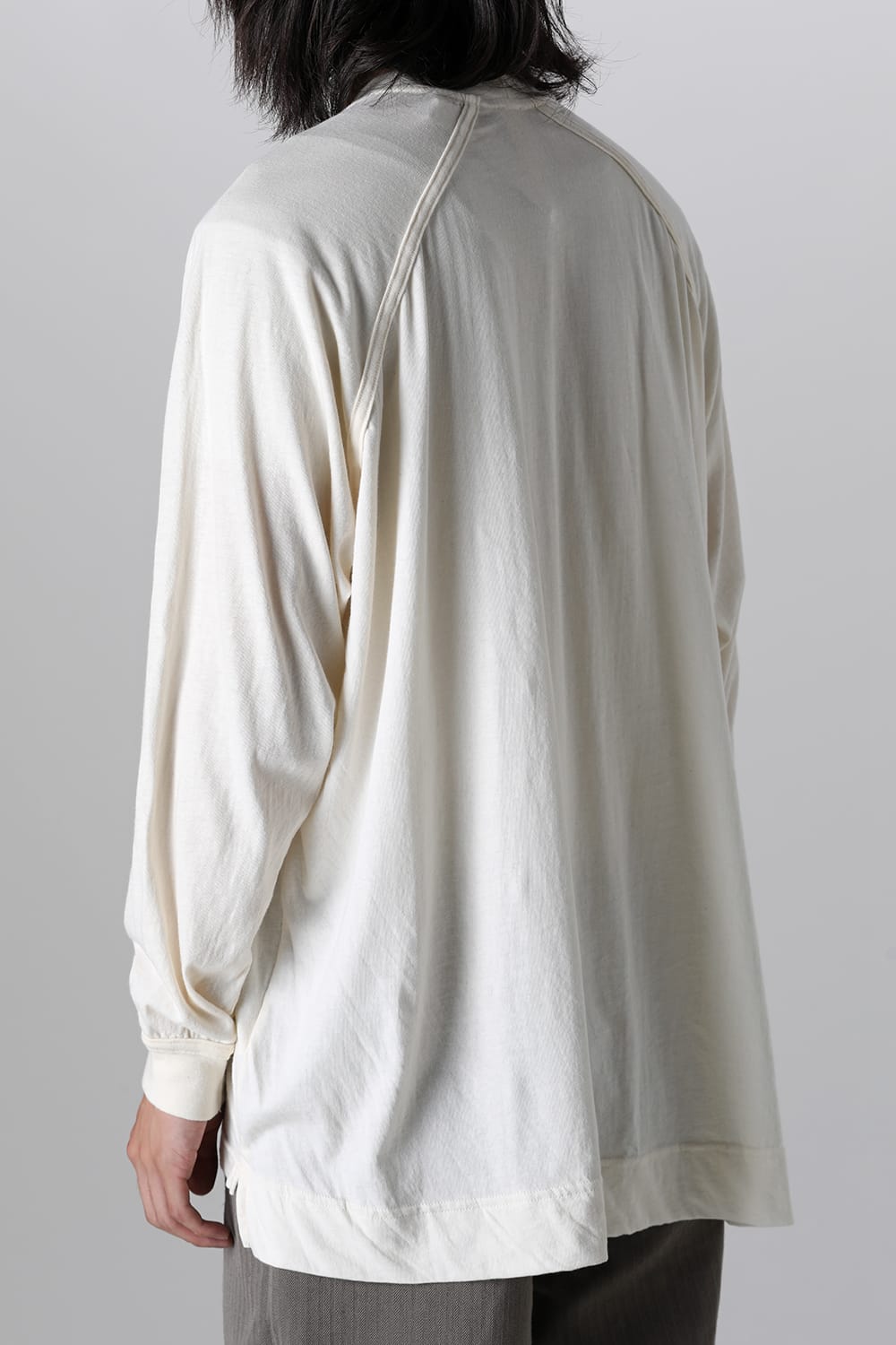 同ブランドでは秋冬シーズンの定番とも言えるコットンの柔らかさとウールの保温性を備えたコットンウールのラグランスリーブTシャツ。