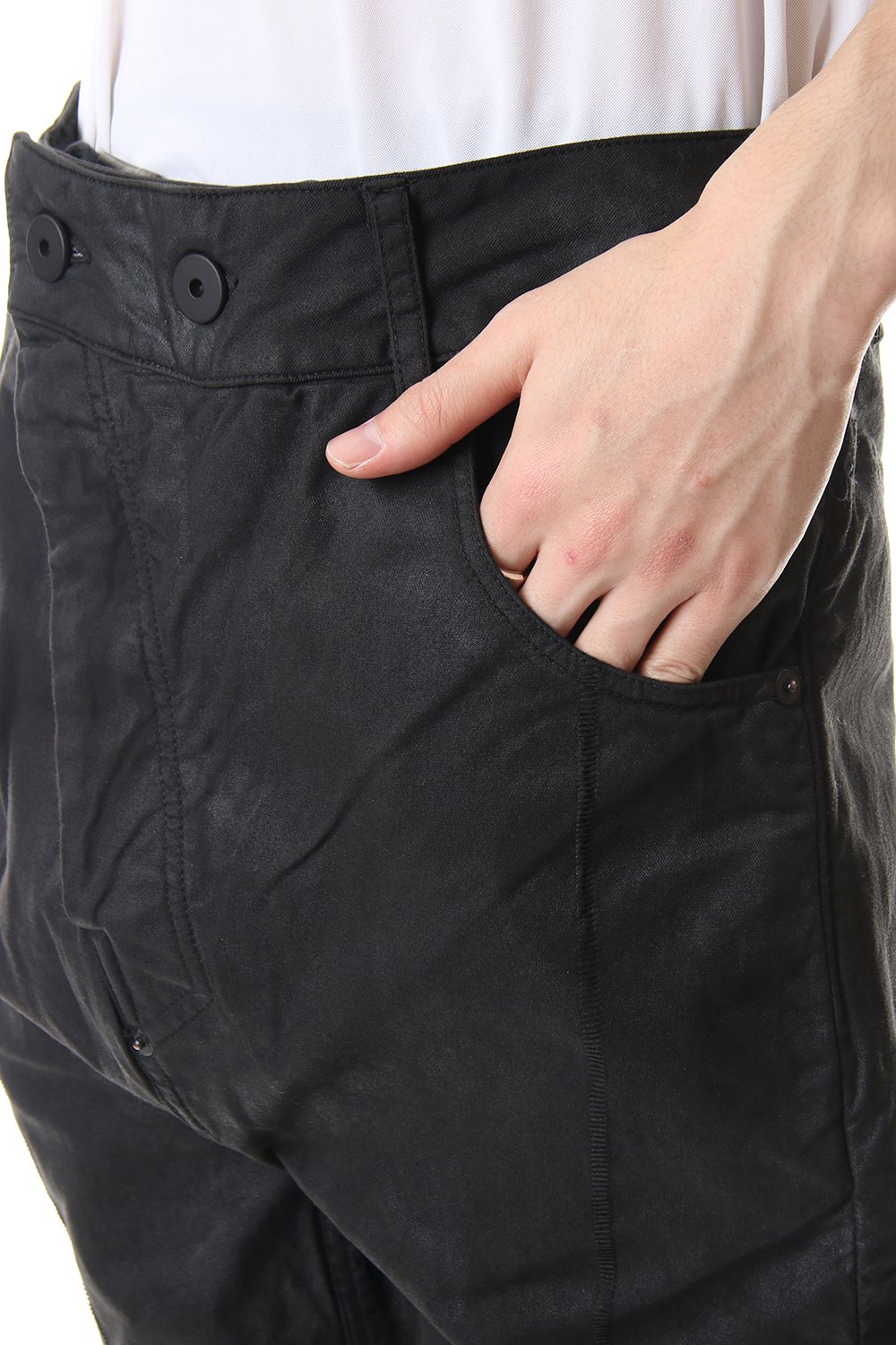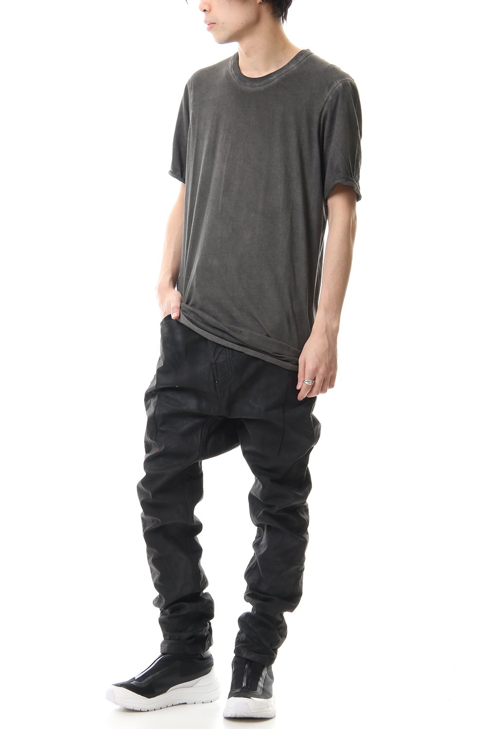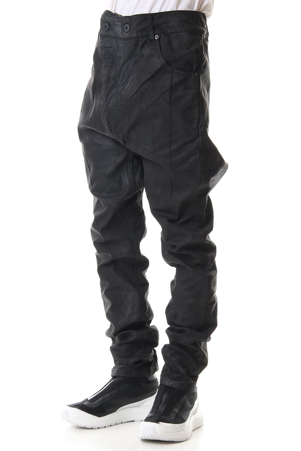 ヒップからももにかけてゆとりを持たせ、裾に向かってテーパードを効かせたドロップクロッチのパンツです。生地は年間を通して着用できる適度な厚みでストレッチ性があり、少しゆとりのあるシルエットと相まって快適にお召しいただけます。