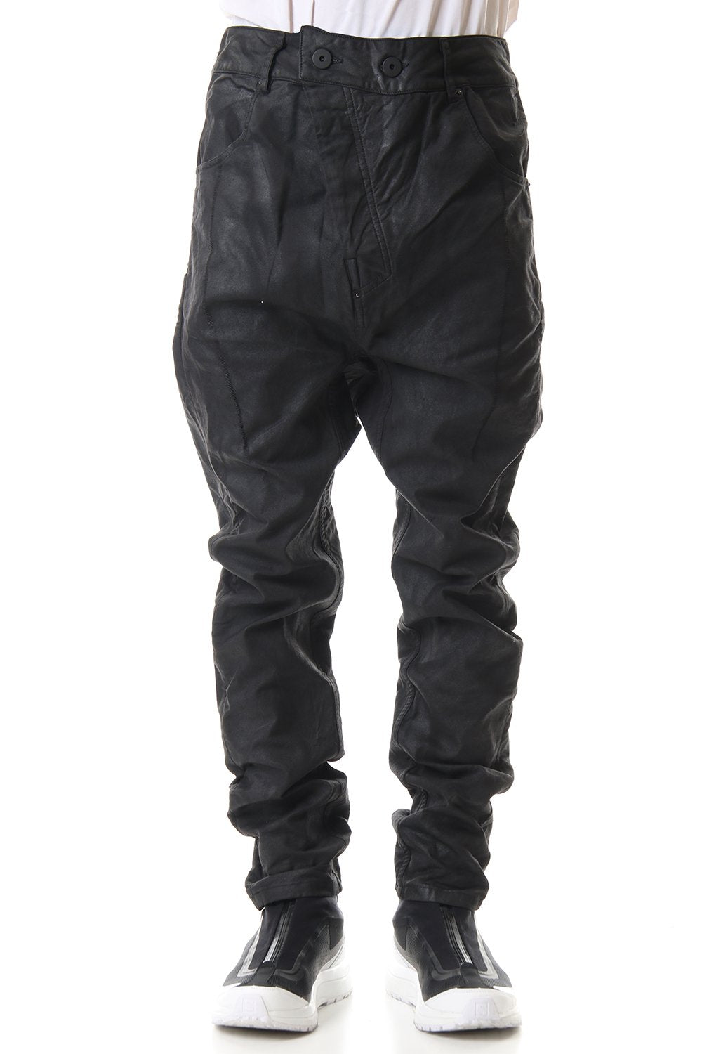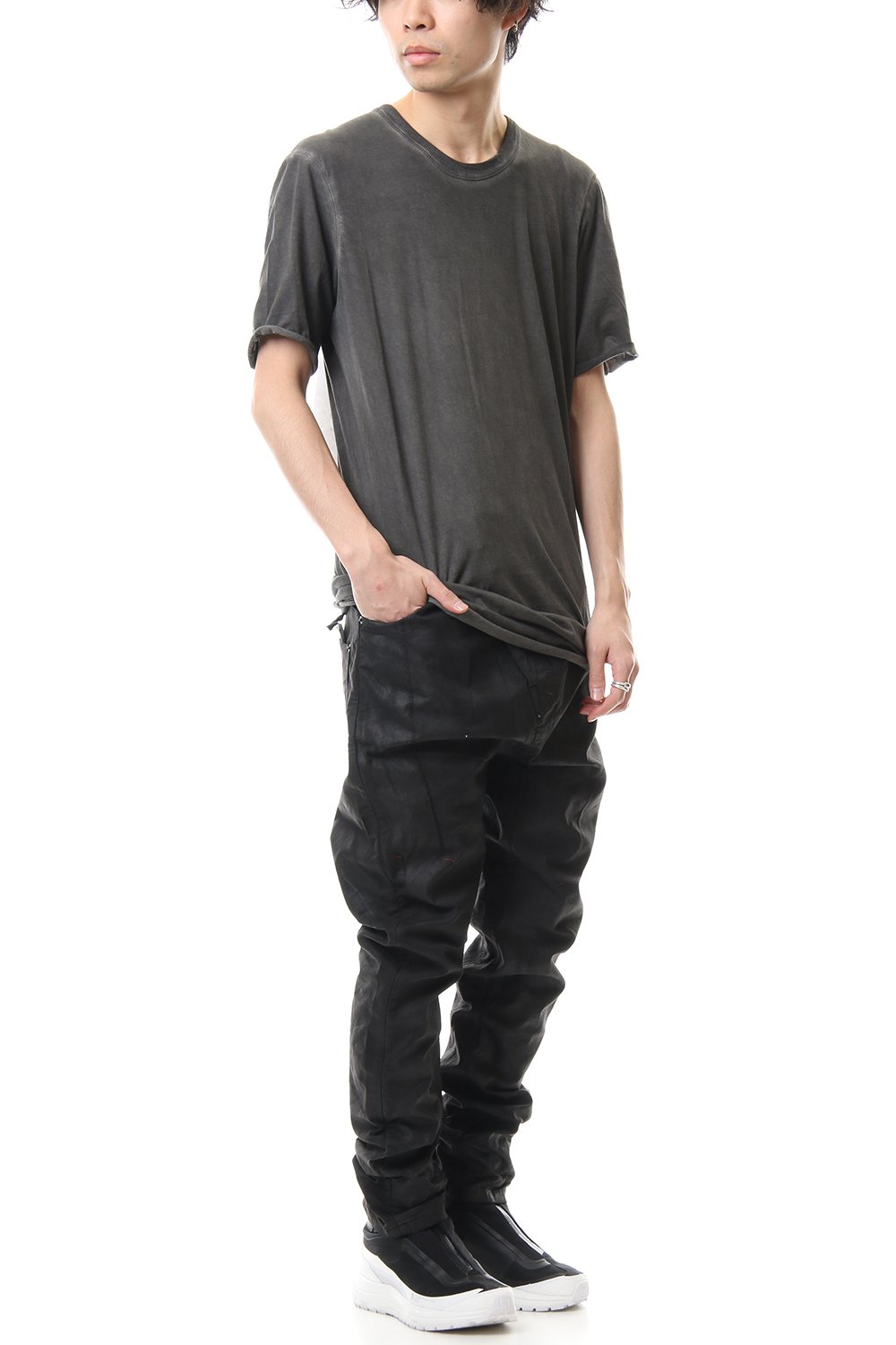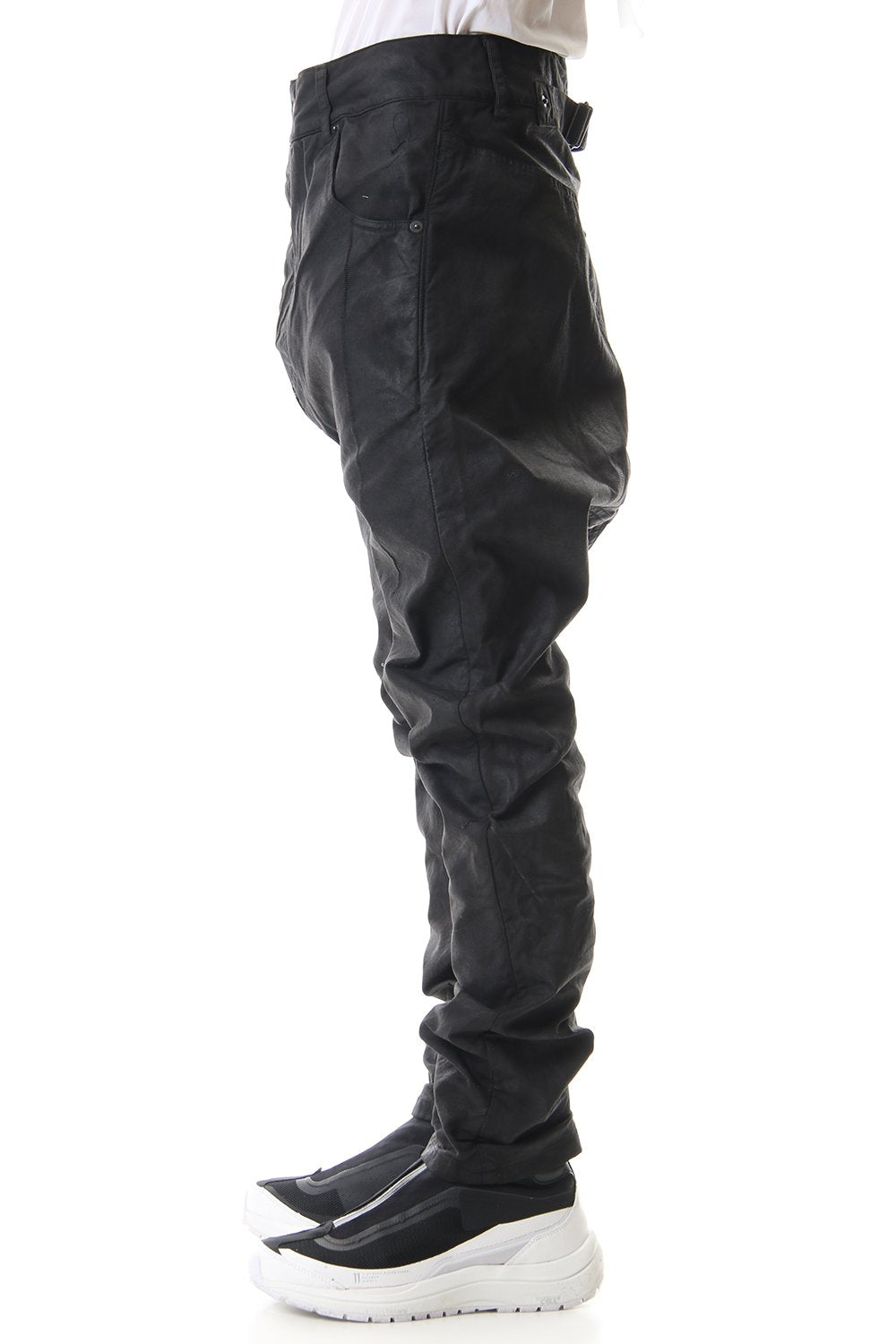ヒップからももにかけてゆとりを持たせ、裾に向かってテーパードを効かせたドロップクロッチのパンツです。生地は年間を通して着用できる適度な厚みでストレッチ性があり、少しゆとりのあるシルエットと相まって快適にお召しいただけます。