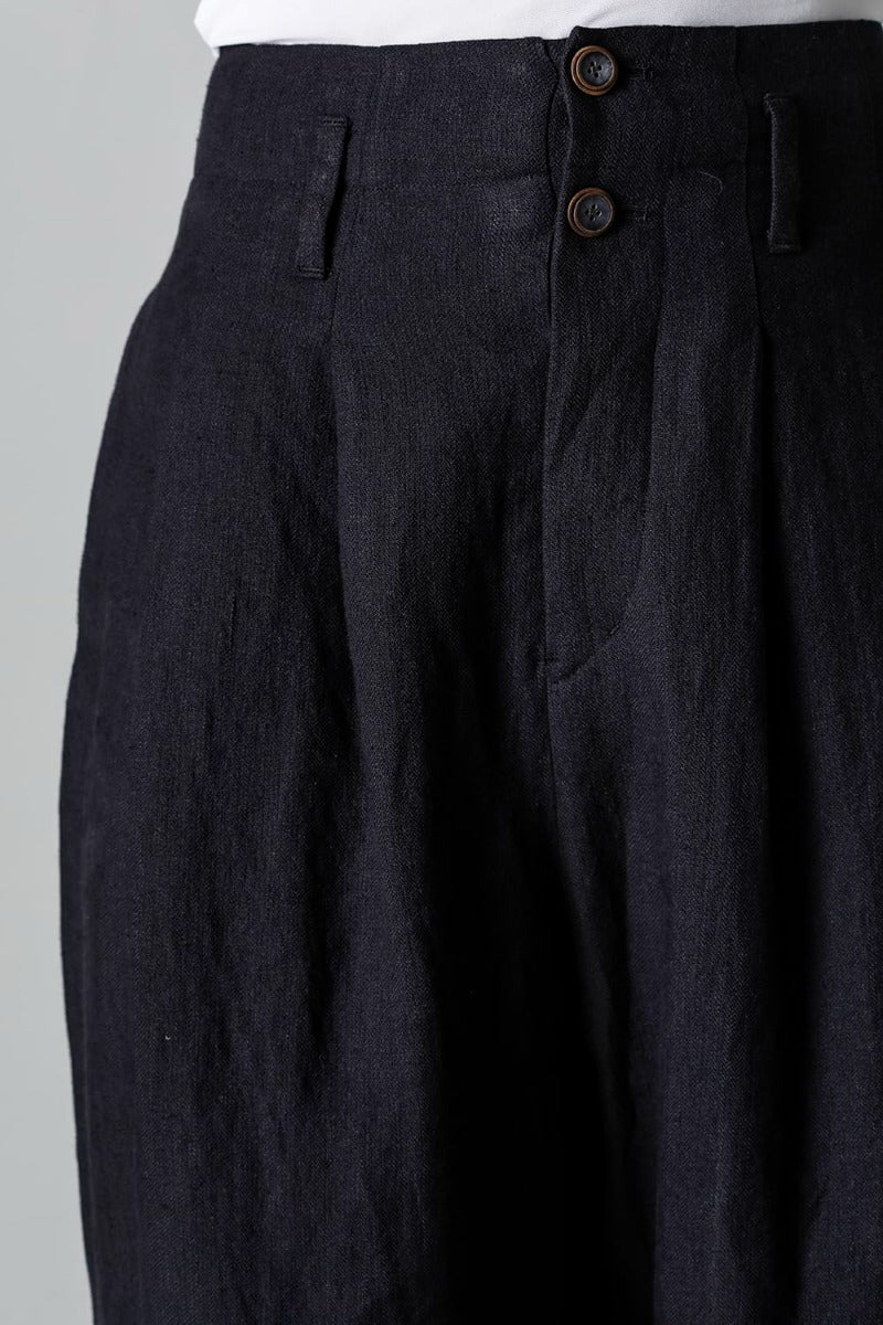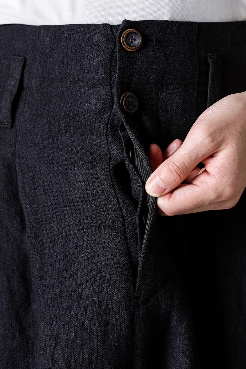 リネンヘリンボーンハイウエストワイドパンツ ブラック