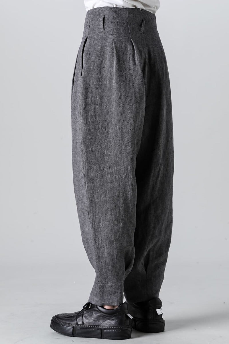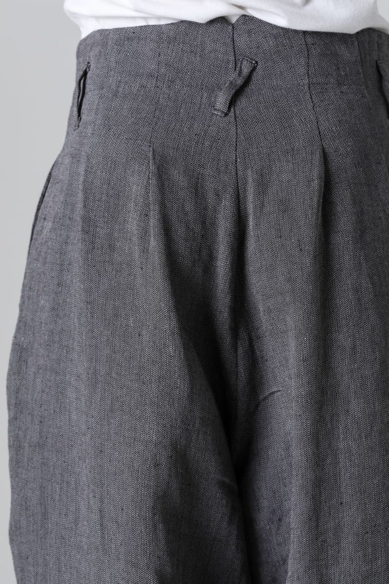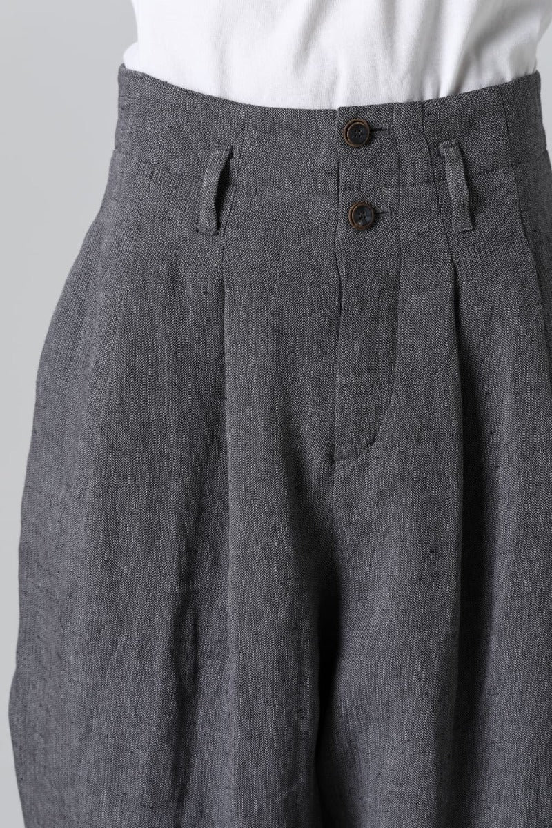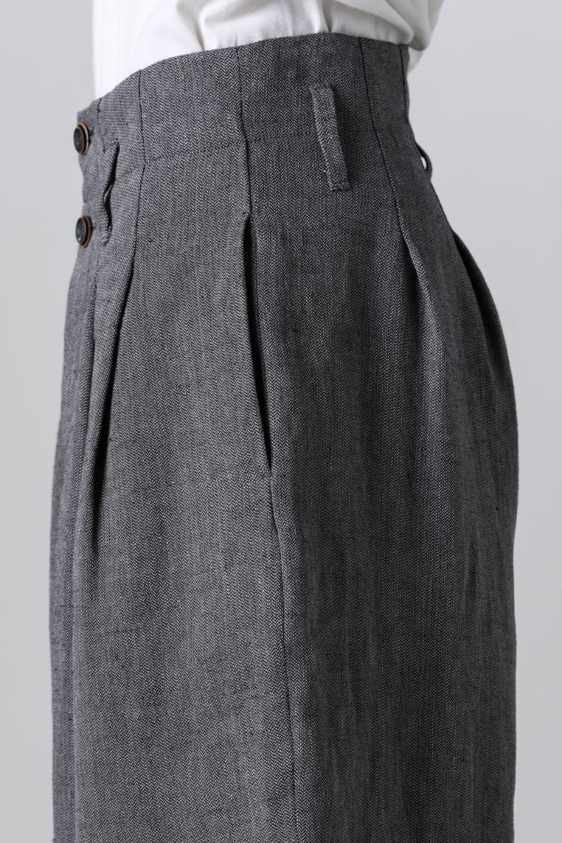 リネンヘリンボーンハイウエストワイドパンツ グレーブラック