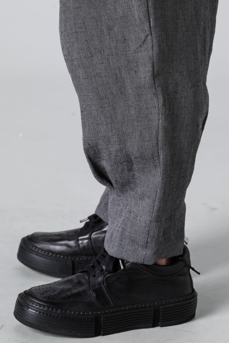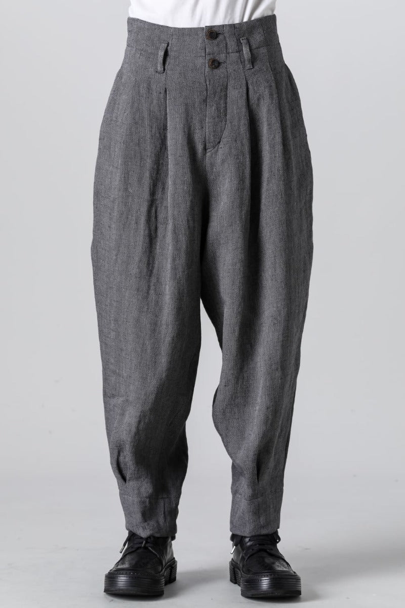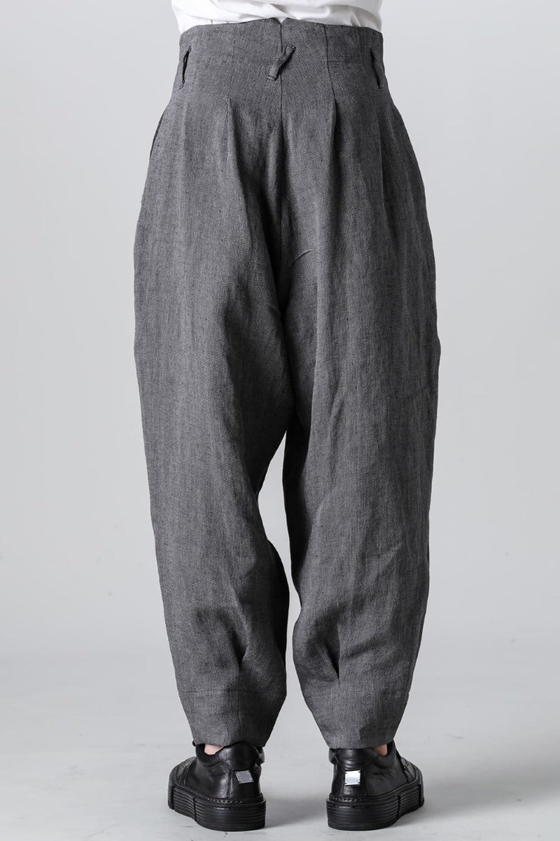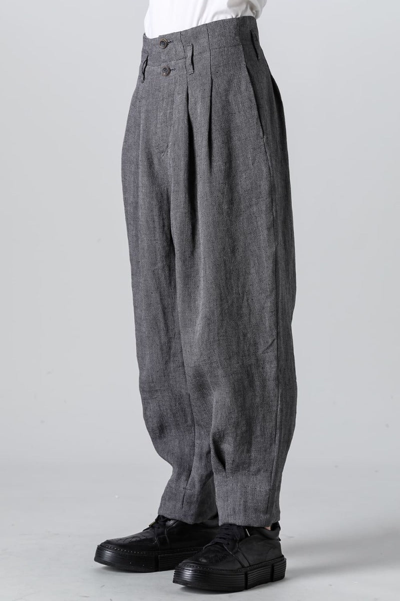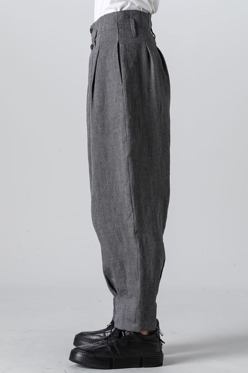 リネンヘリンボーンハイウエストワイドパンツ グレーブラック