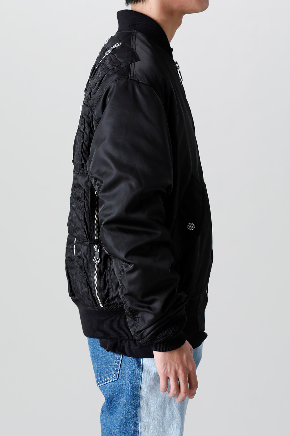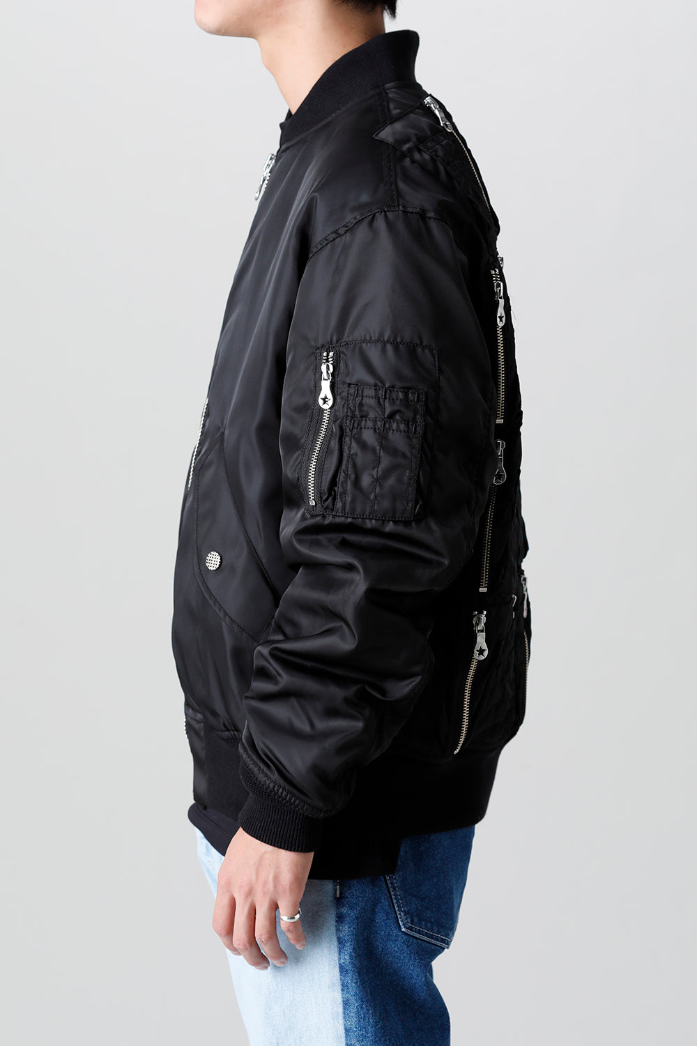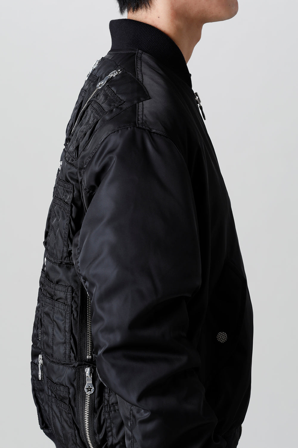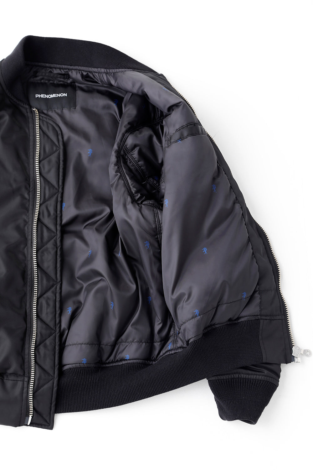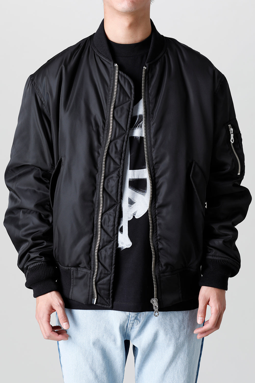 素材に光沢感豊かなナイロンツイルを使用したボンバージャケット。