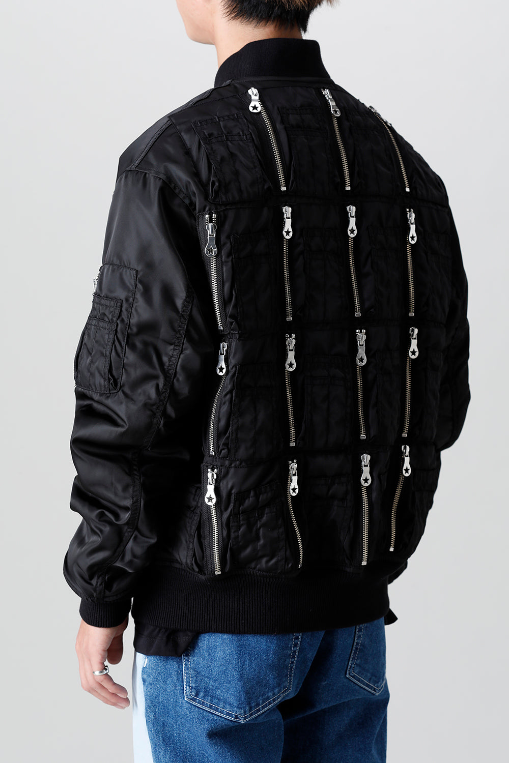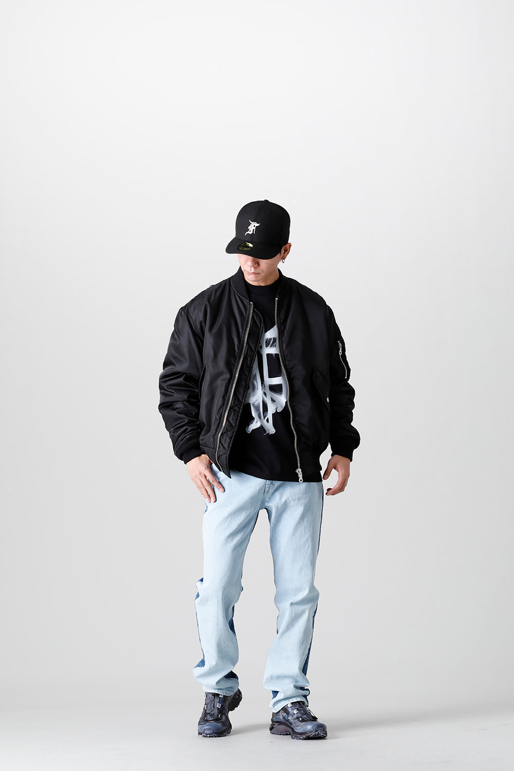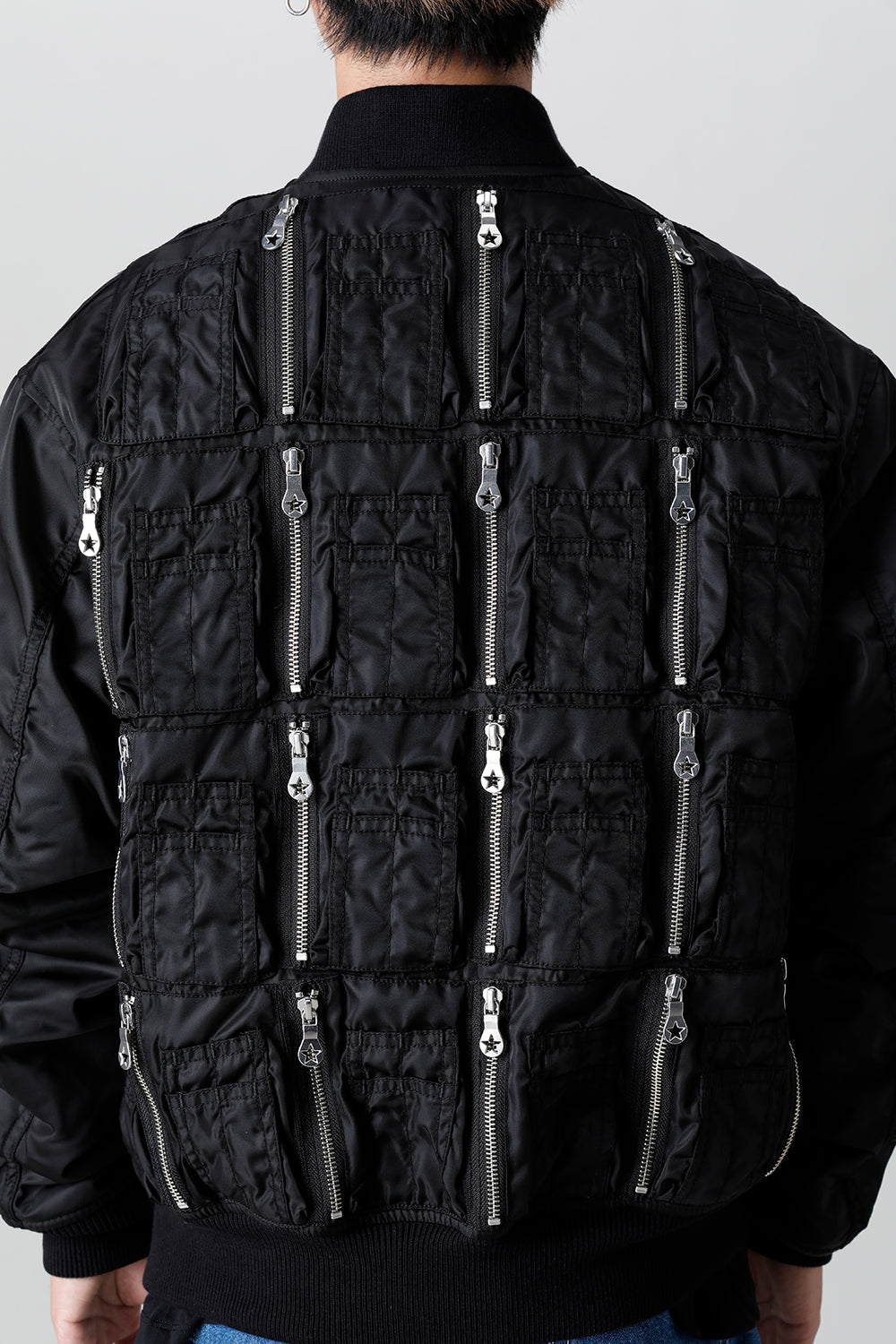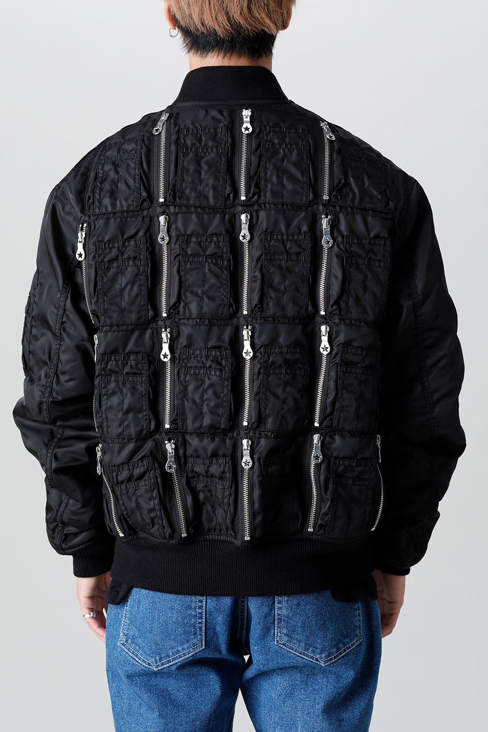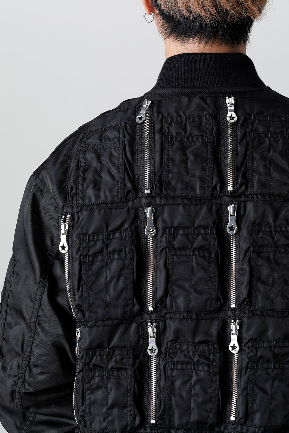 素材に光沢感豊かなナイロンツイルを使用したボンバージャケット。