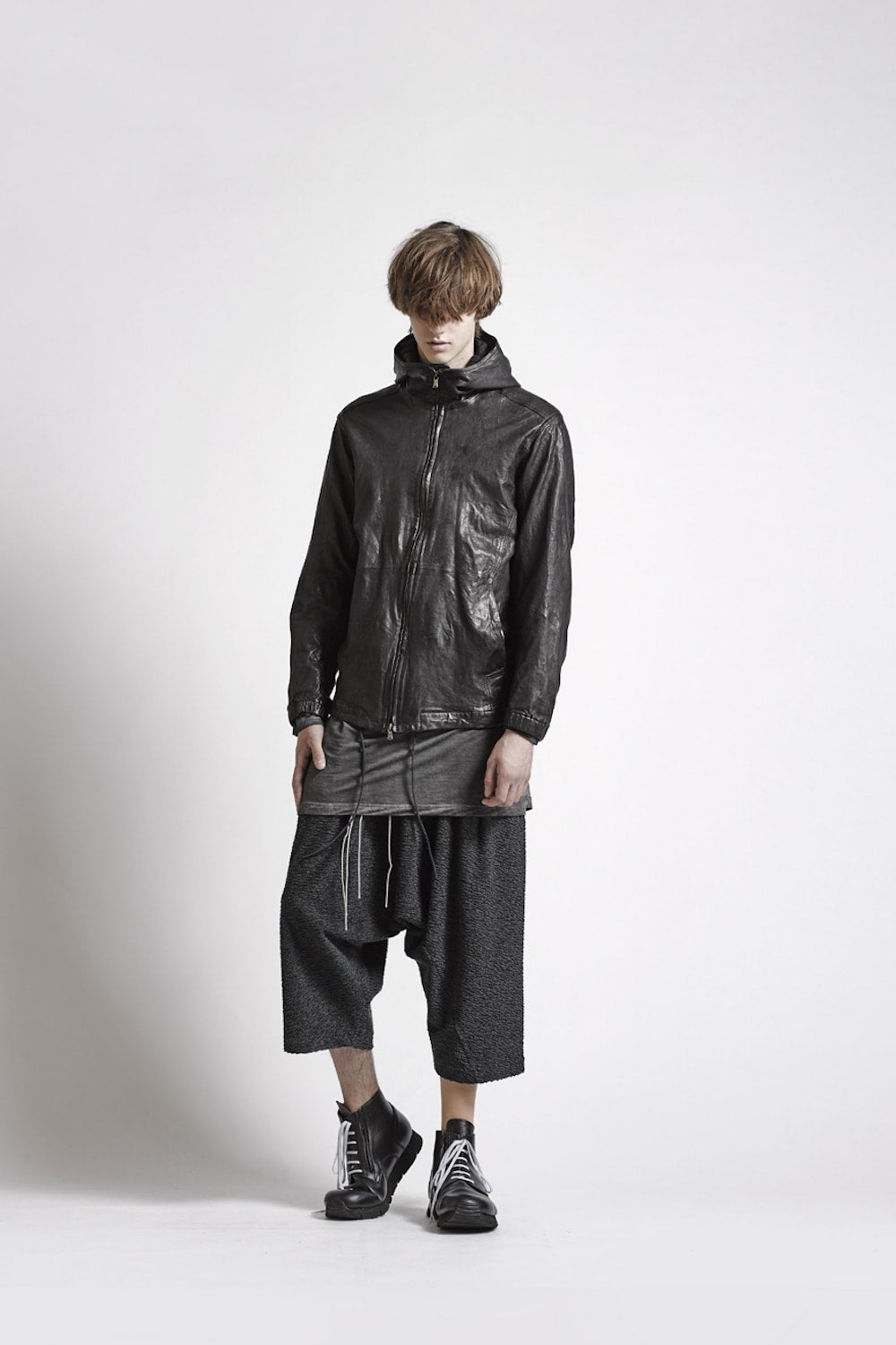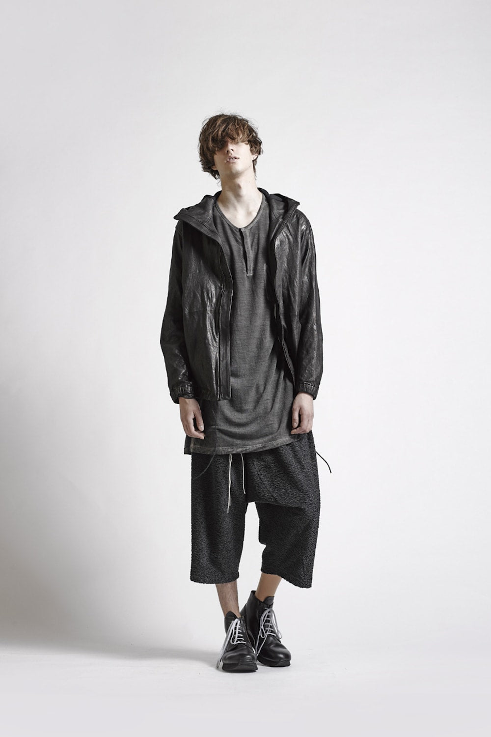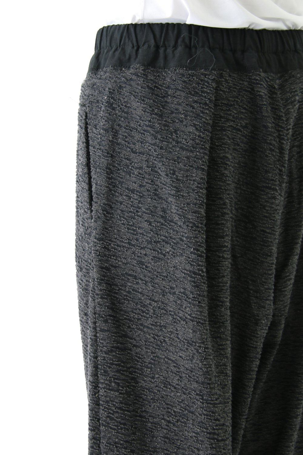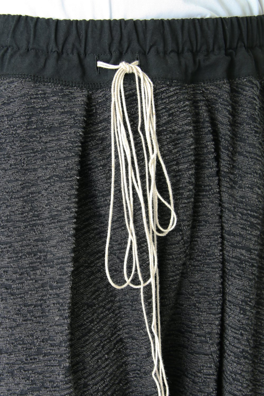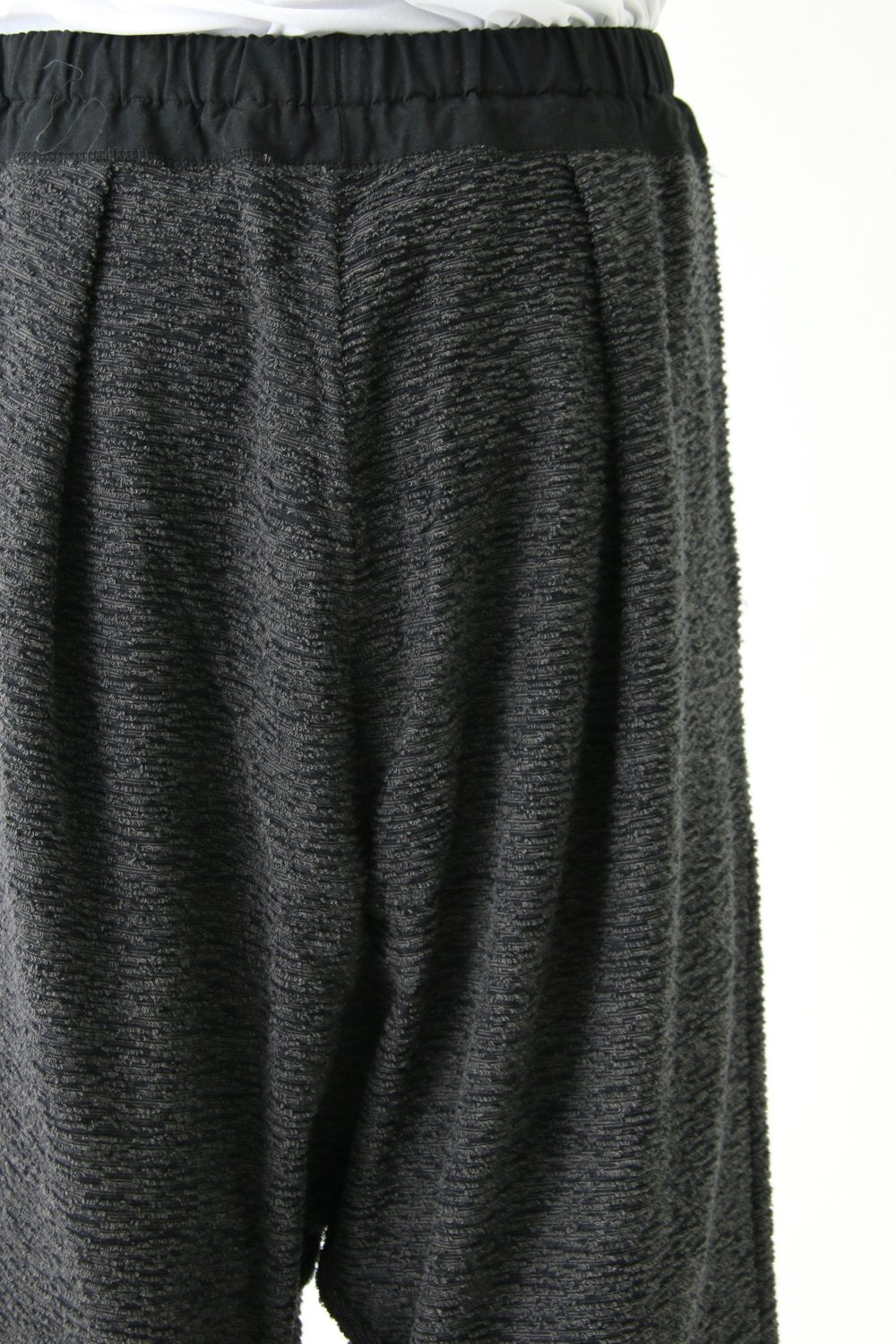 旧式の編み機で低速に編み、ランダムに 凹凸を出したパイルを使用した、サルエルシルエットの八分丈クロップドパンツです。 ウエストベルトには別布を、ドローコードは細いコードを2本使いでアクセントに。着用感、雰囲気ともに春夏らしいリラックスしたアイテムです。同素材のVI-2876-01のビッグフーディとセットアップでも着用していただけます。