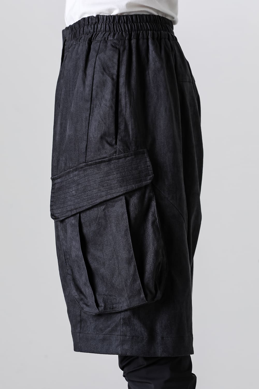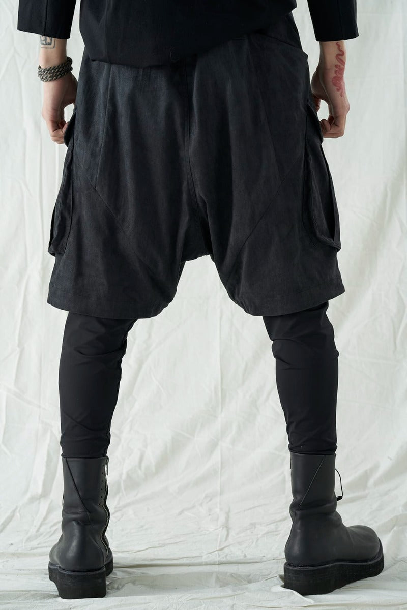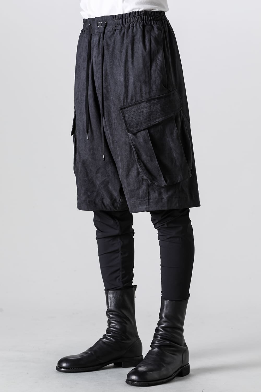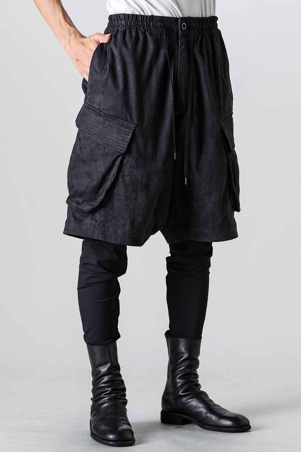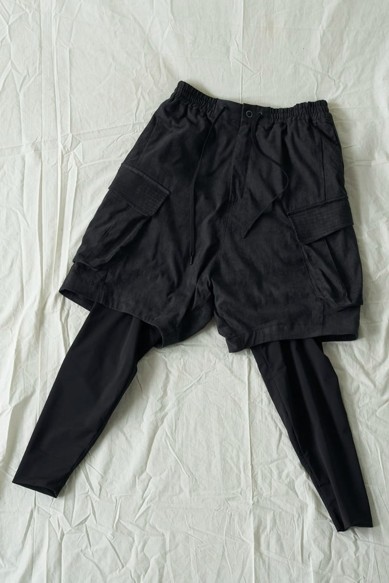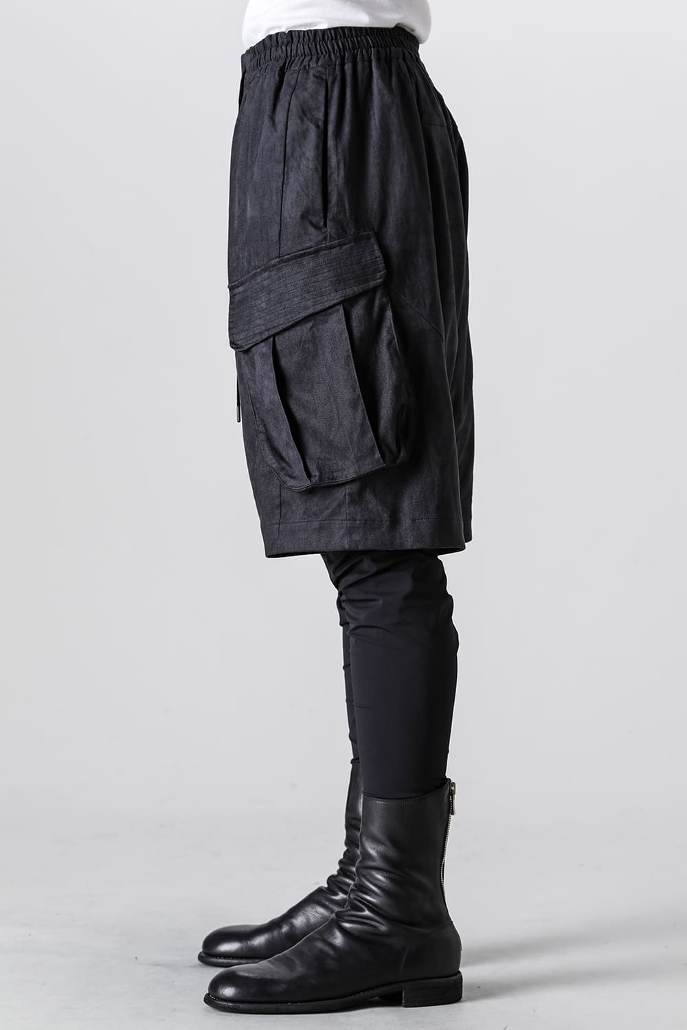 立体的なカーゴポケットがついたショートパンツと、1867年創業のスイスの生地メーカー、Schoeller(シェラー)のキックバックが強いストレッチパーツをレイヤードしたデザイン。