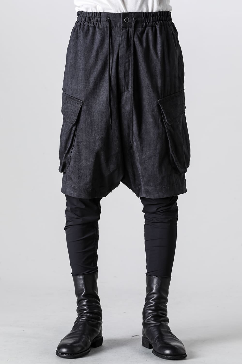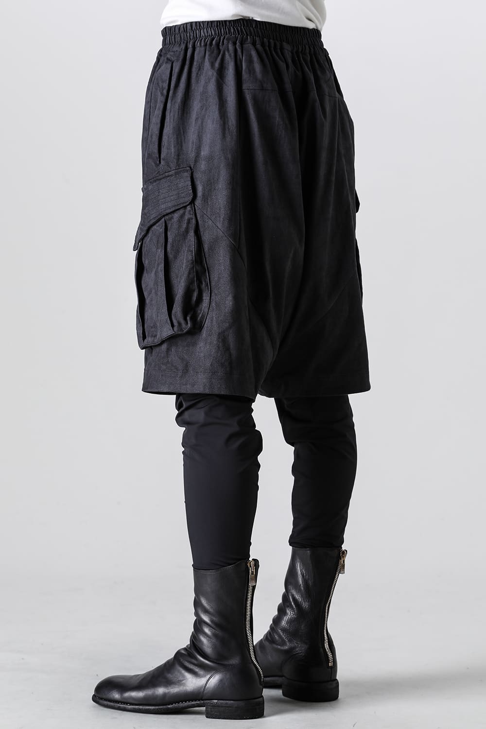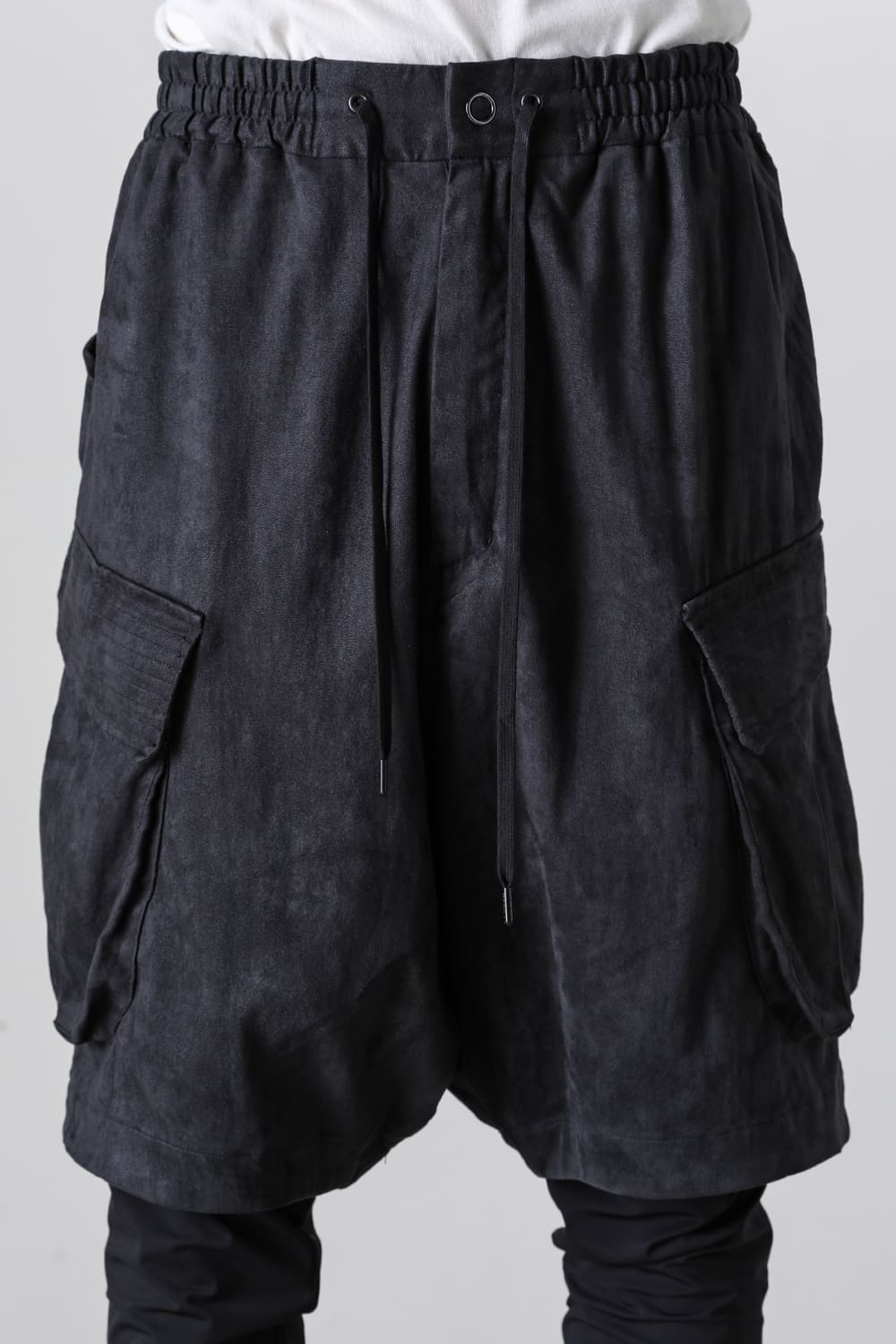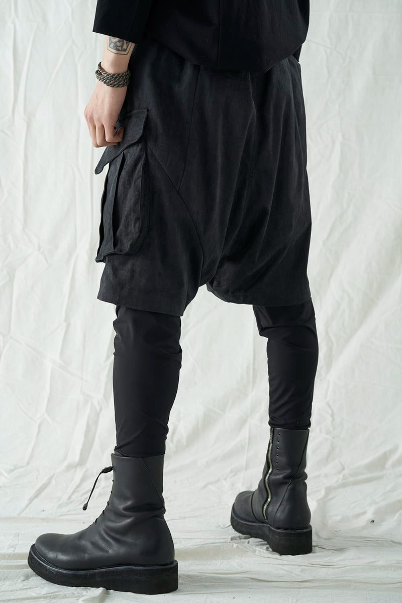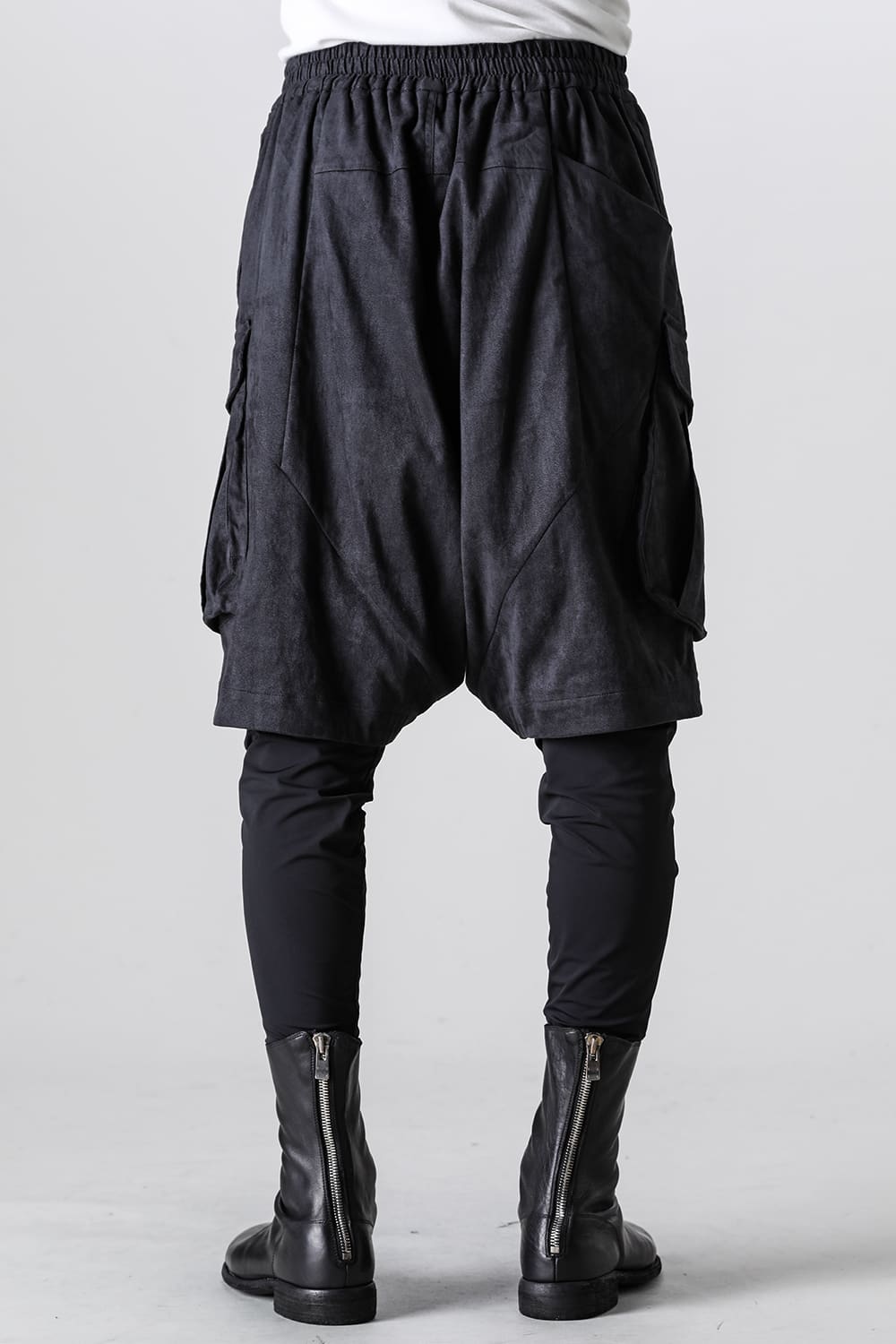 立体的なカーゴポケットがついたショートパンツと、1867年創業のスイスの生地メーカー、Schoeller(シェラー)のキックバックが強いストレッチパーツをレイヤードしたデザイン。