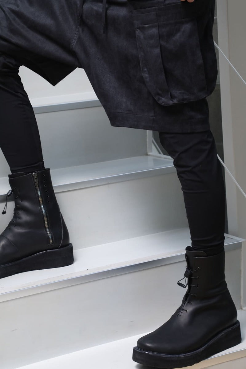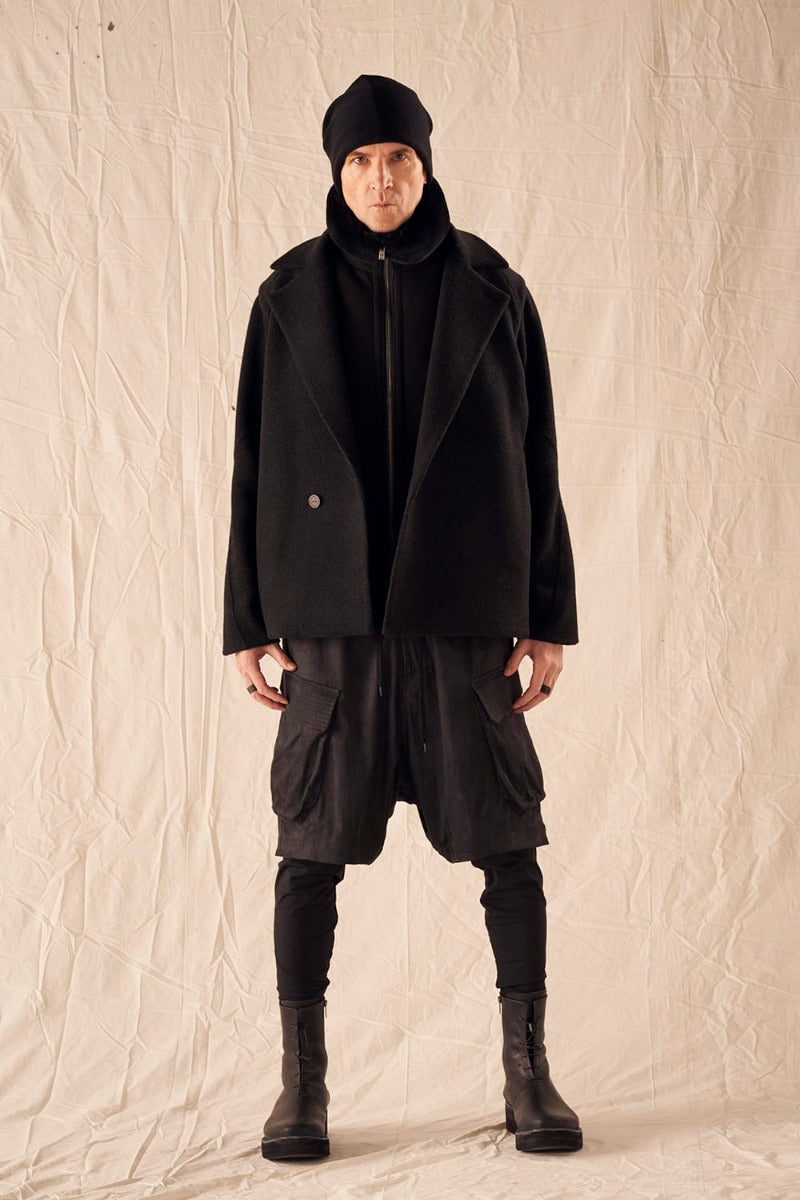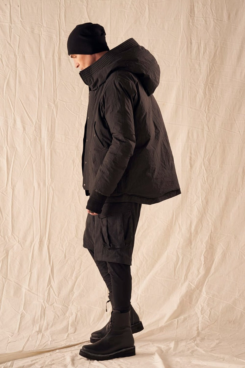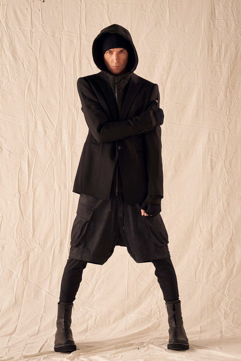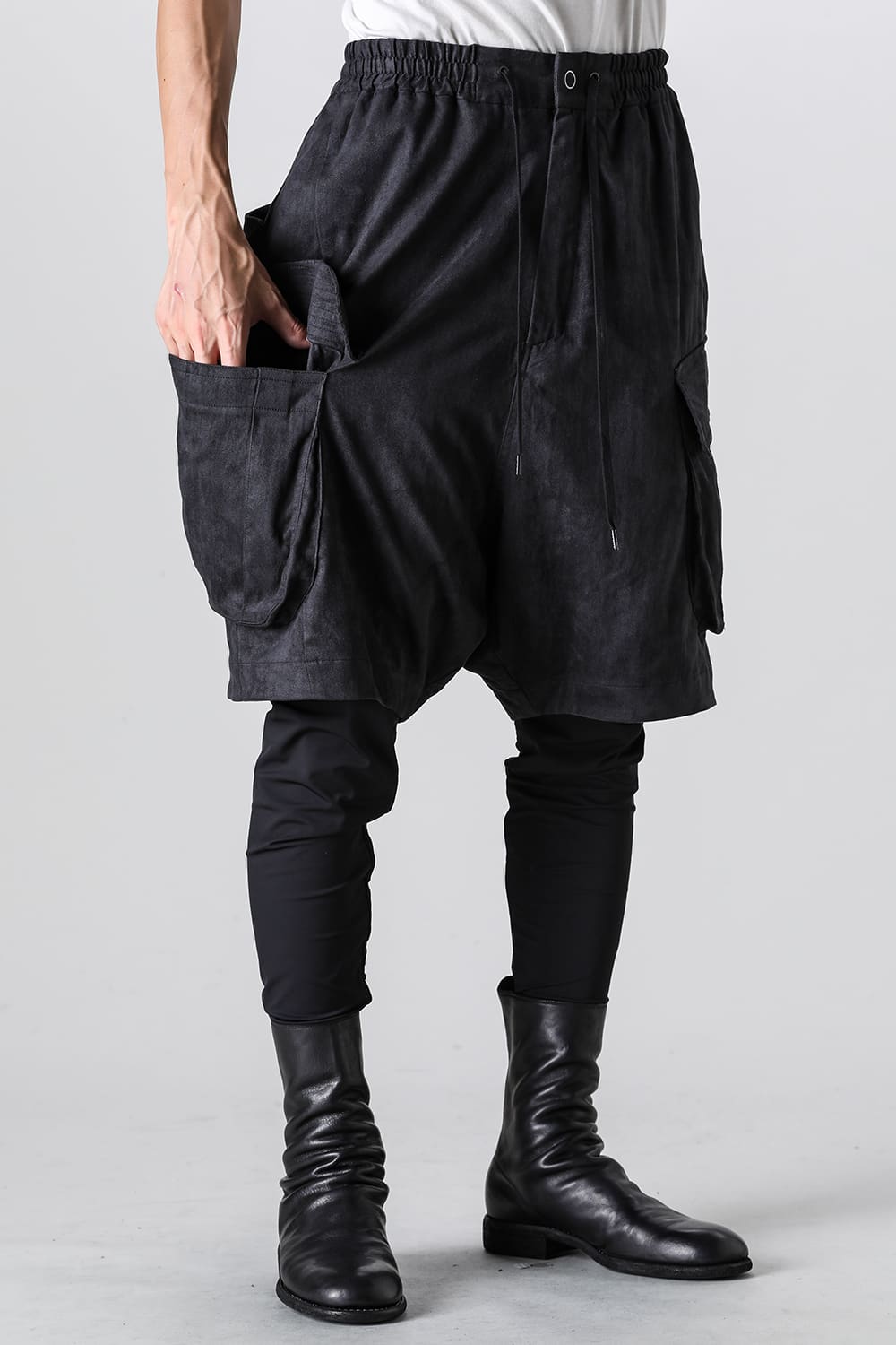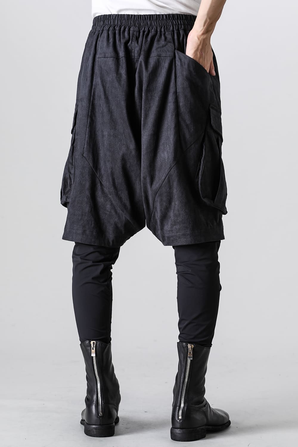 立体的なカーゴポケットがついたショートパンツと、1867年創業のスイスの生地メーカー、Schoeller(シェラー)のキックバックが強いストレッチパーツをレイヤードしたデザイン。