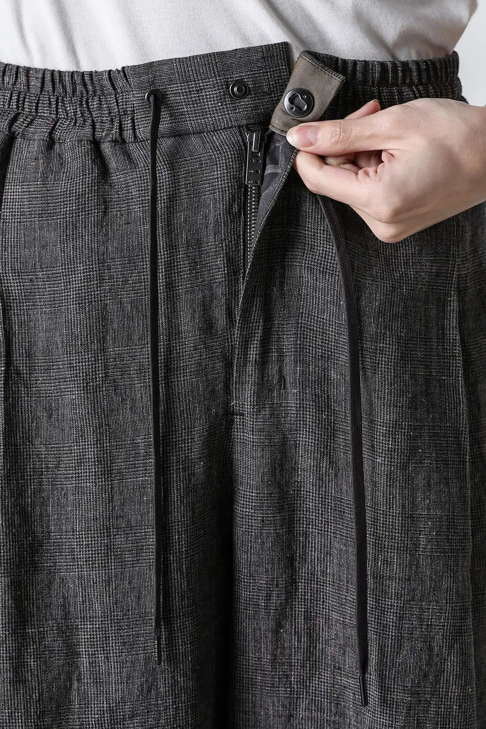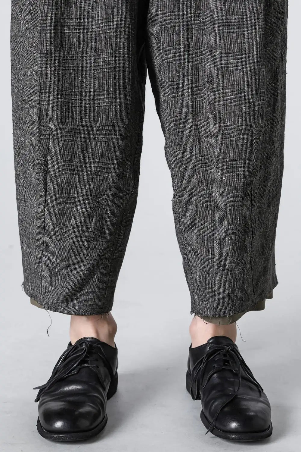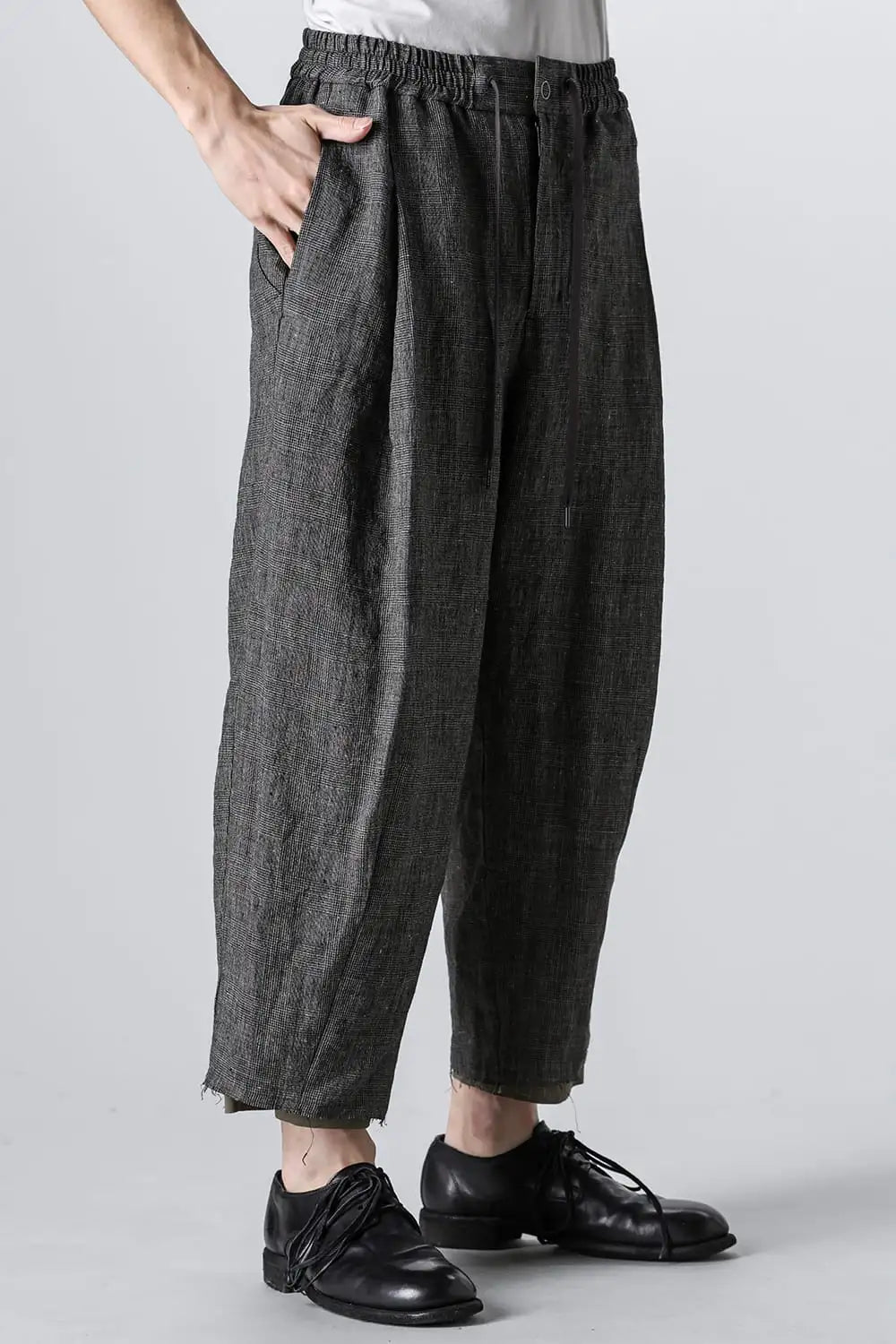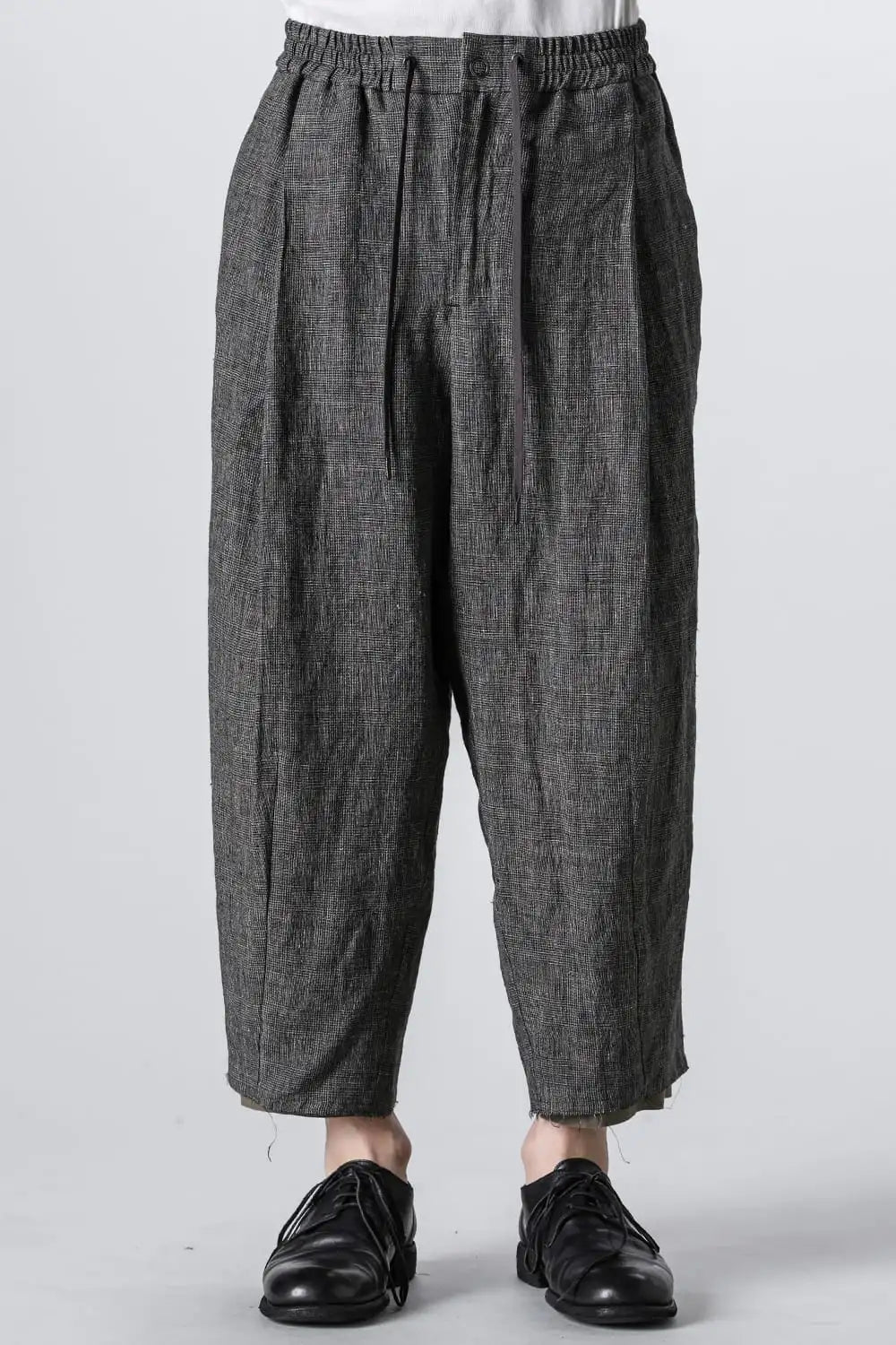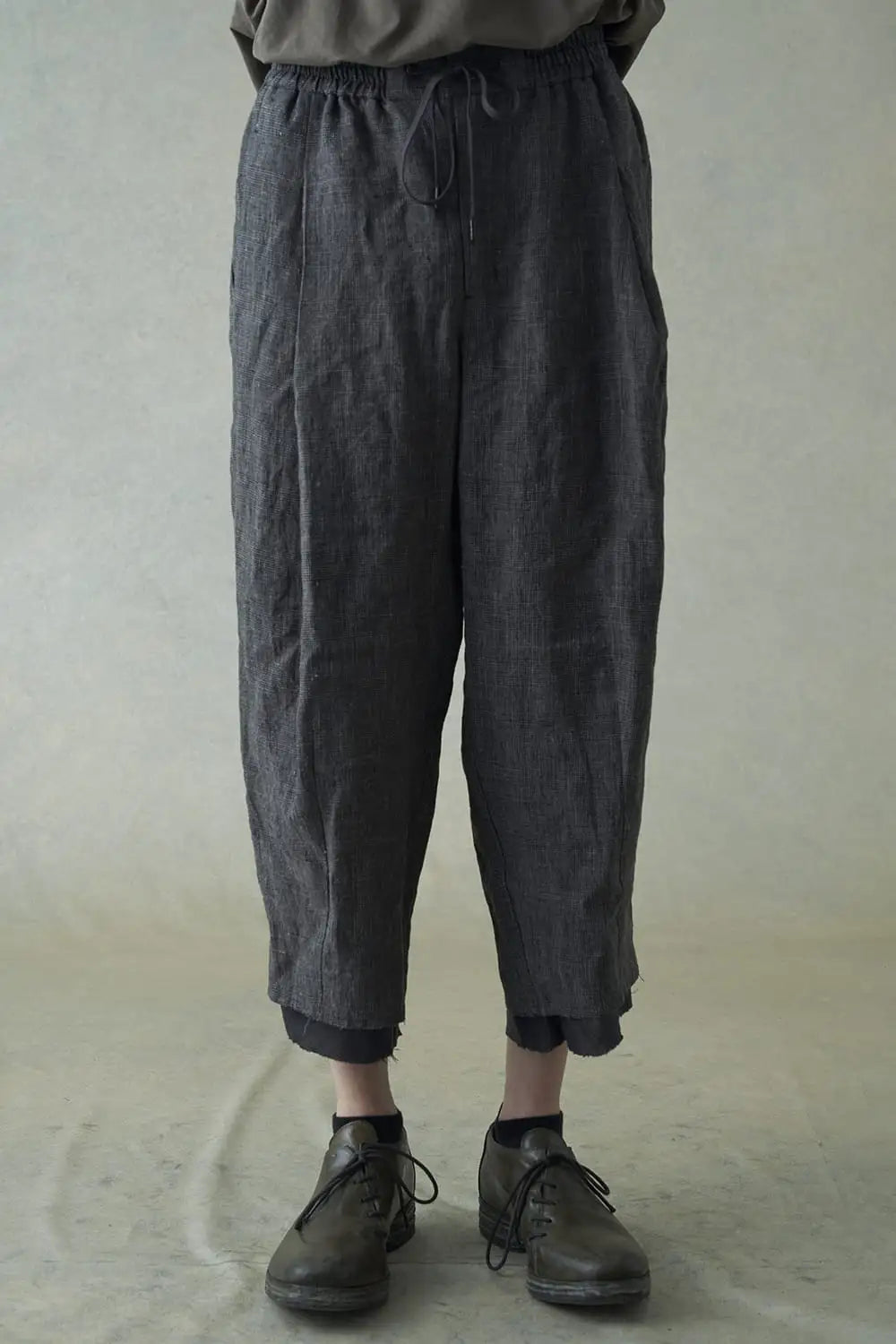 クロップドパンツ リネン グレンチェック