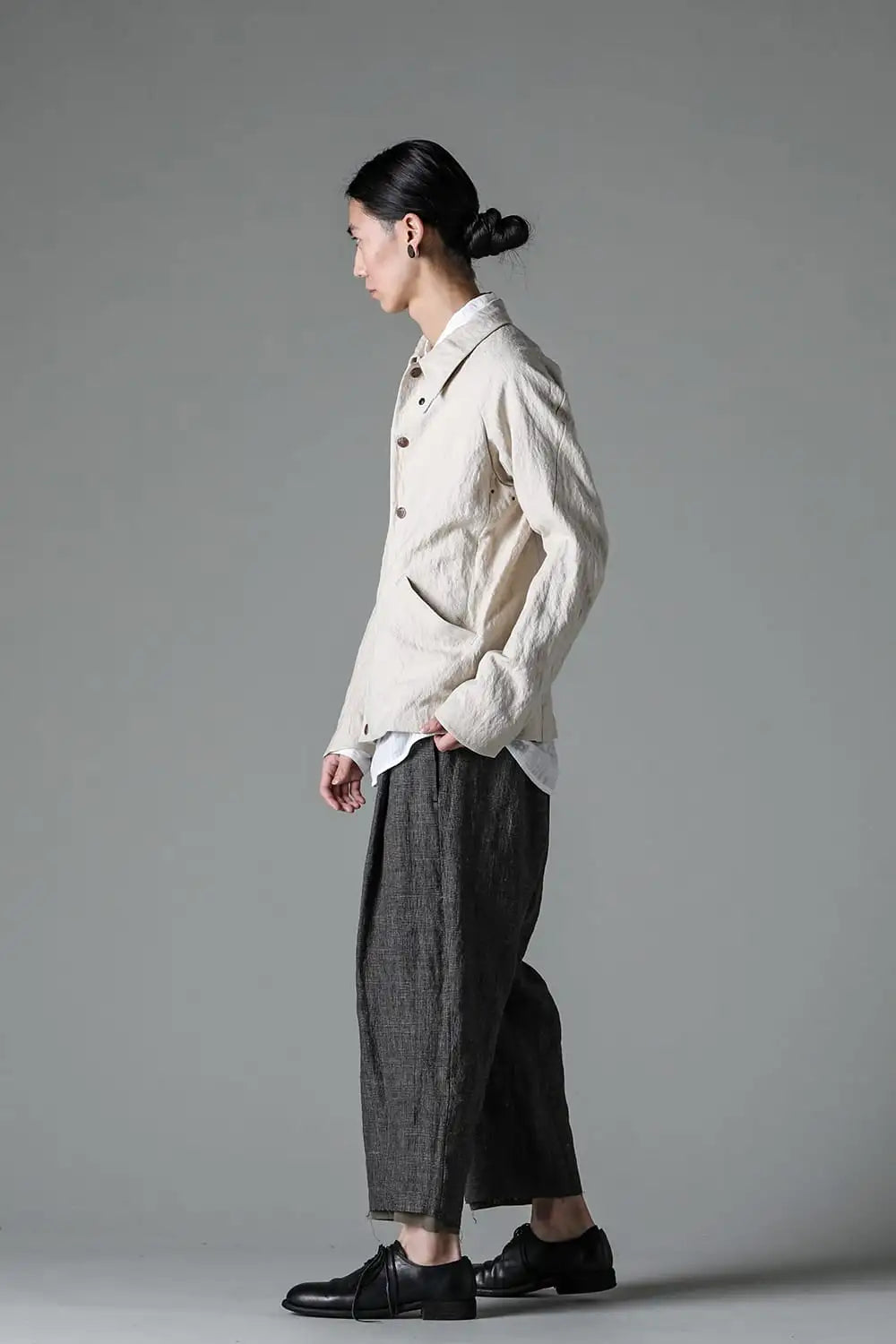 リネン特有の通気性と軽さ、洗いをかけた風合いと落ち着いた色味が特徴です。