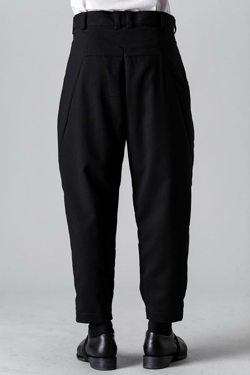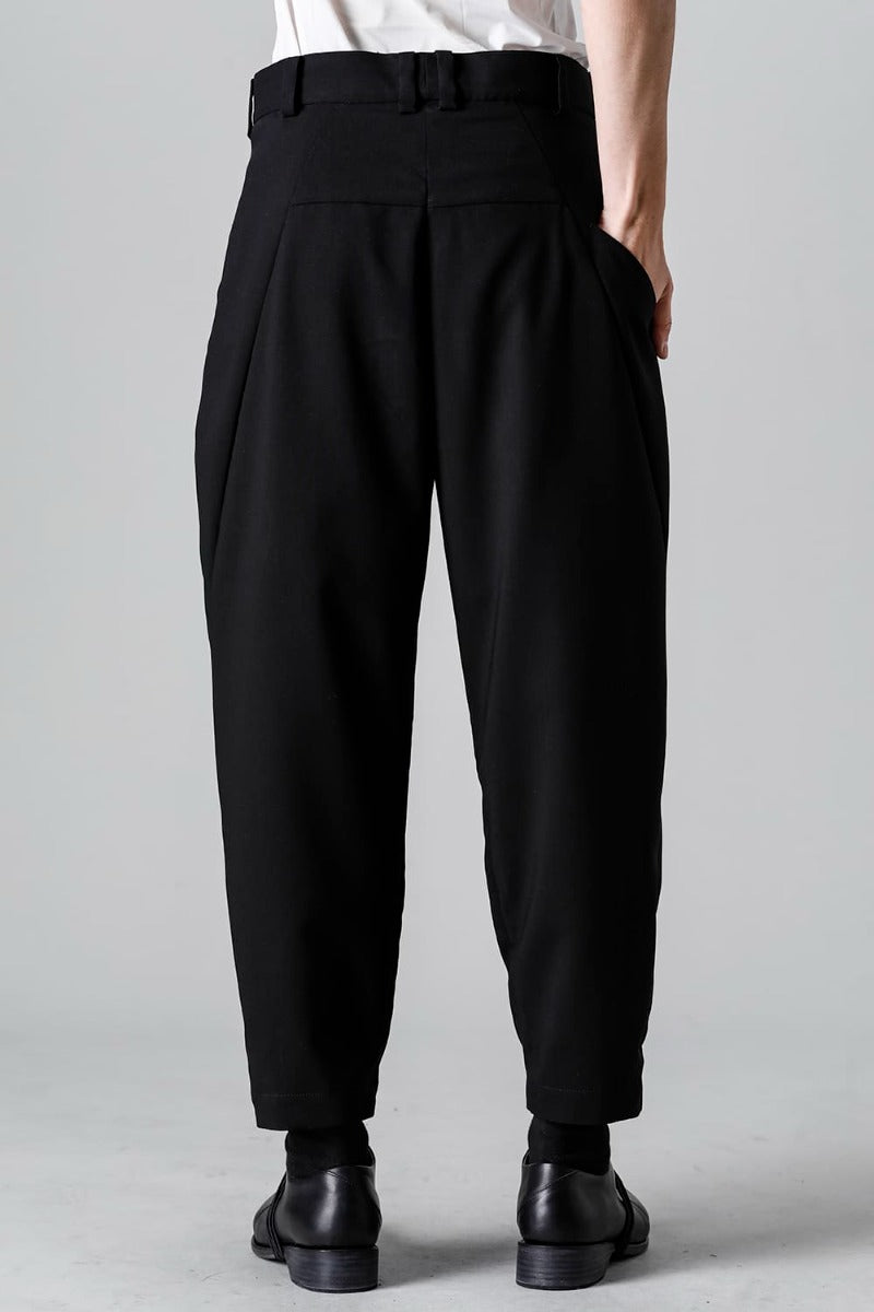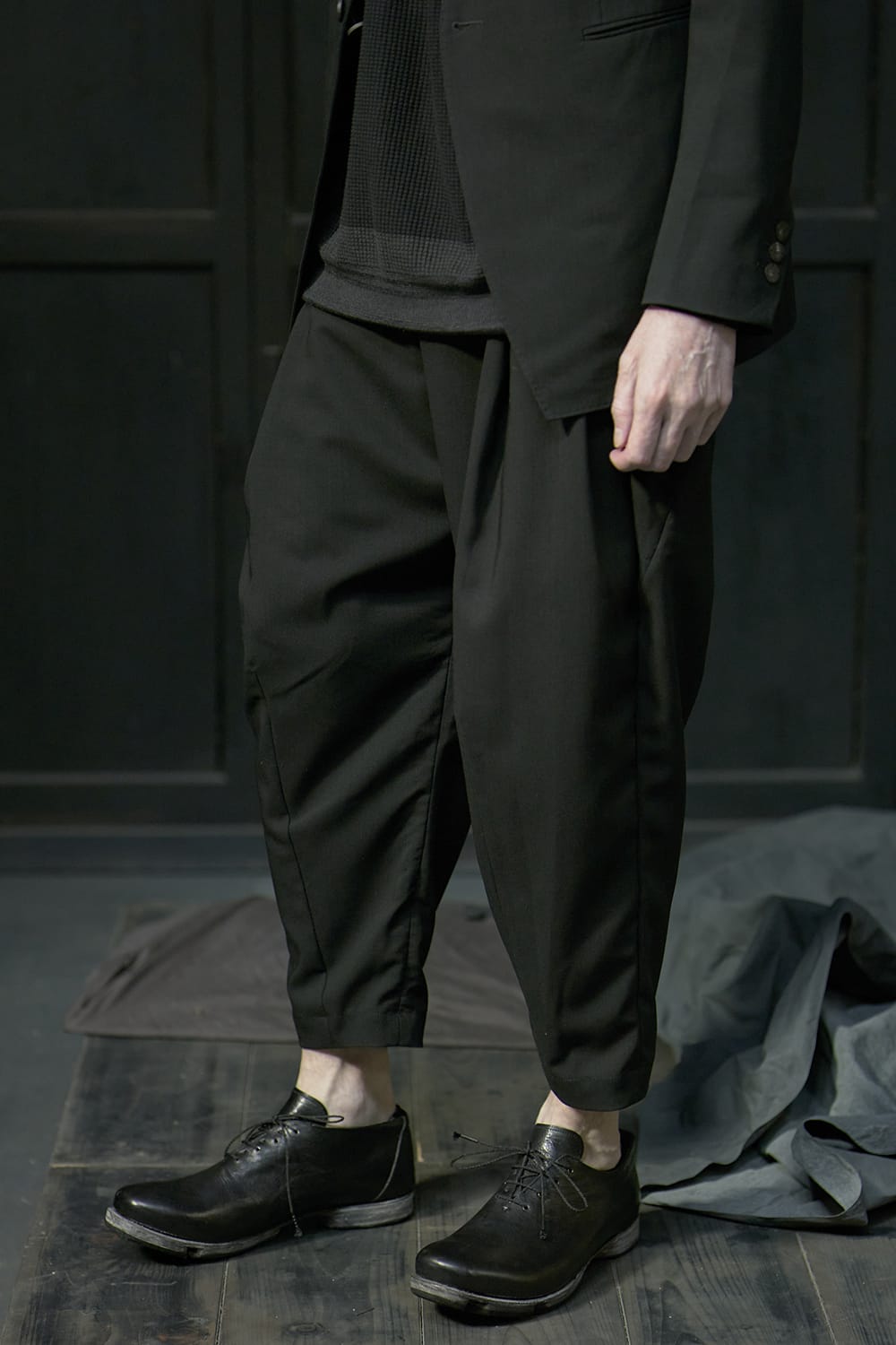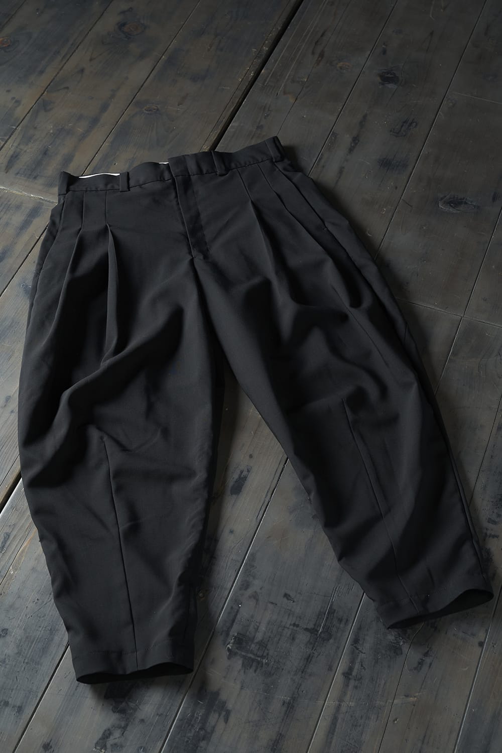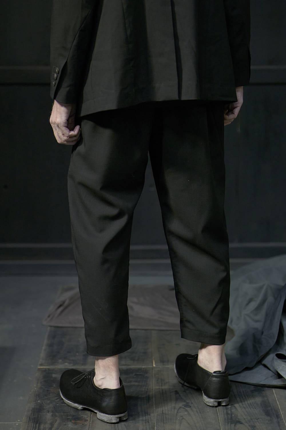 フロント部分に大きくタックを取り、緩やかにテーパードさせたシルエットの定番のクロップドパンツです。