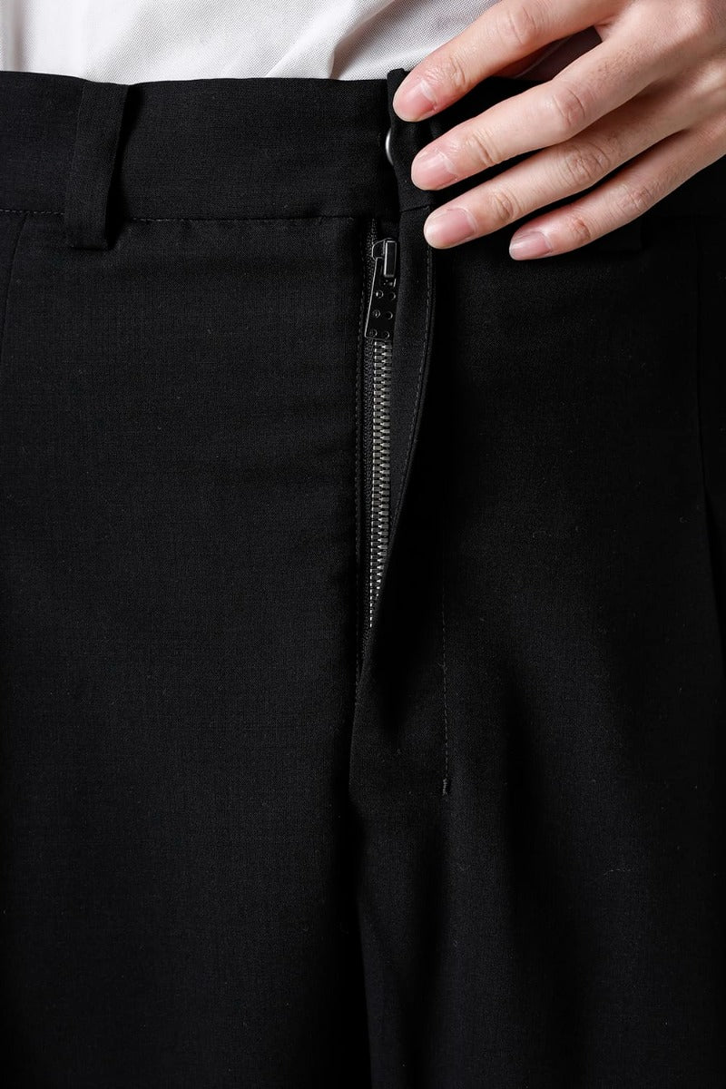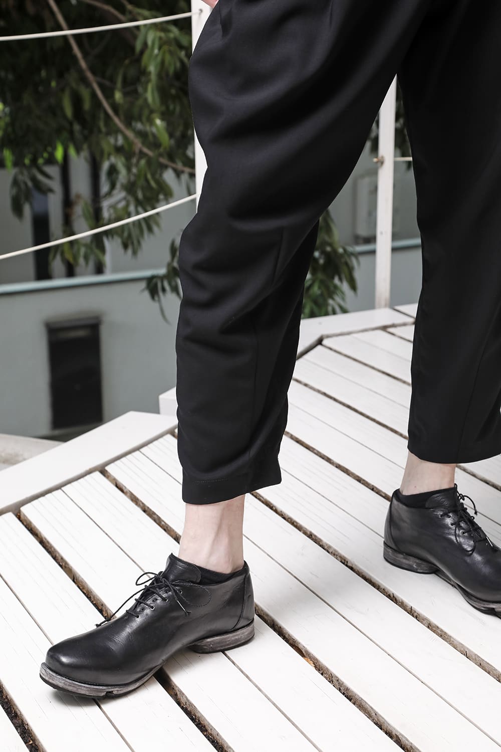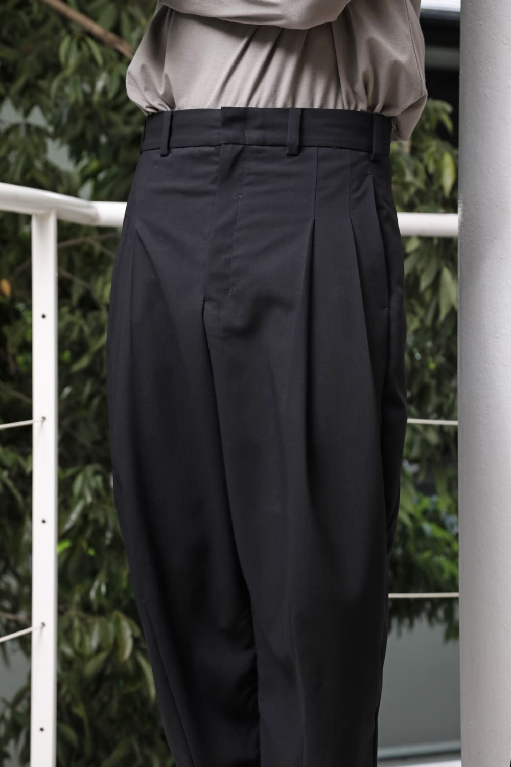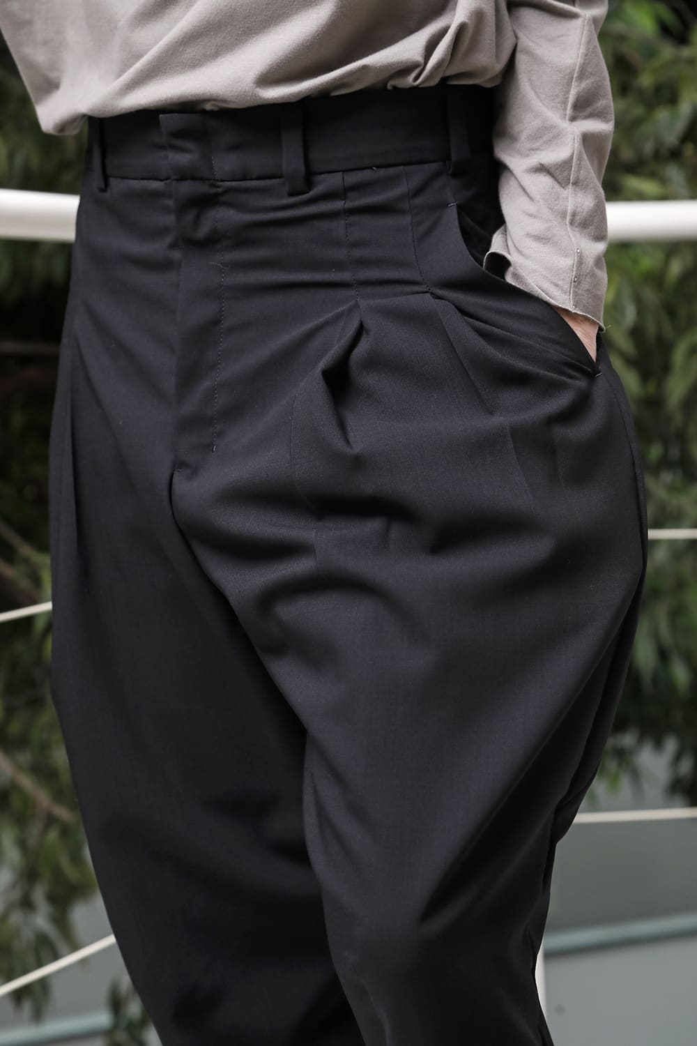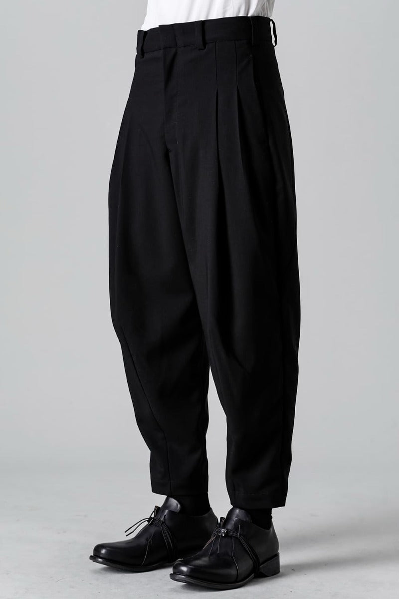 フロント部分に大きくタックを取り、緩やかにテーパードさせたシルエットの定番のクロップドパンツです。