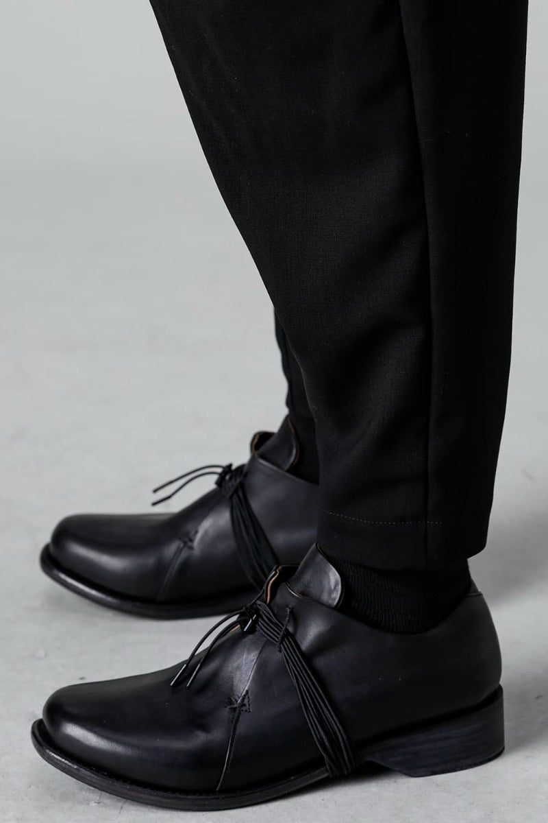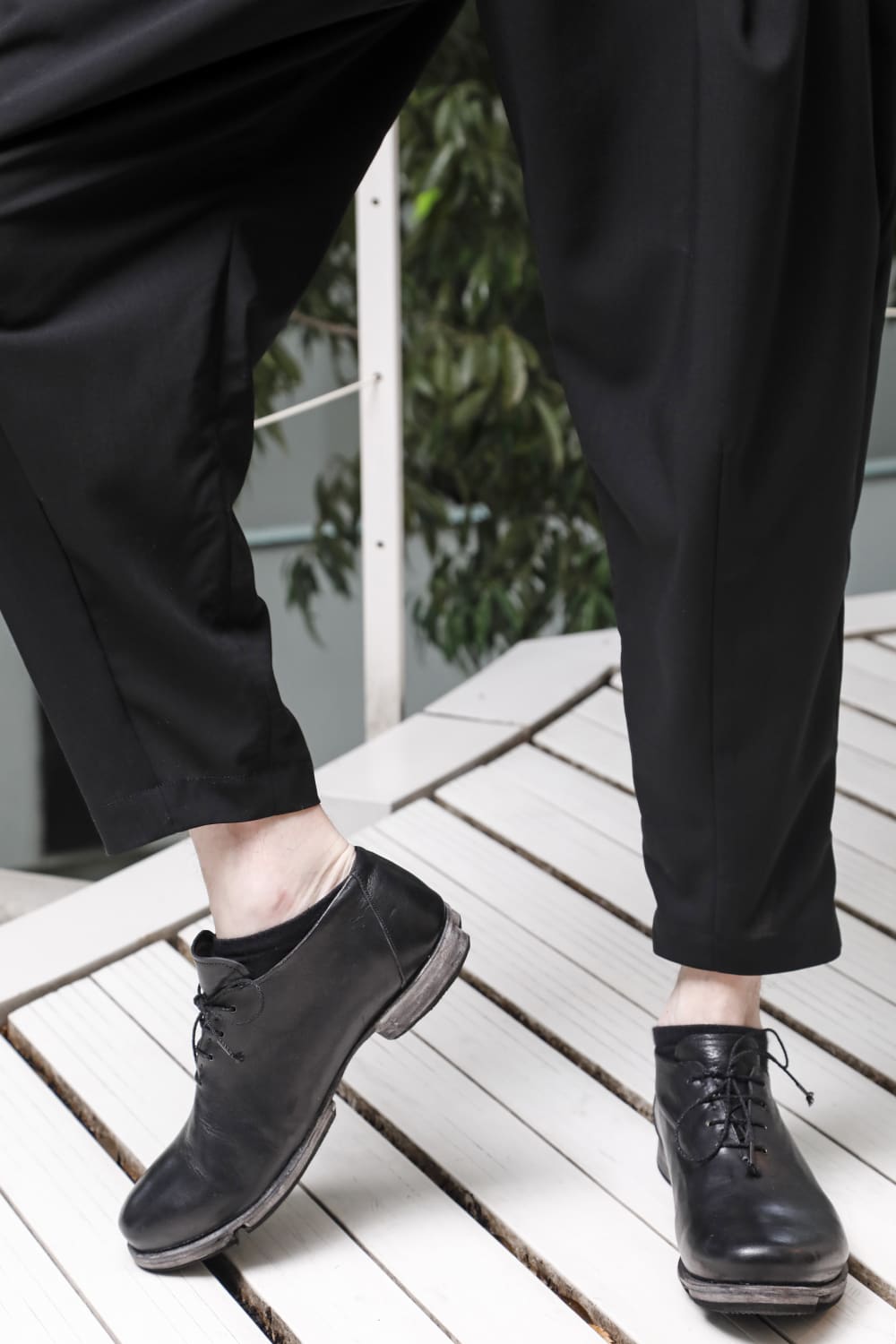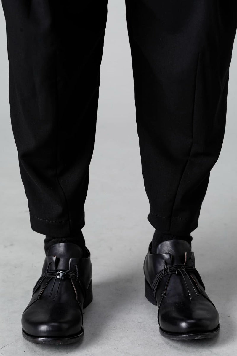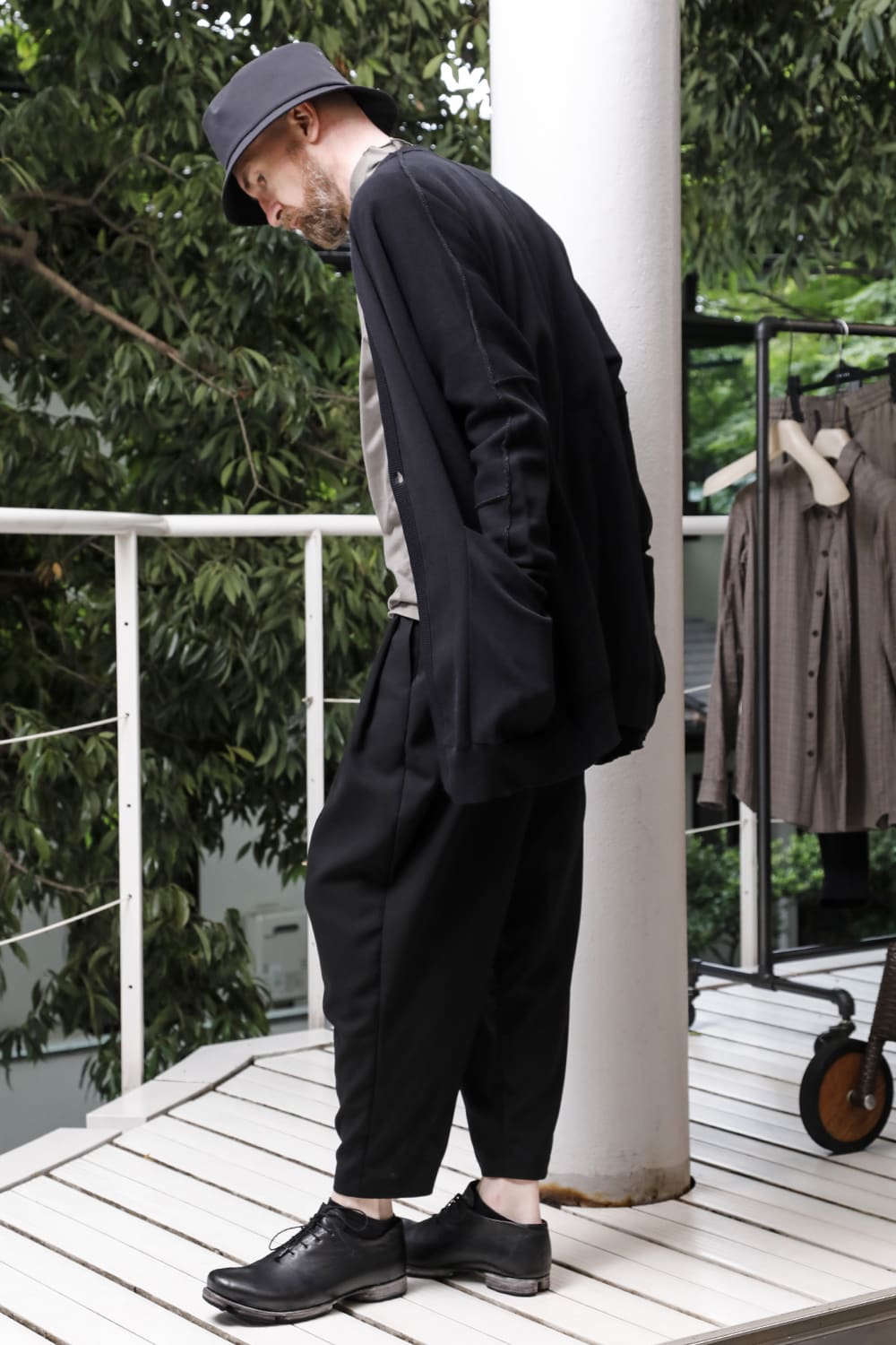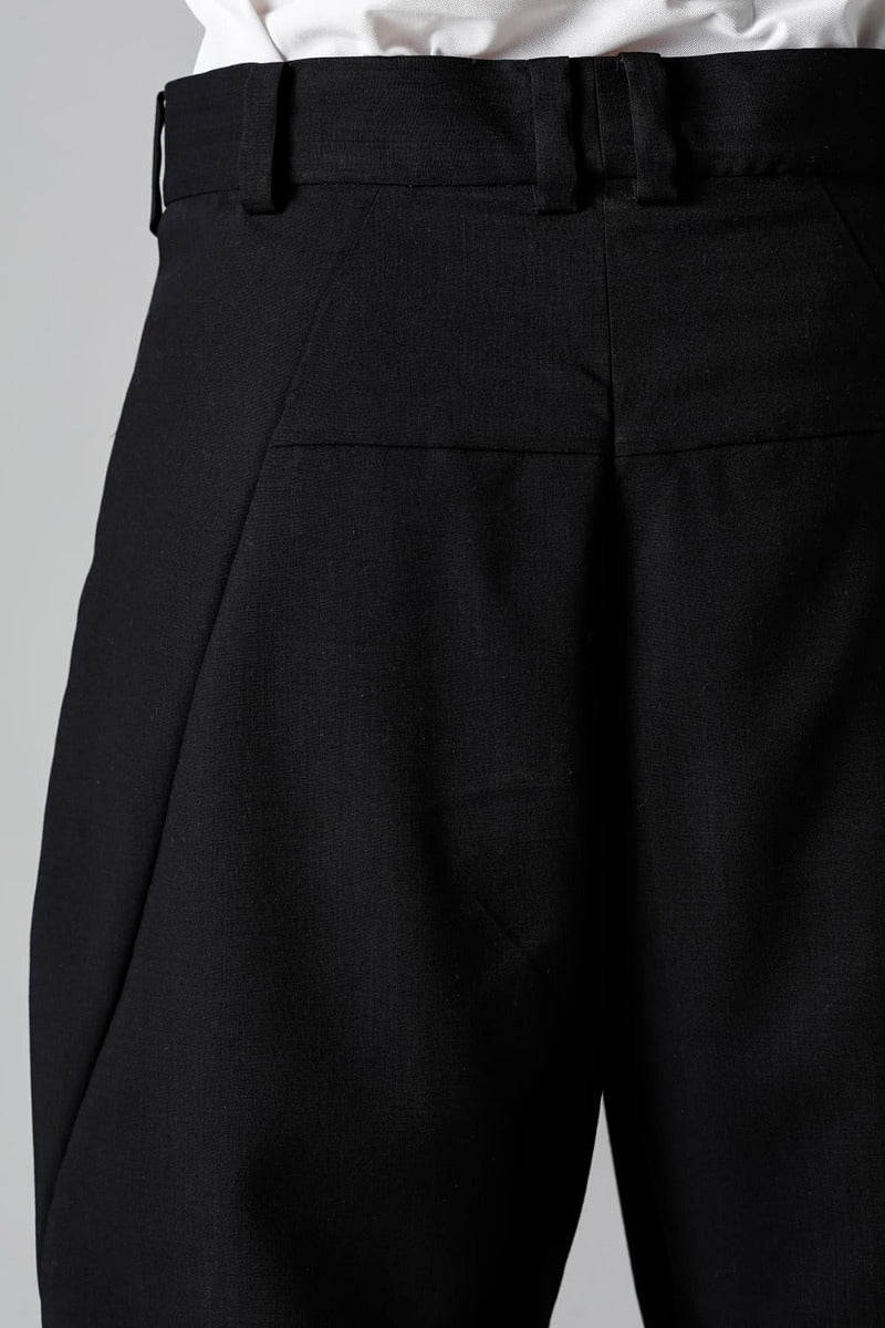フロント部分に大きくタックを取り、緩やかにテーパードさせたシルエットの定番のクロップドパンツです。