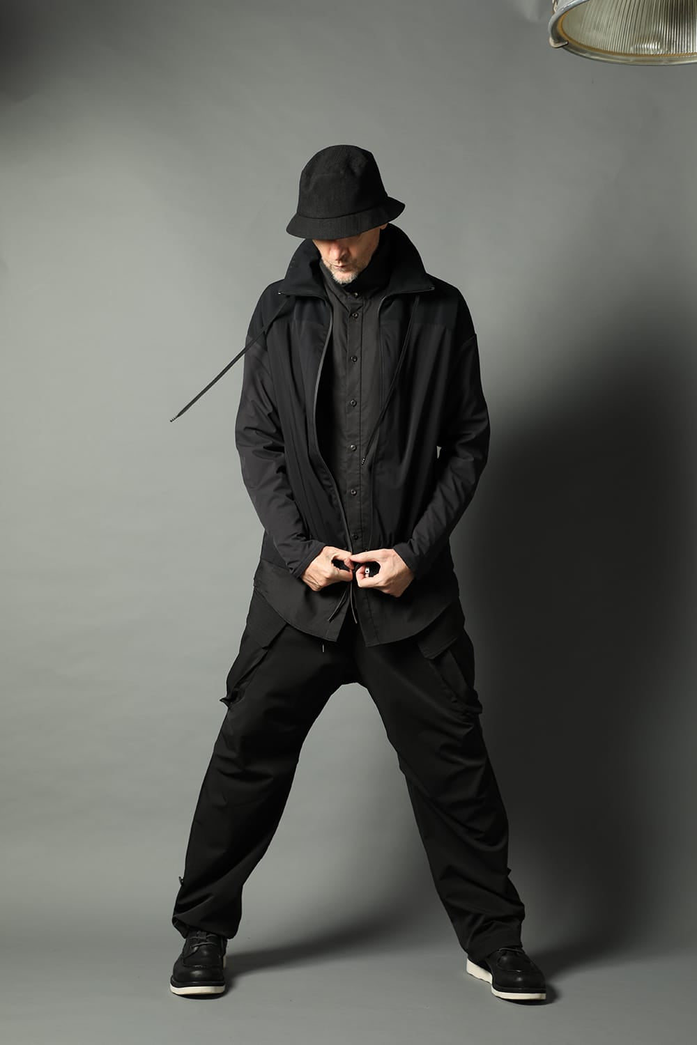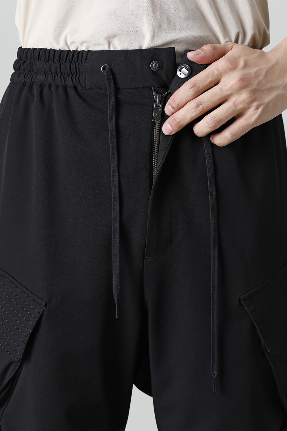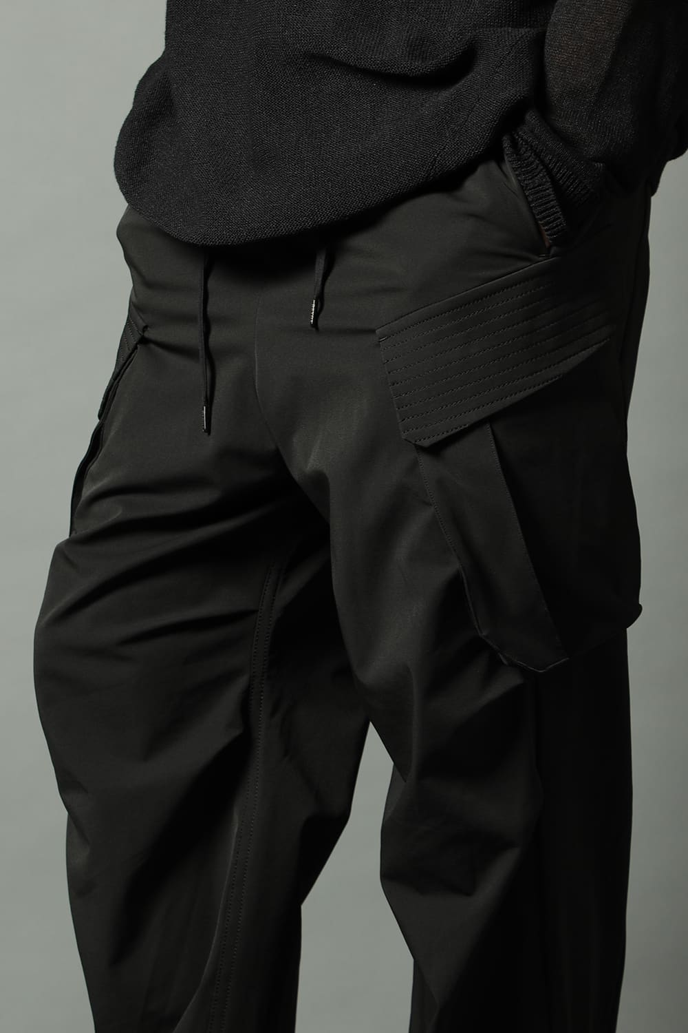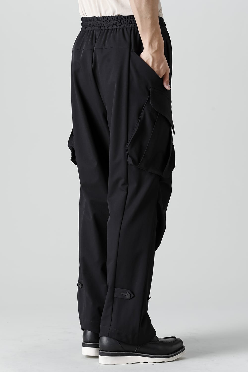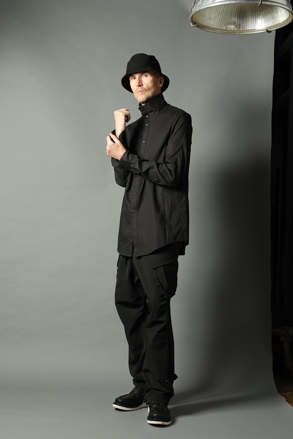 股上を深く取り、フランス軍M47 のカーゴパンツのディティールを合わせて独自のパターンで再構築しました。裾にはカーゴパンツのディティールを残してボタンで止めることによりシルエットに変化を与えることができます。