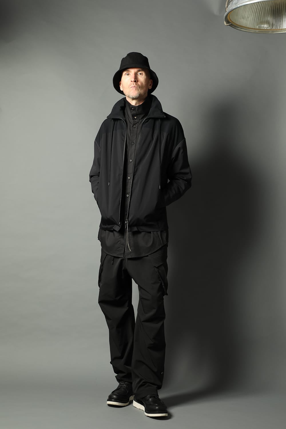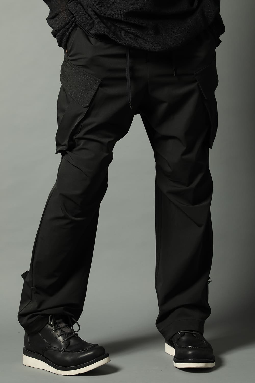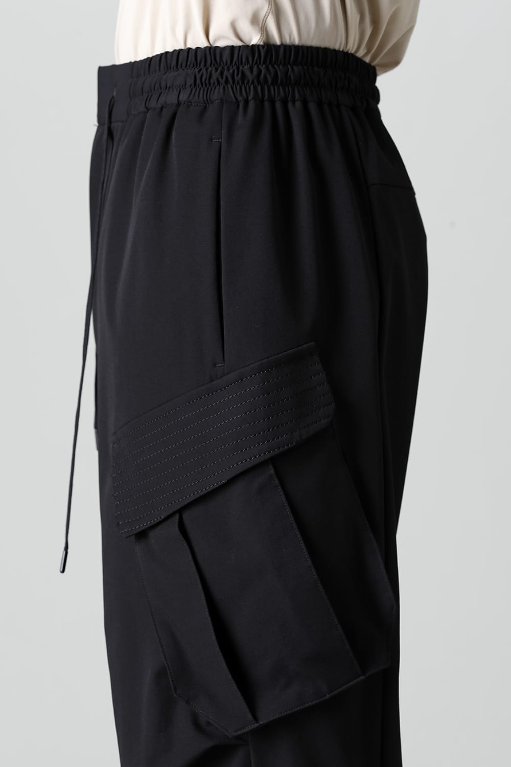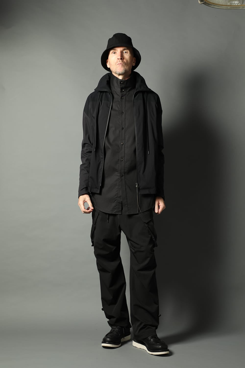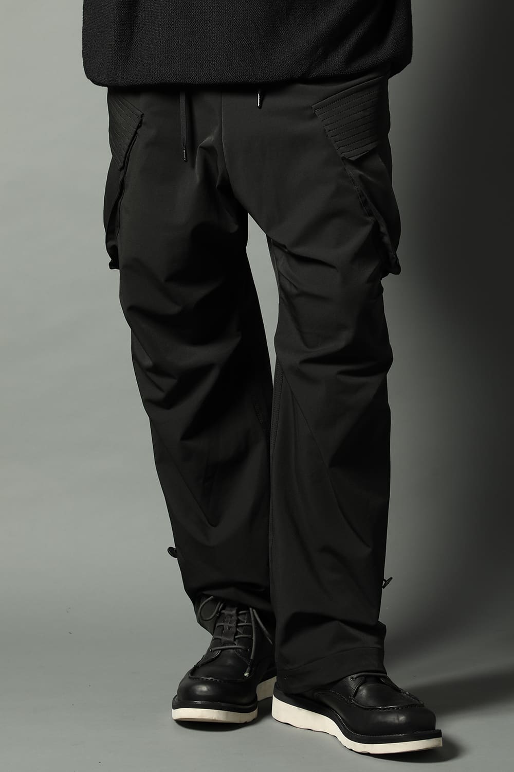 股上を深く取り、フランス軍M47 のカーゴパンツのディティールを合わせて独自のパターンで再構築しました。裾にはカーゴパンツのディティールを残してボタンで止めることによりシルエットに変化を与えることができます。