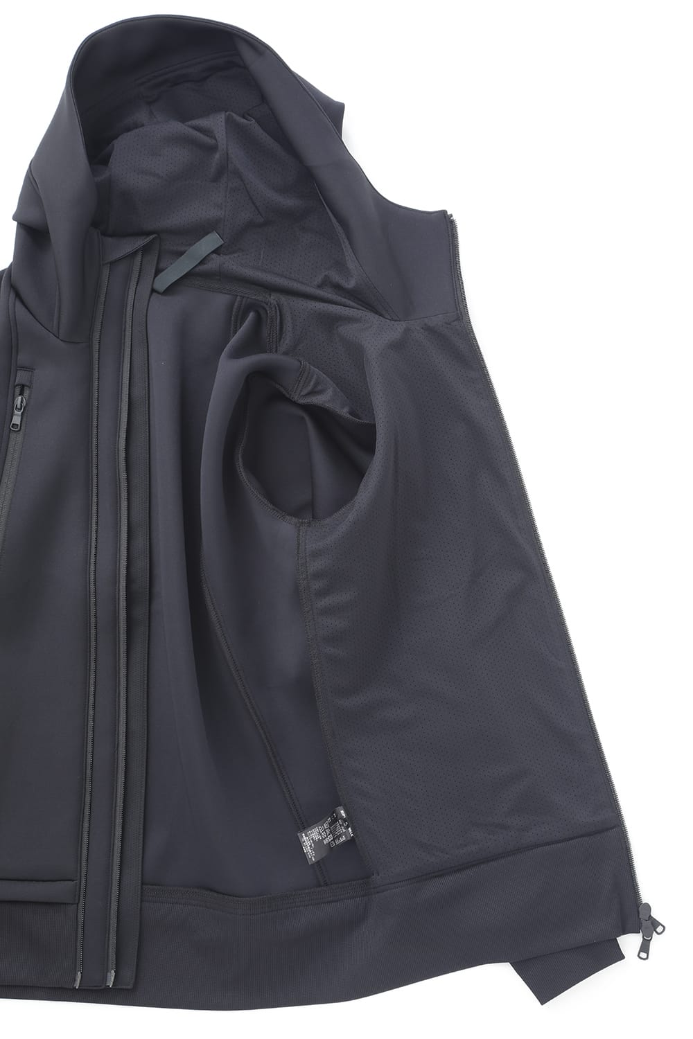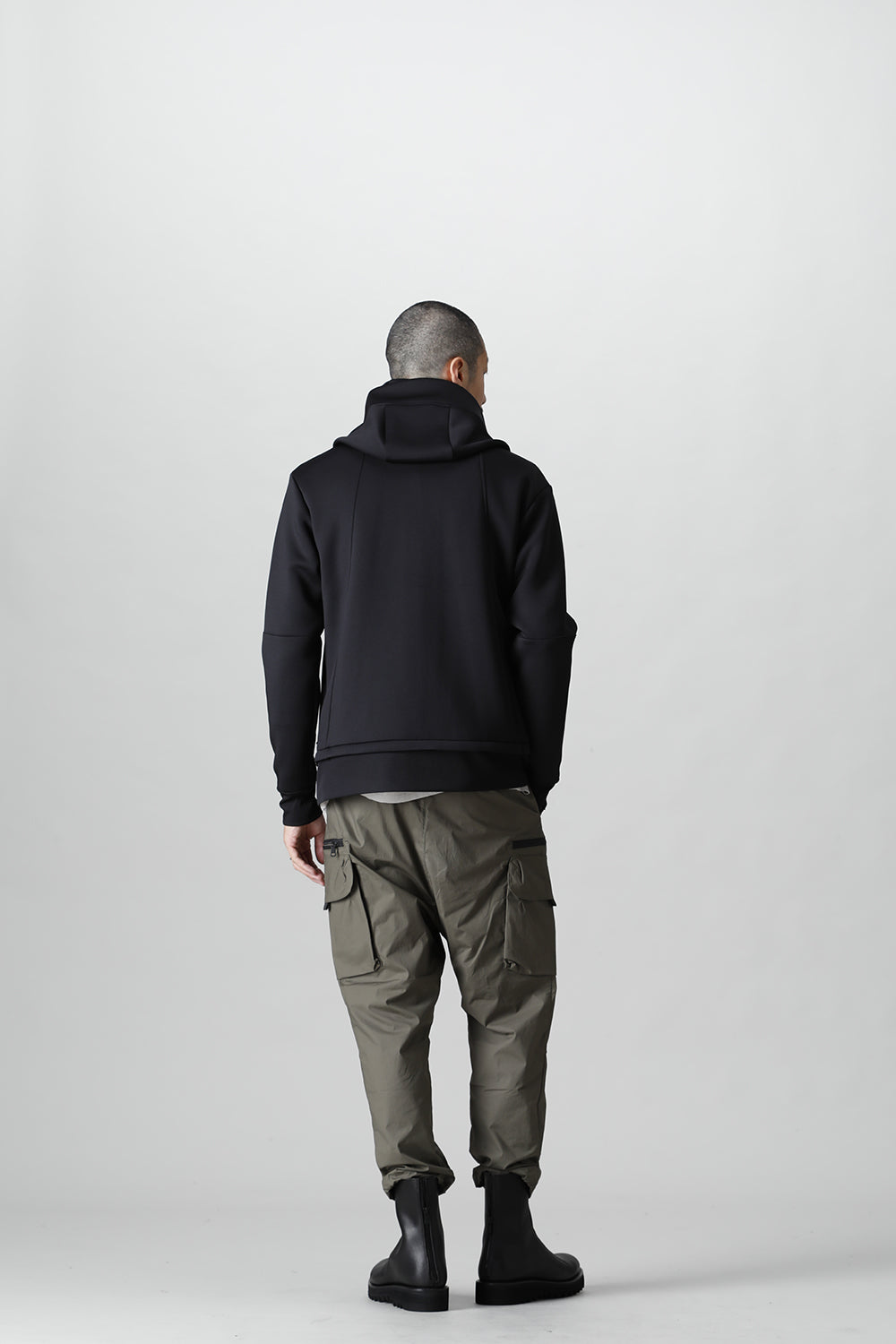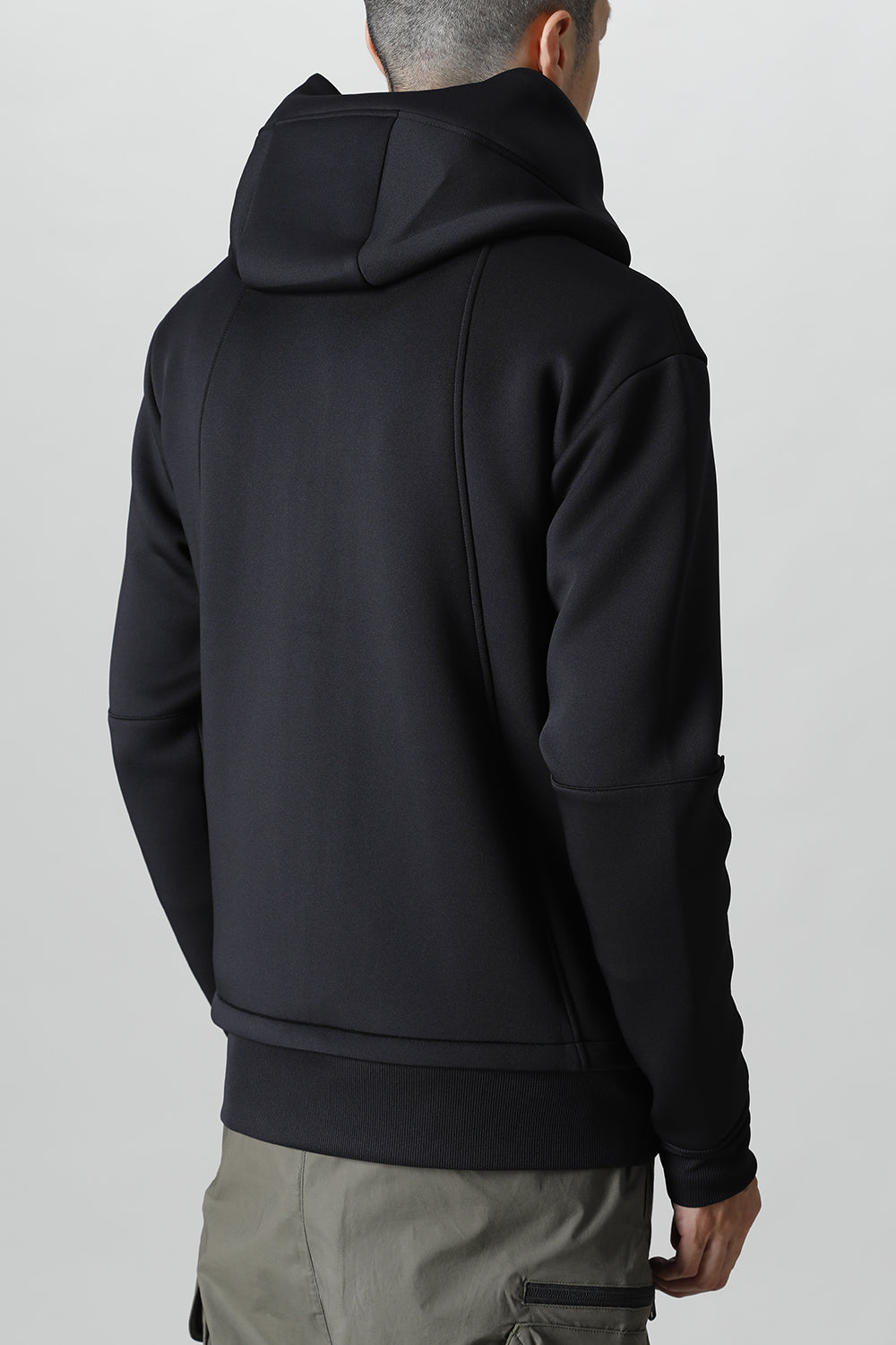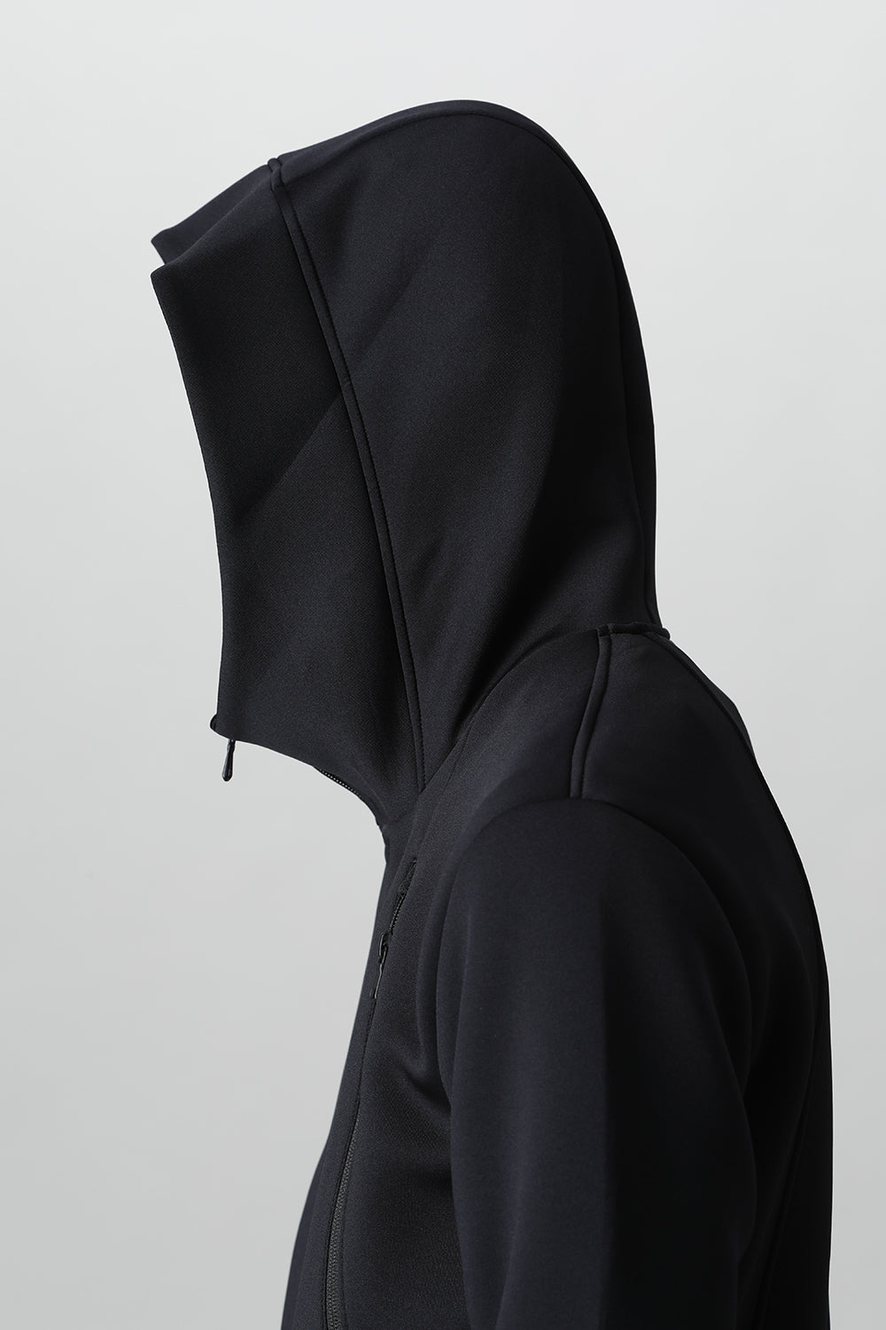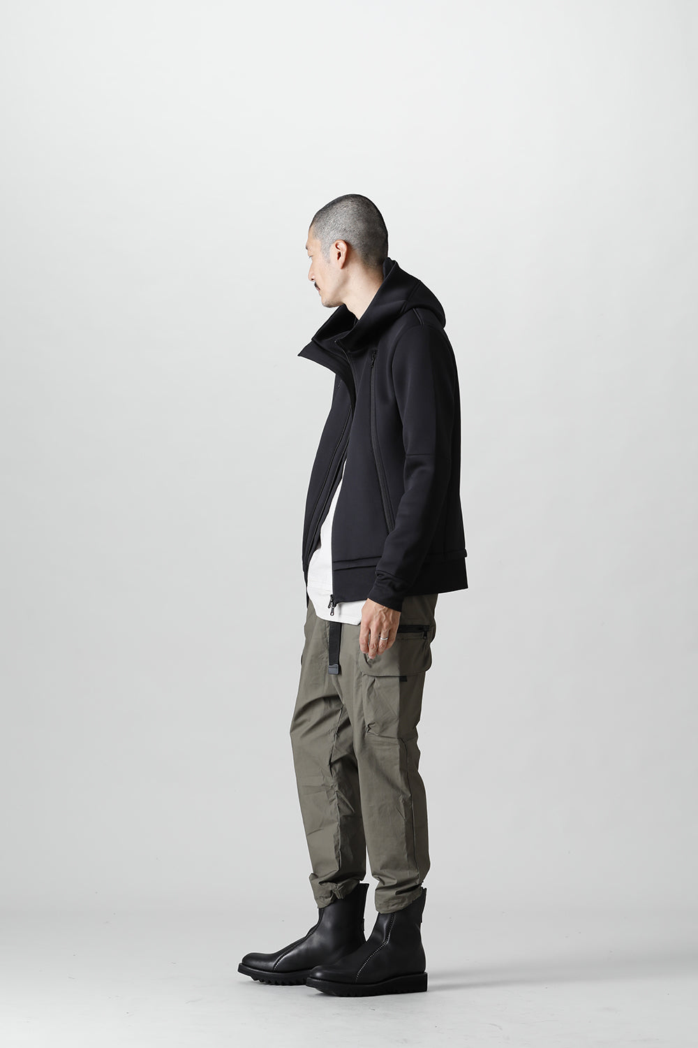 ダイバーニットジャージ素材を使用したライダースフーディ。