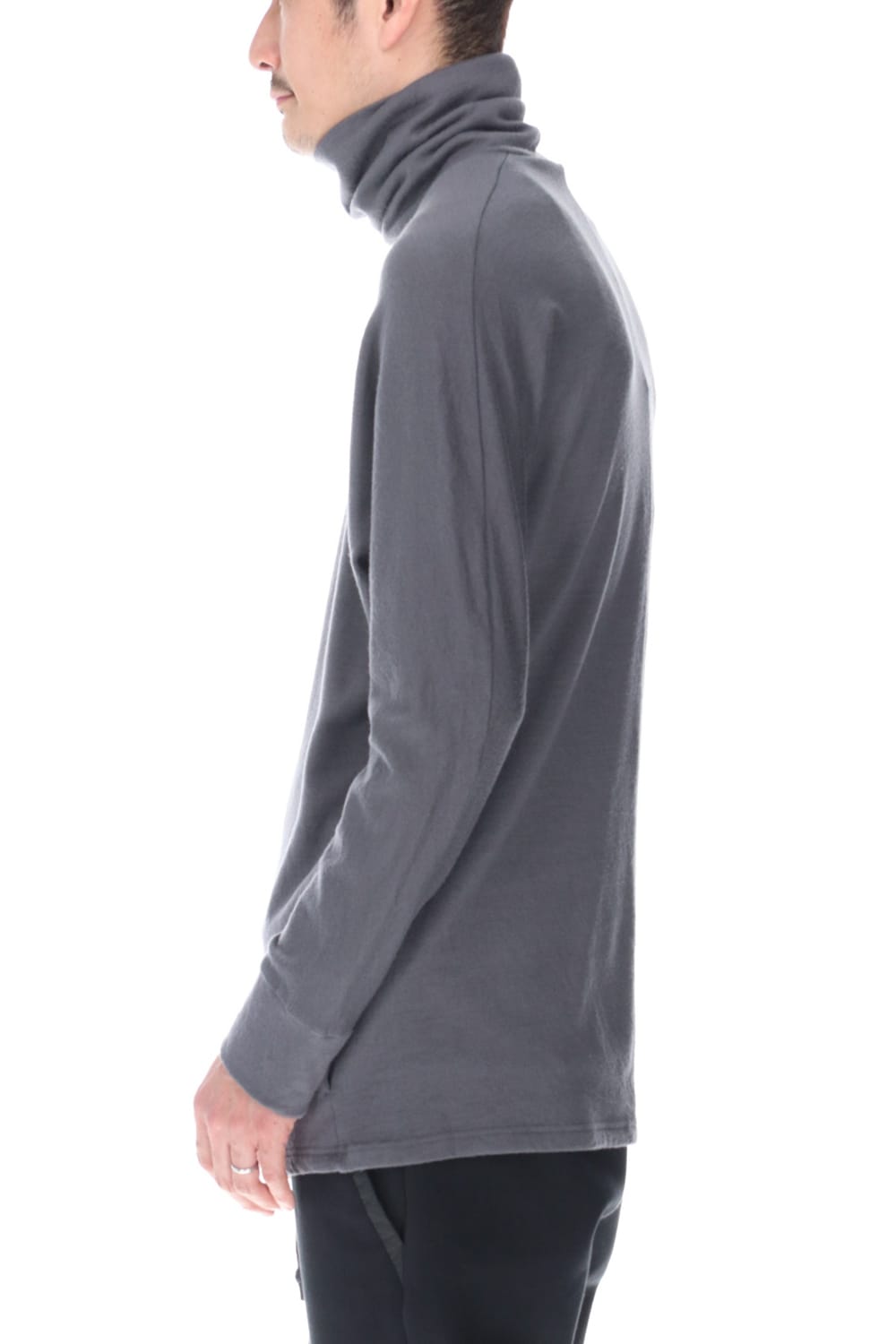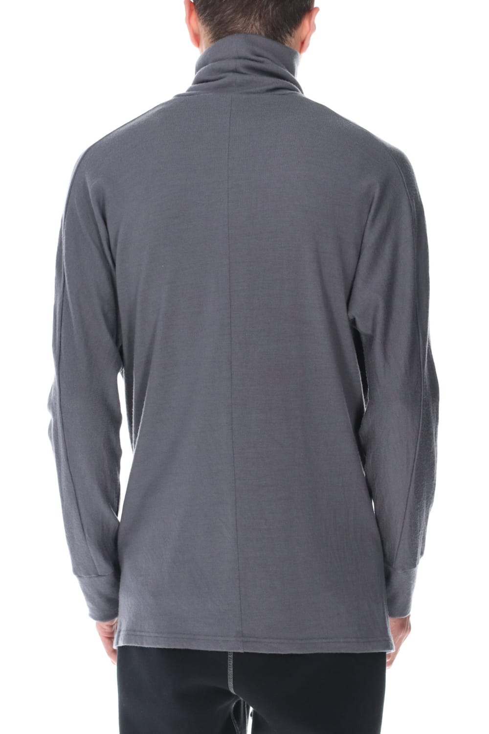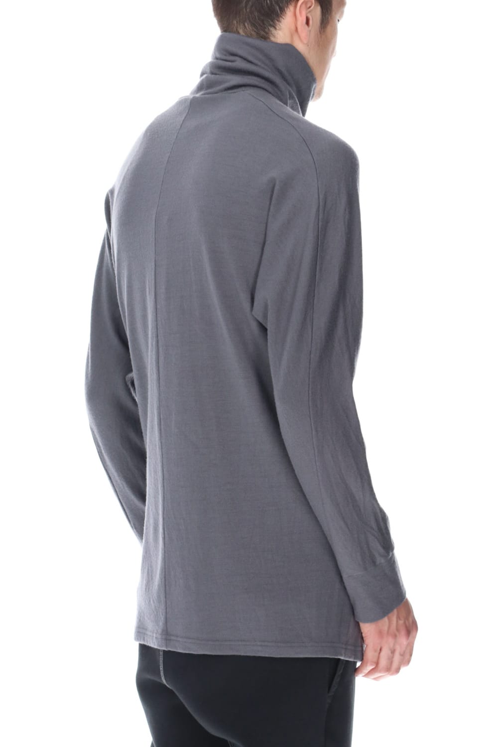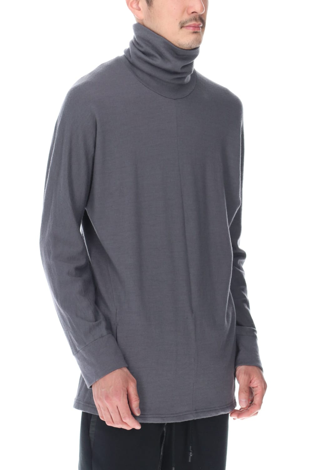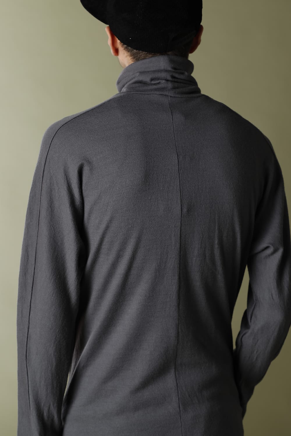 家庭用洗濯機で洗濯が可能なミドルウォッシャブルウールのドルマンタートルジャージ。今シーズンはあると便利なポケットを装備。