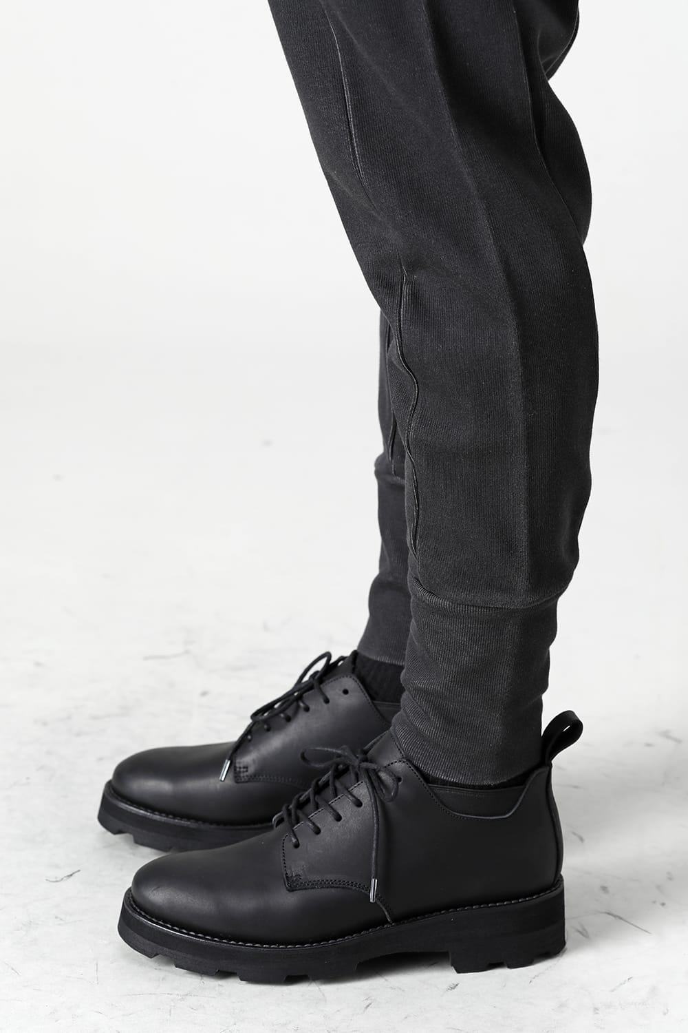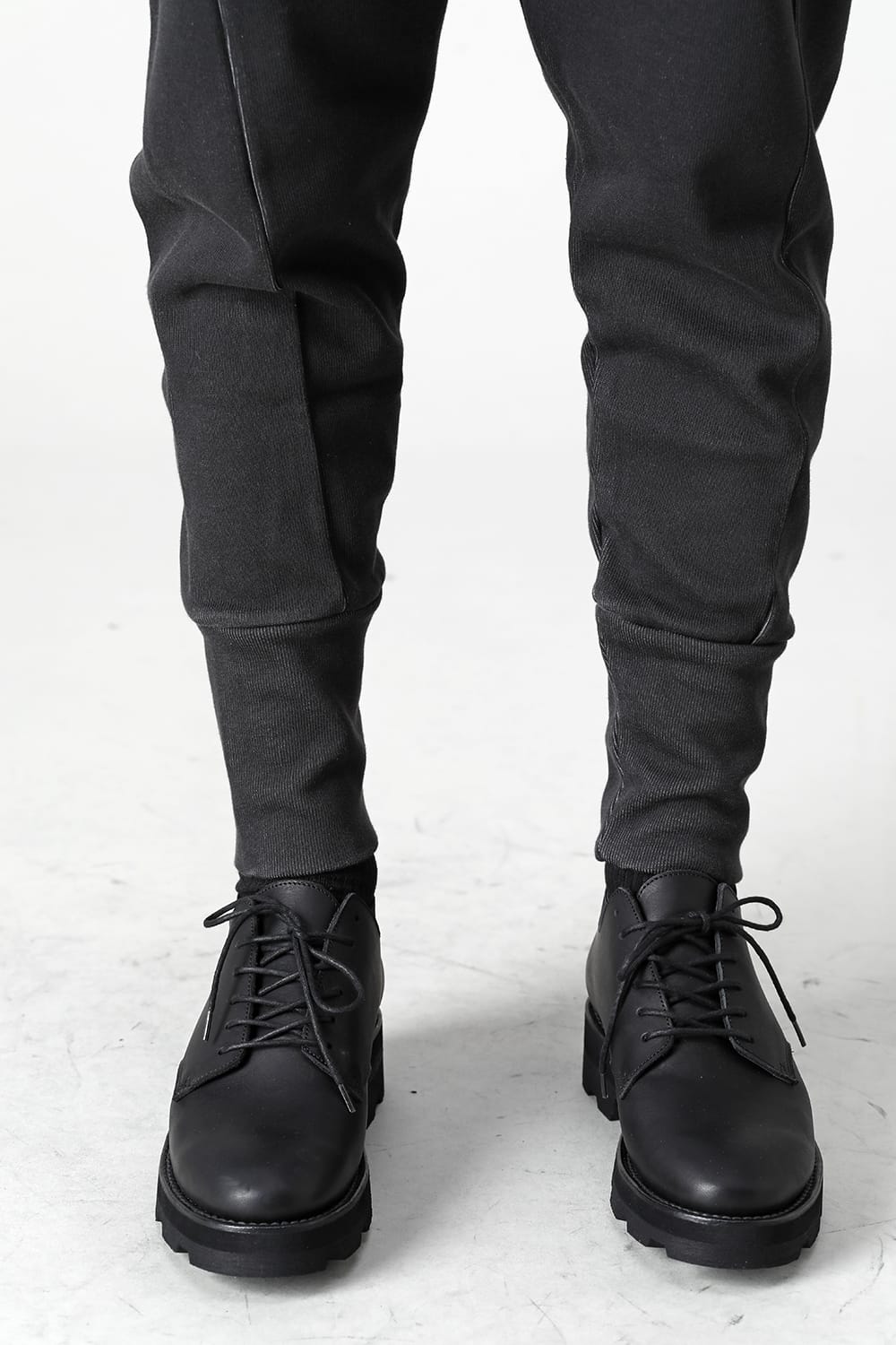・リブもやや長めの設定し、ウエストの紐も排したソリッドな印象のジャージパンツ。