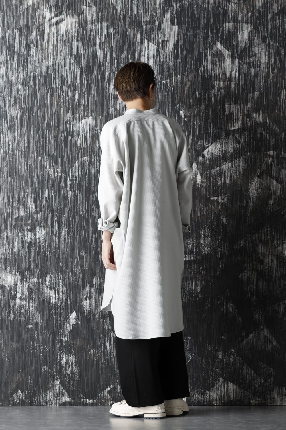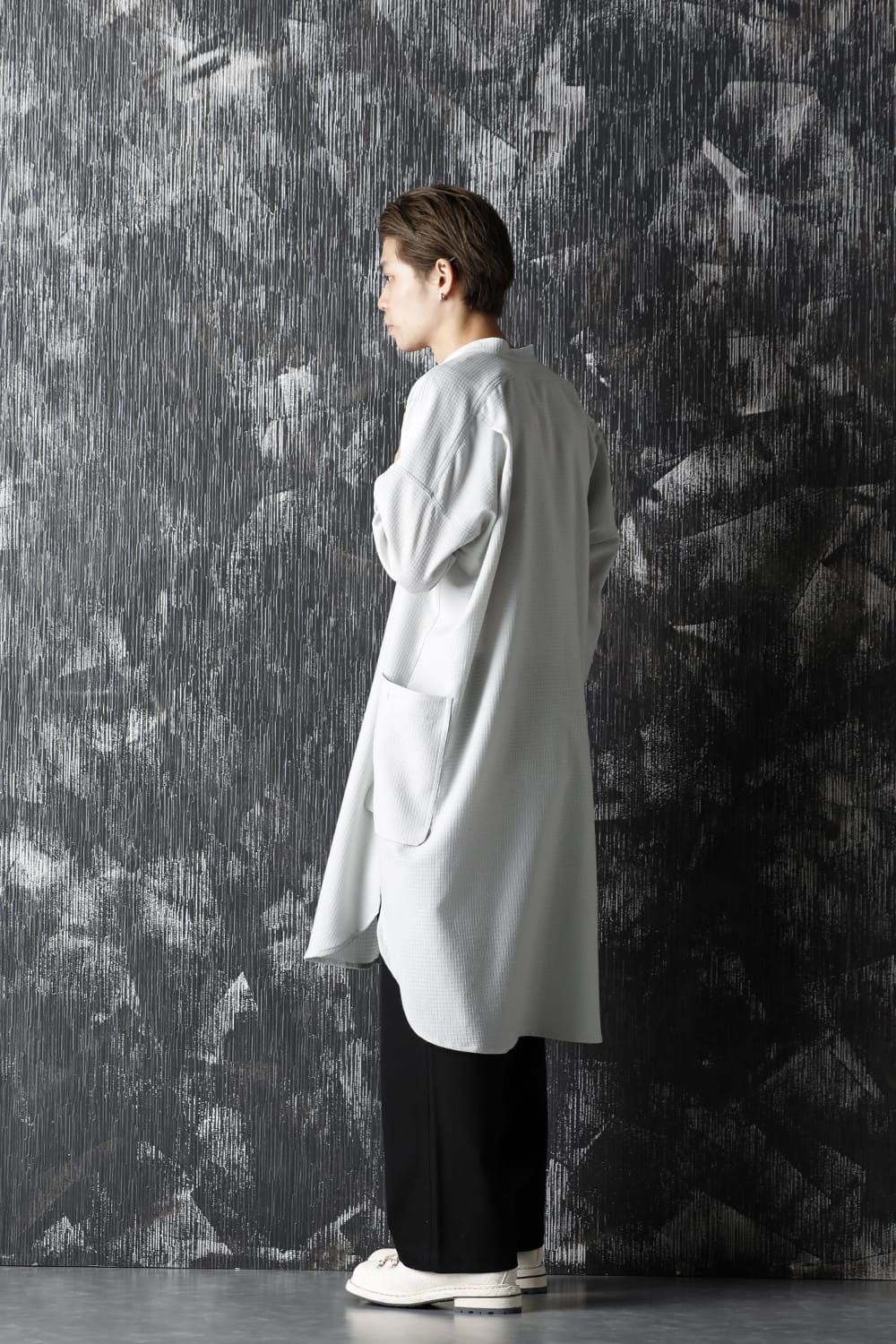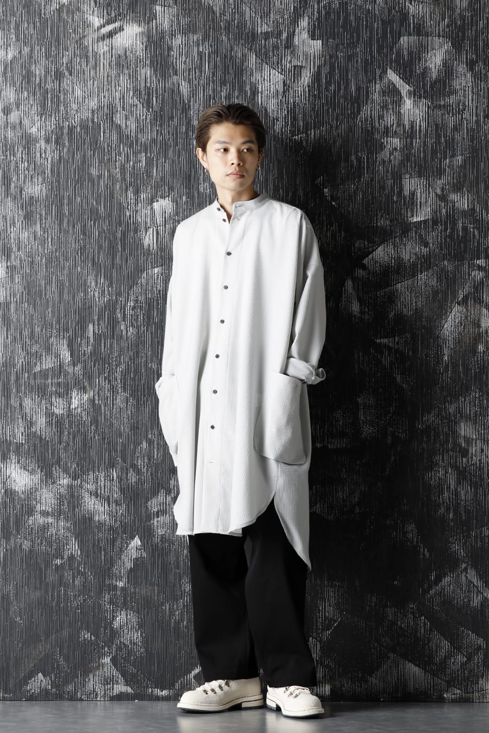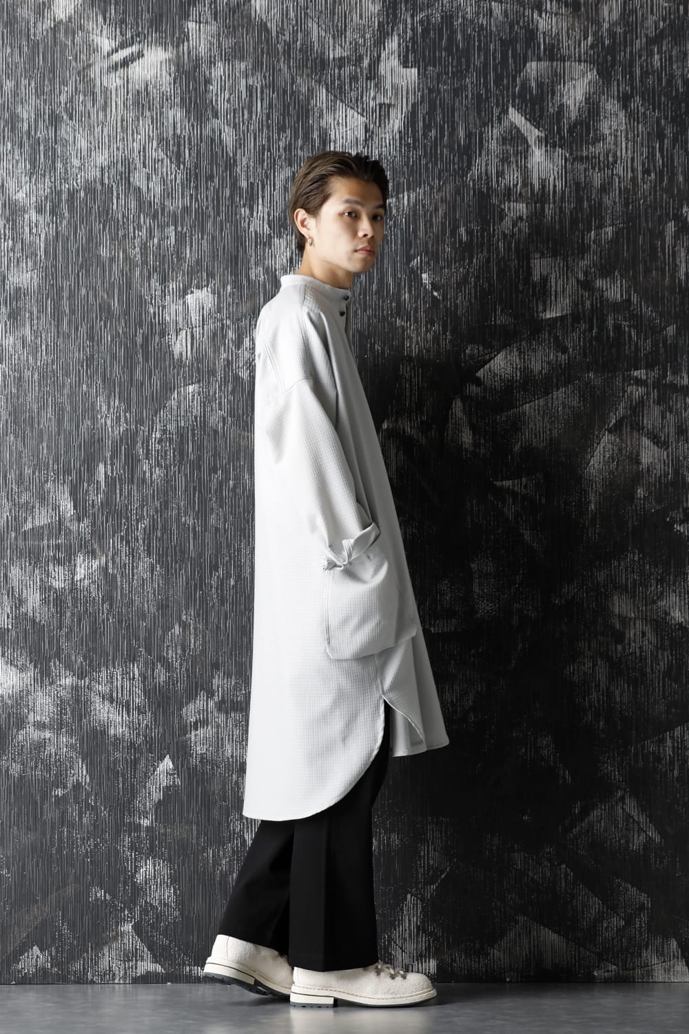メインラインであるJAN-JAN VAN ESSCHEで展開されているウーズフィットデニムを原型としたワイドシルエットパンツに近い形状で制作されたワイドパンツ。 生地はウールコットンのギャバジン を仕様しており、しっかりとした厚みとハリがあります。