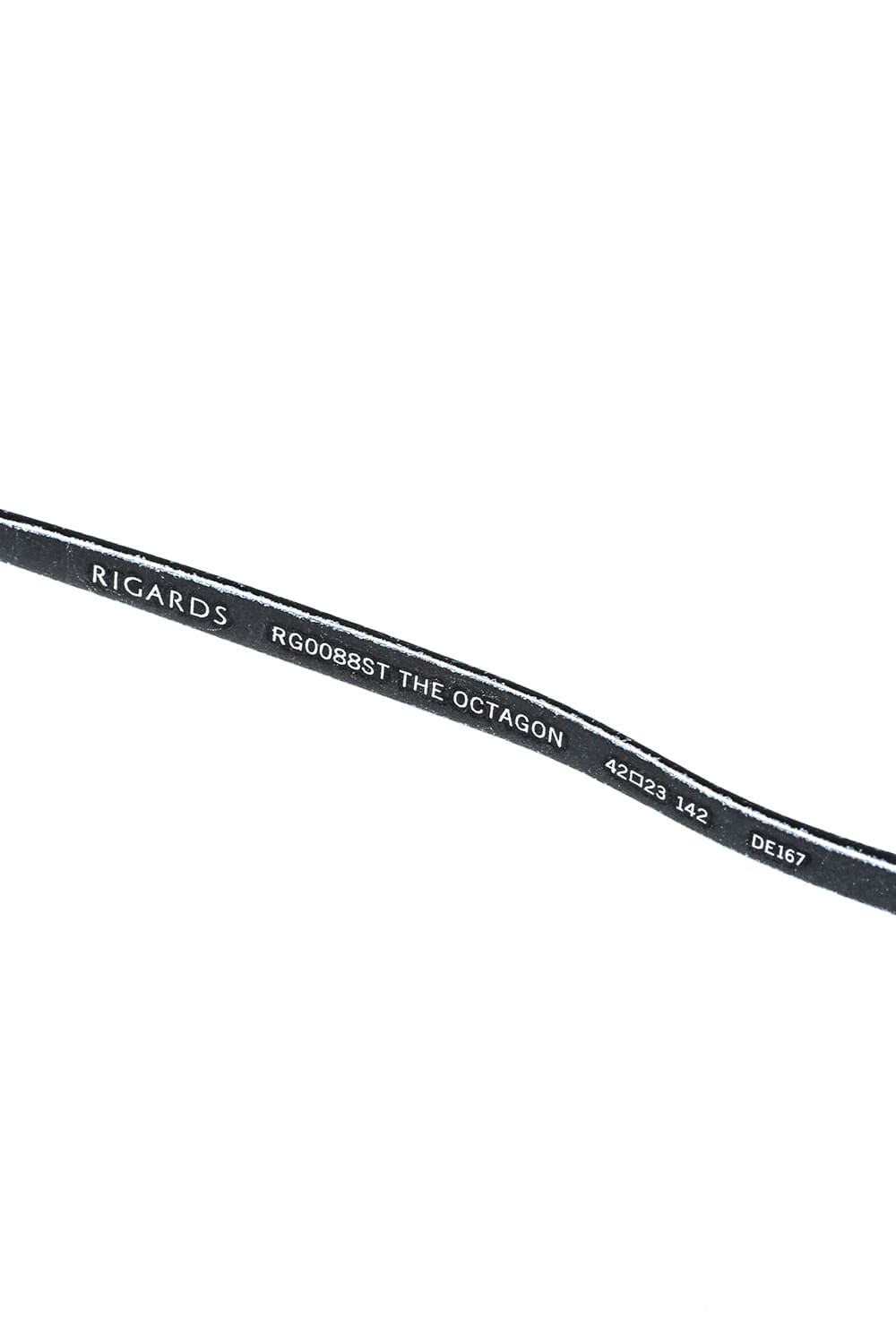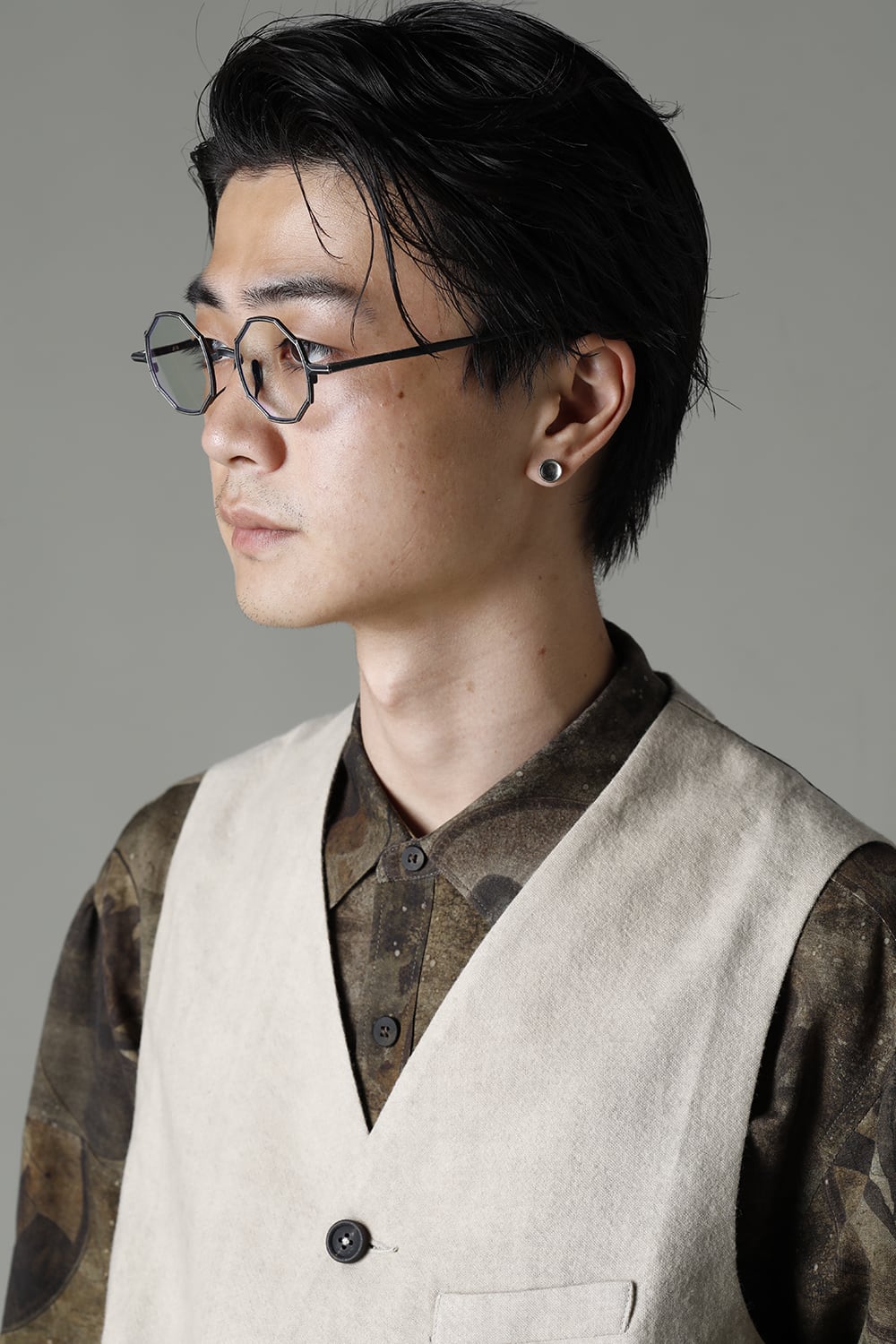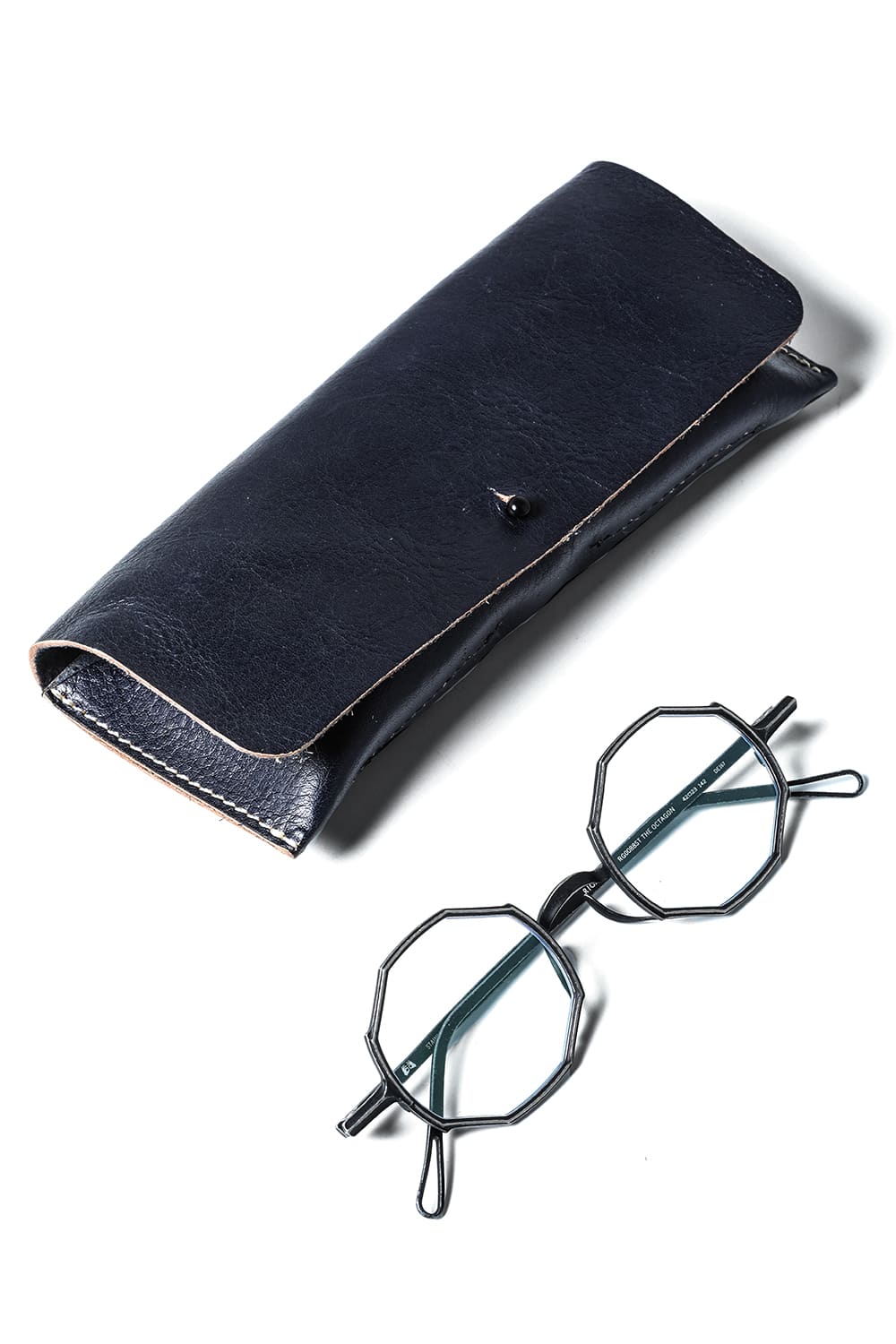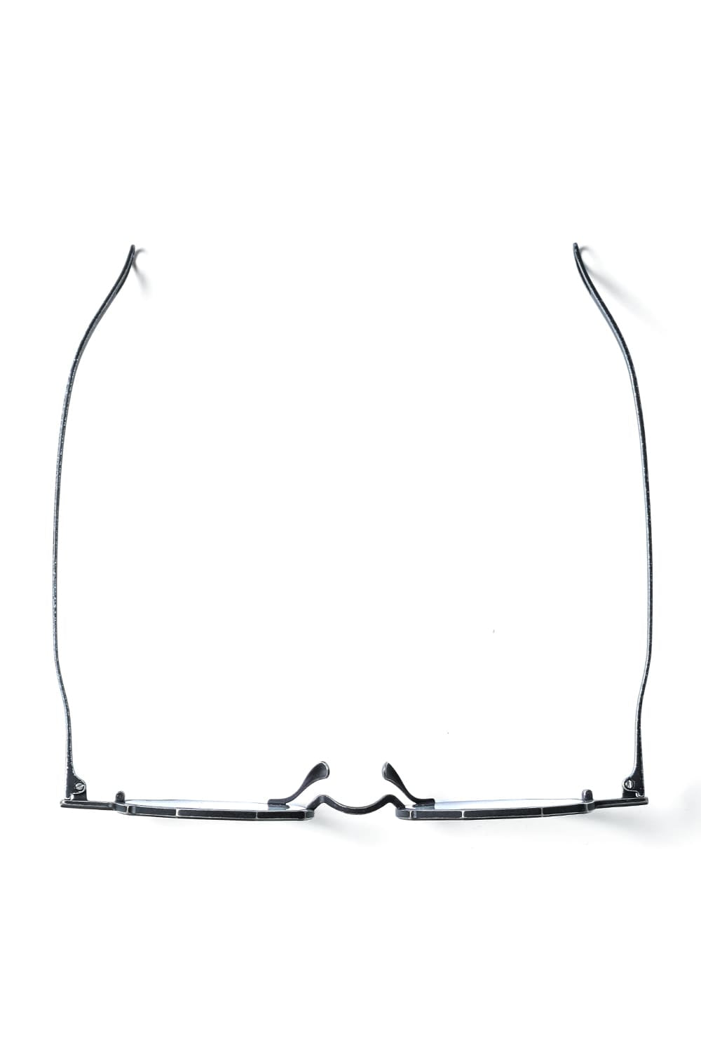 ステンレスのオクタゴンフレームが印象的なアイウェア。八角形の辺は全て直線ではなく規則性を持って少し湾曲しています。また、ブラックの塗装を施した後でエッジを研磨することでマテリアルを露出させています。それにより美しいテクスチャになりヴィンテージのような無骨な存在感を表現。使い込むことにより、ステンレス自体の輝きが徐々に現れていき、オンリーワンのアイウェアになっていくことでしょう。テンプルのパーツはアルミニウム製で軽い掛け心地です。羽根の様なノーズパッドは想像以上のフィット感があり日常的にご使用いただけます。他にレザーケースと保証書、クロスが付属しています。