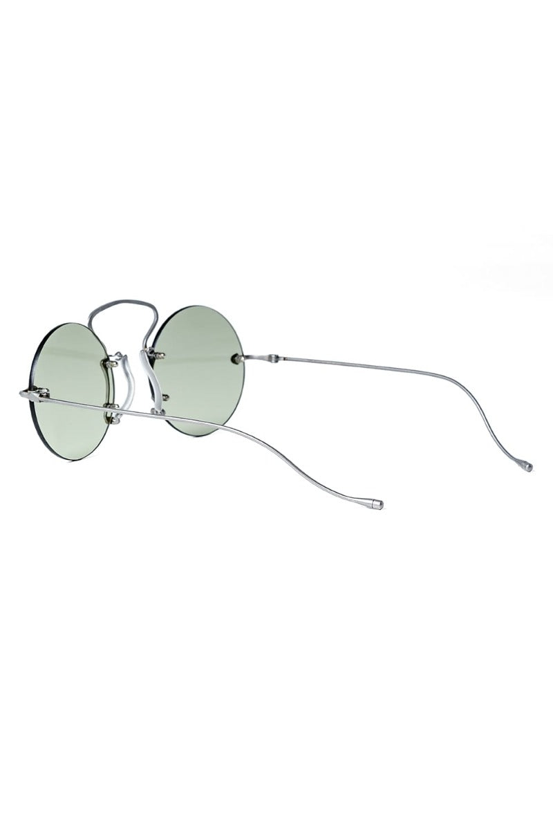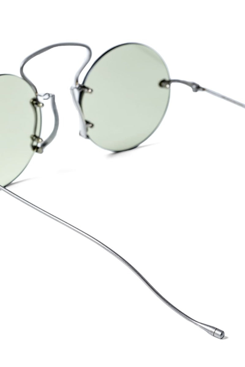 "PINCE-NEZ Round"と名付けられたこのモデルは、本来19世紀から20世紀初頭の欧米で流行したテンプルが取り払われ、鼻のみで固定するフィンチ型メガネを原型に、テンプルが取り付けられたリムレスデザインとなっています。