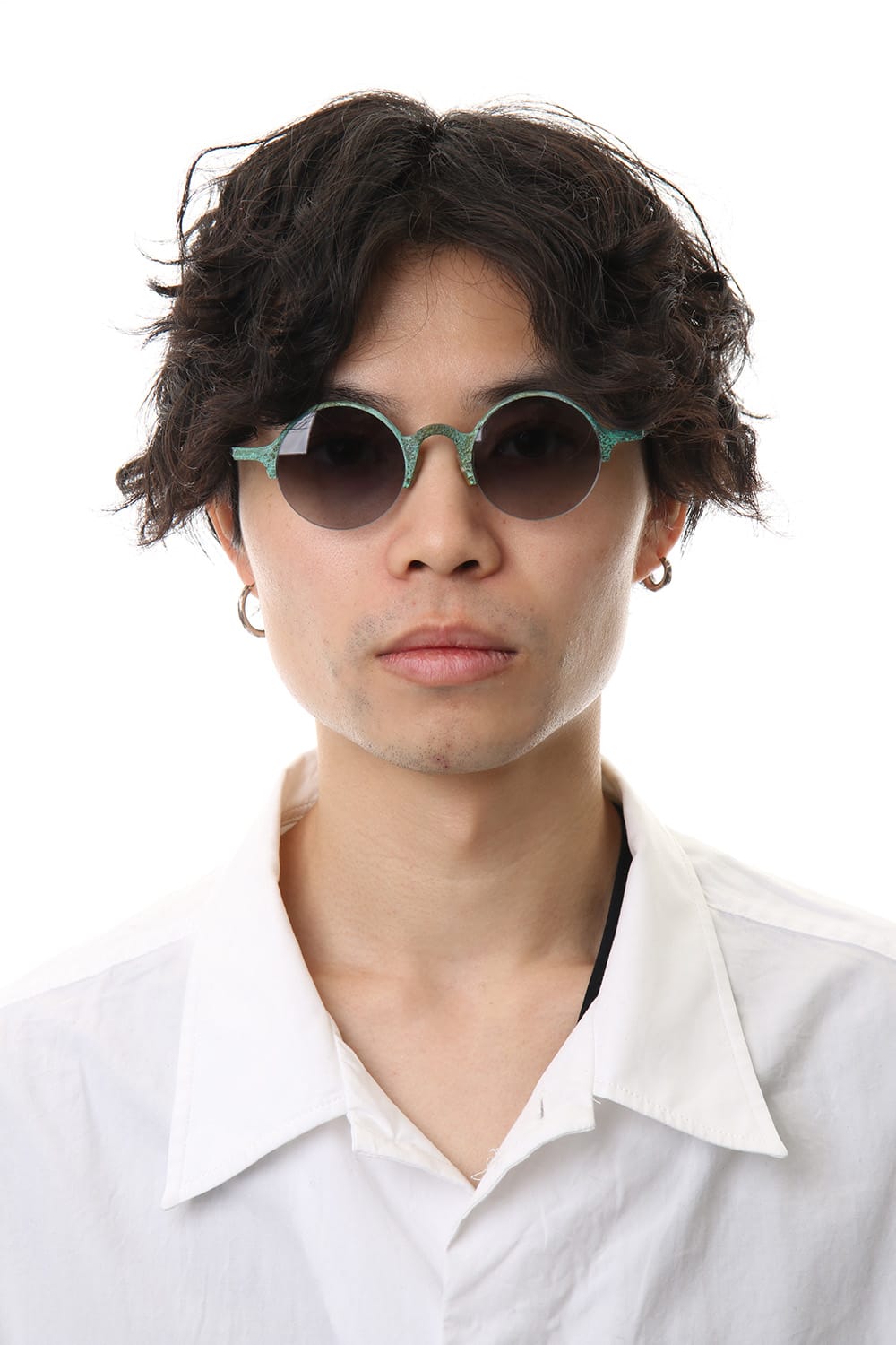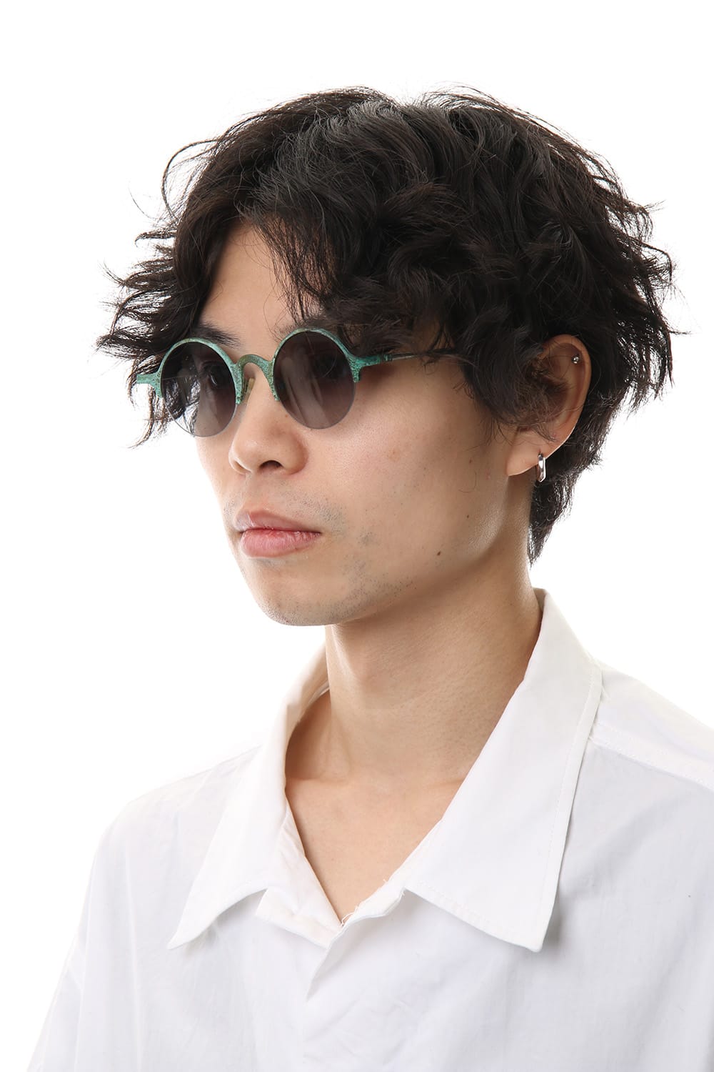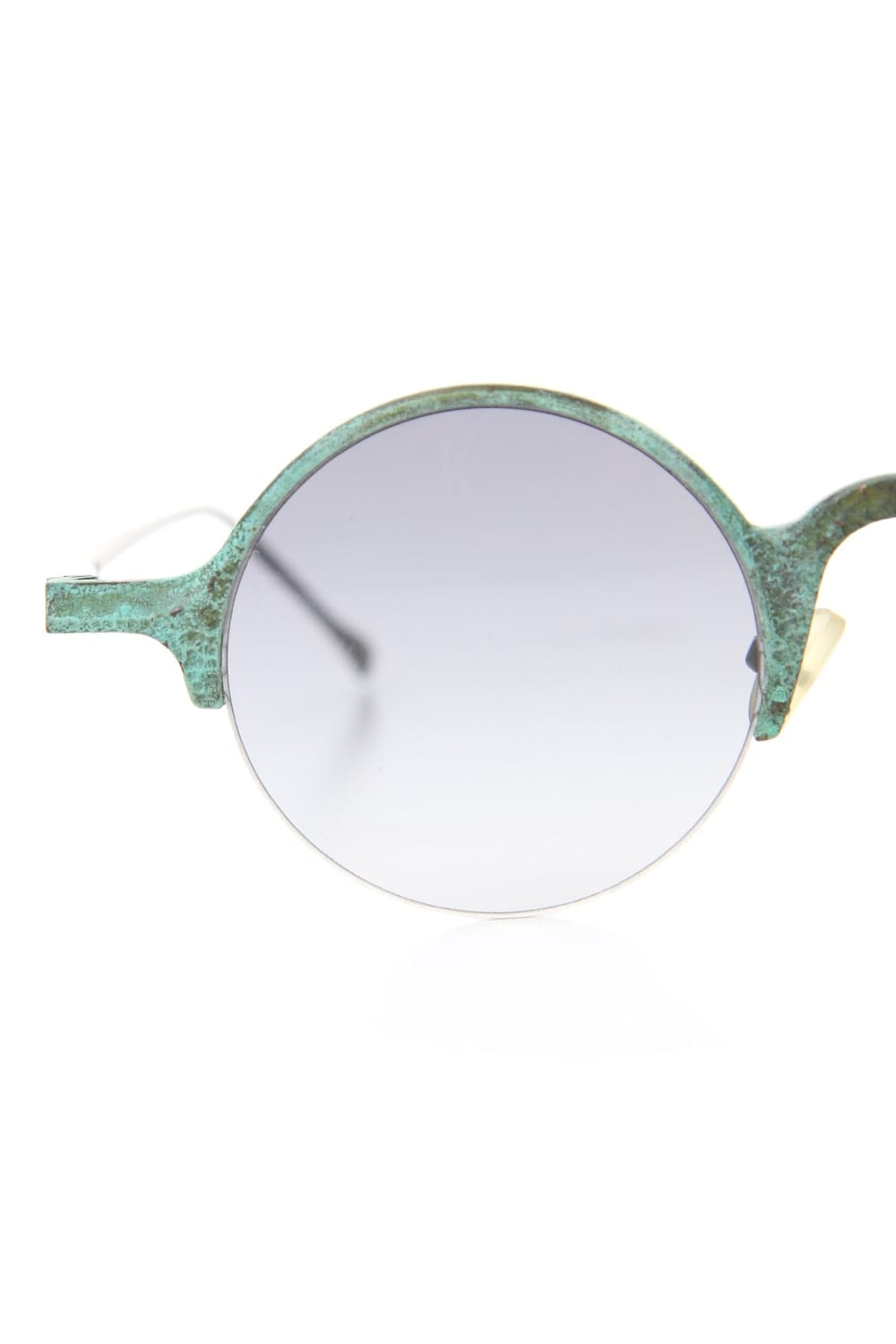 銅を使ったハーフリムフレーム、ラウンド型のアイウェア。