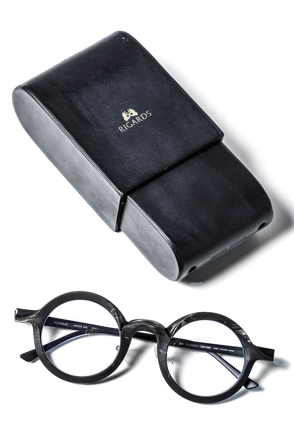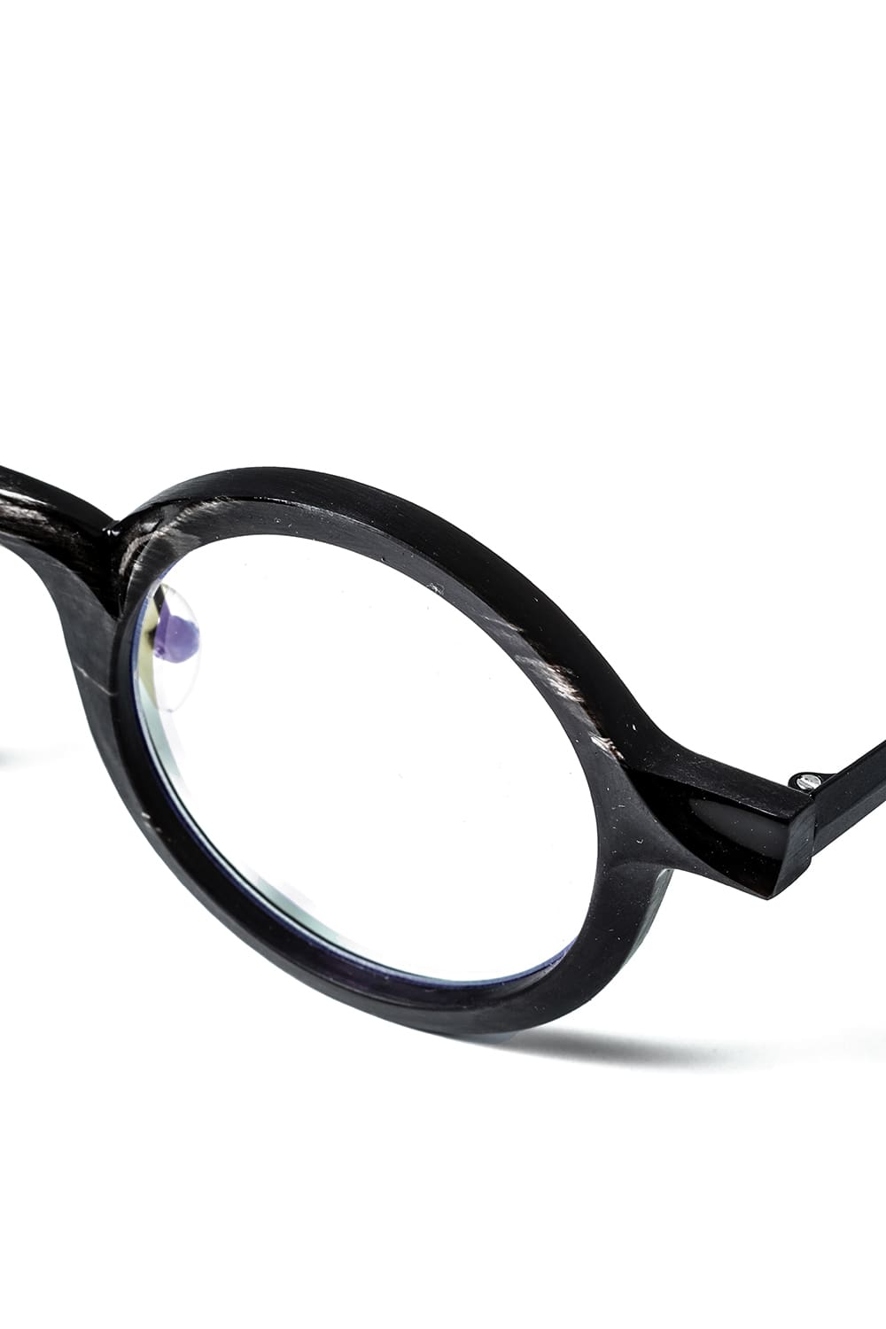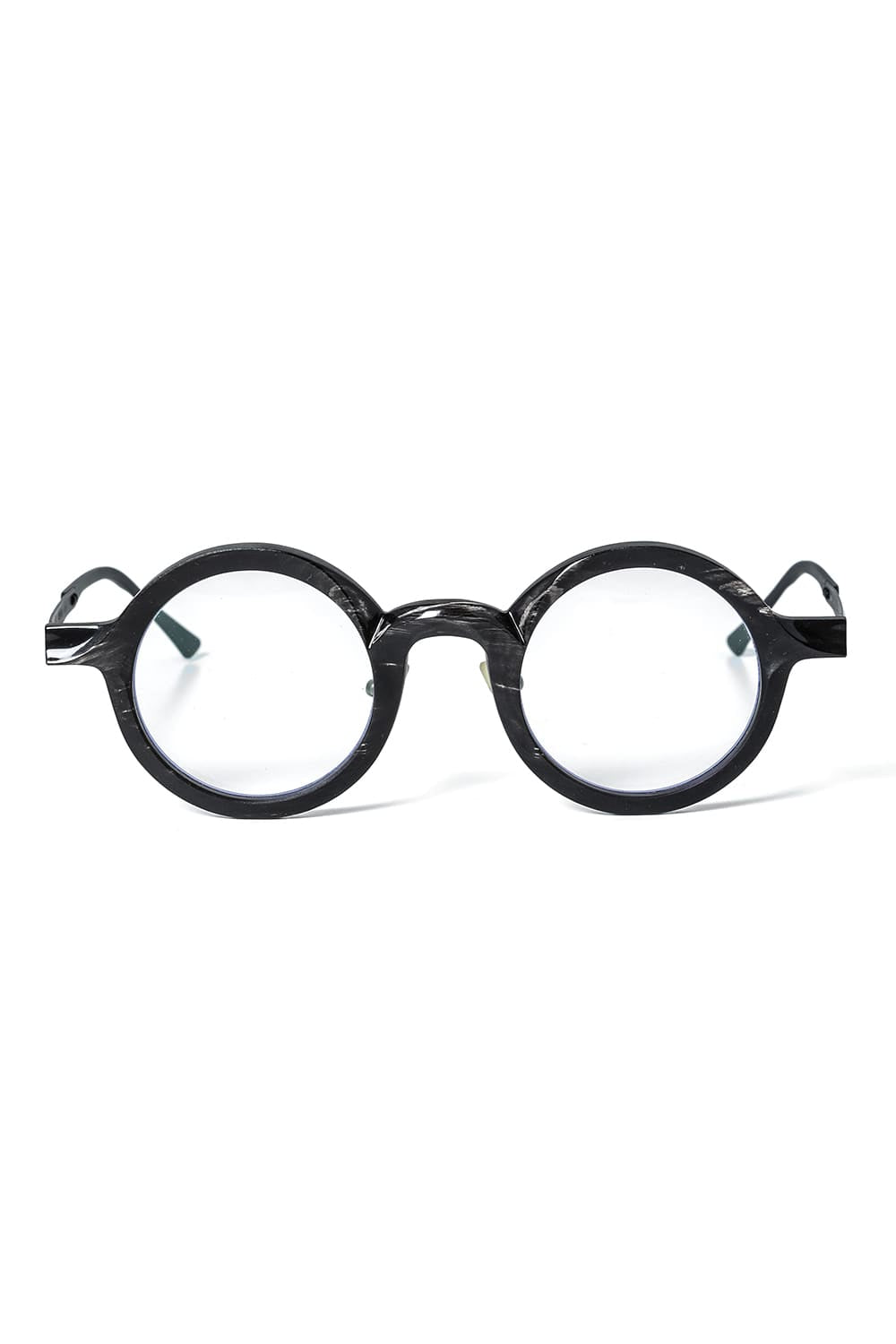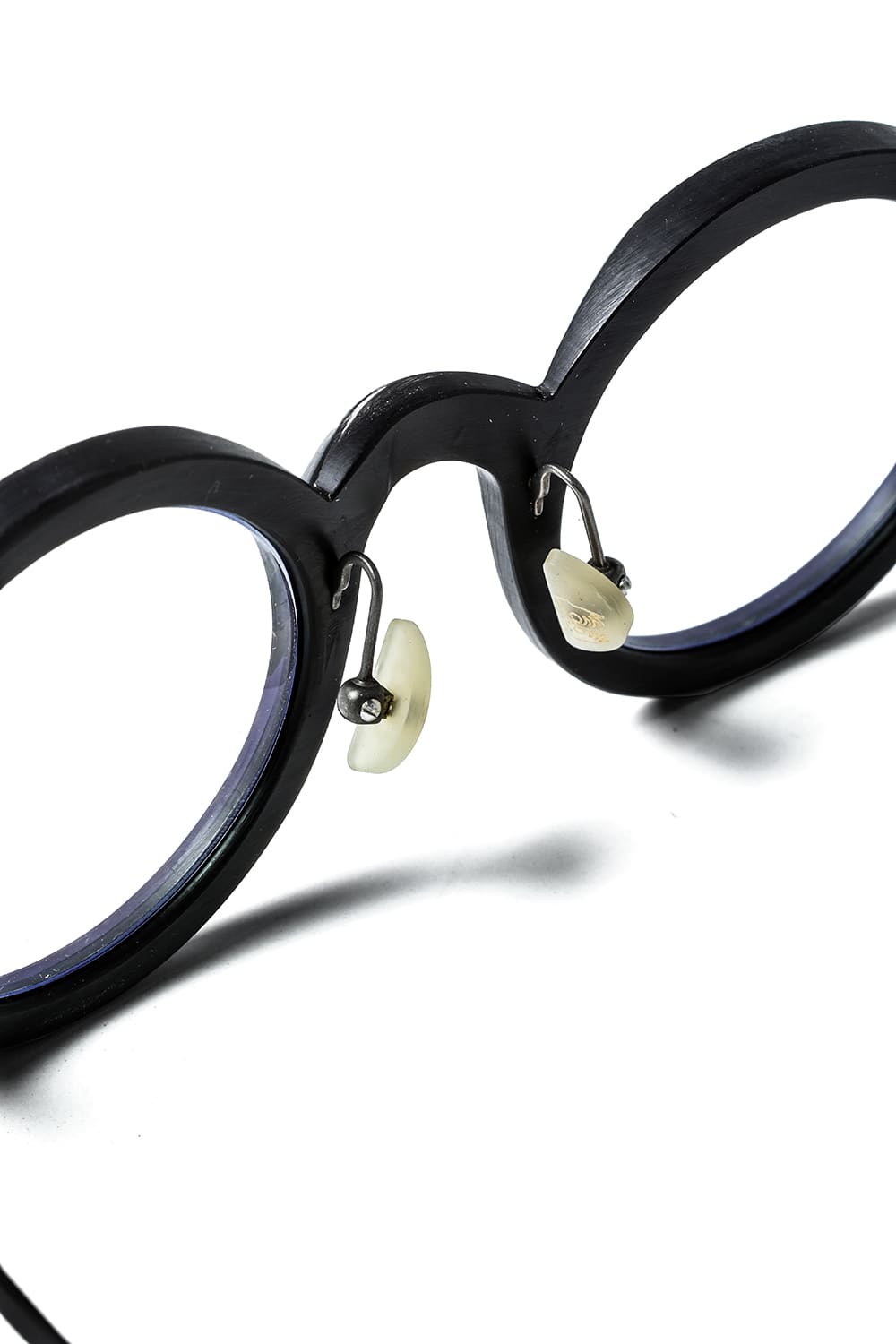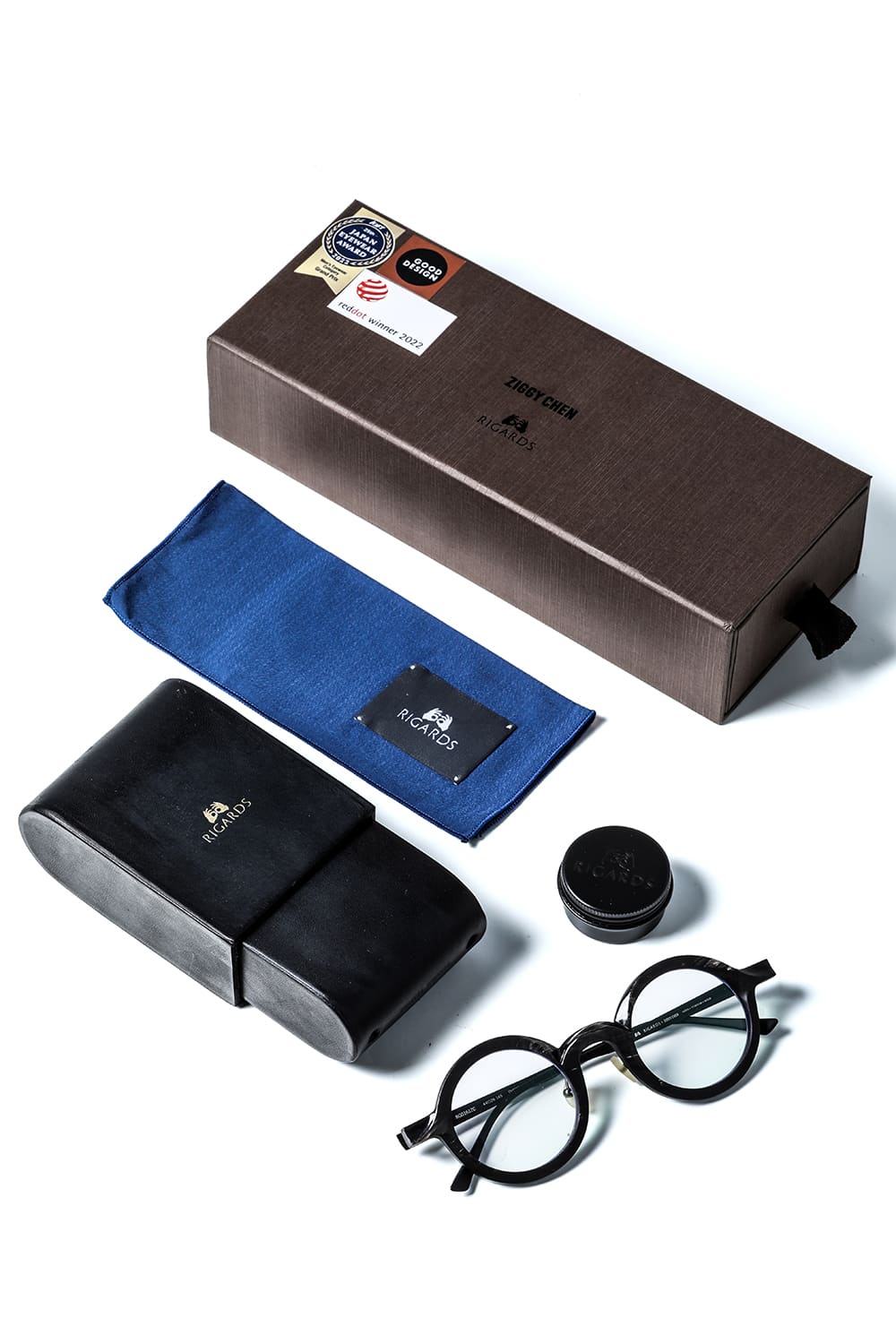 天然素材であるウォーターバッファローホーン(水牛の角)を使用したZIGGY CHENコラボレーションモデル。 フレーム上部は鏡面磨き、レンズに近い内側とノーズ付近はマット処理のコンビネーションになっております。フレームカラーのUni Black&Whiteはブラックベースにホワイトがランダムに差し込まれた複雑ながら落ち着きのある色味。二つとない天然のグラデーションは味わい深く、オンリーワンの満足感を得ることができます。メタルパーツもブラックで纏められており非常に大人な印象。テンプルはホローバック構造が採用されており、軽量なチタン製ですので掛け心地も軽快です。テンプルエンドは高級家具の端材が使用されたサスティナブルなウッド仕様。ホーンフレームは徐々に水分が抜けて乾燥してくるため、付属しているブランドオリジナルのオイルクリームを塗り込んでいただくと、ホーンにオイルが浸透し、乾燥を防いでくれます。 他にもスペシャルダッチャブルレザーケースや保証書が付属しています。