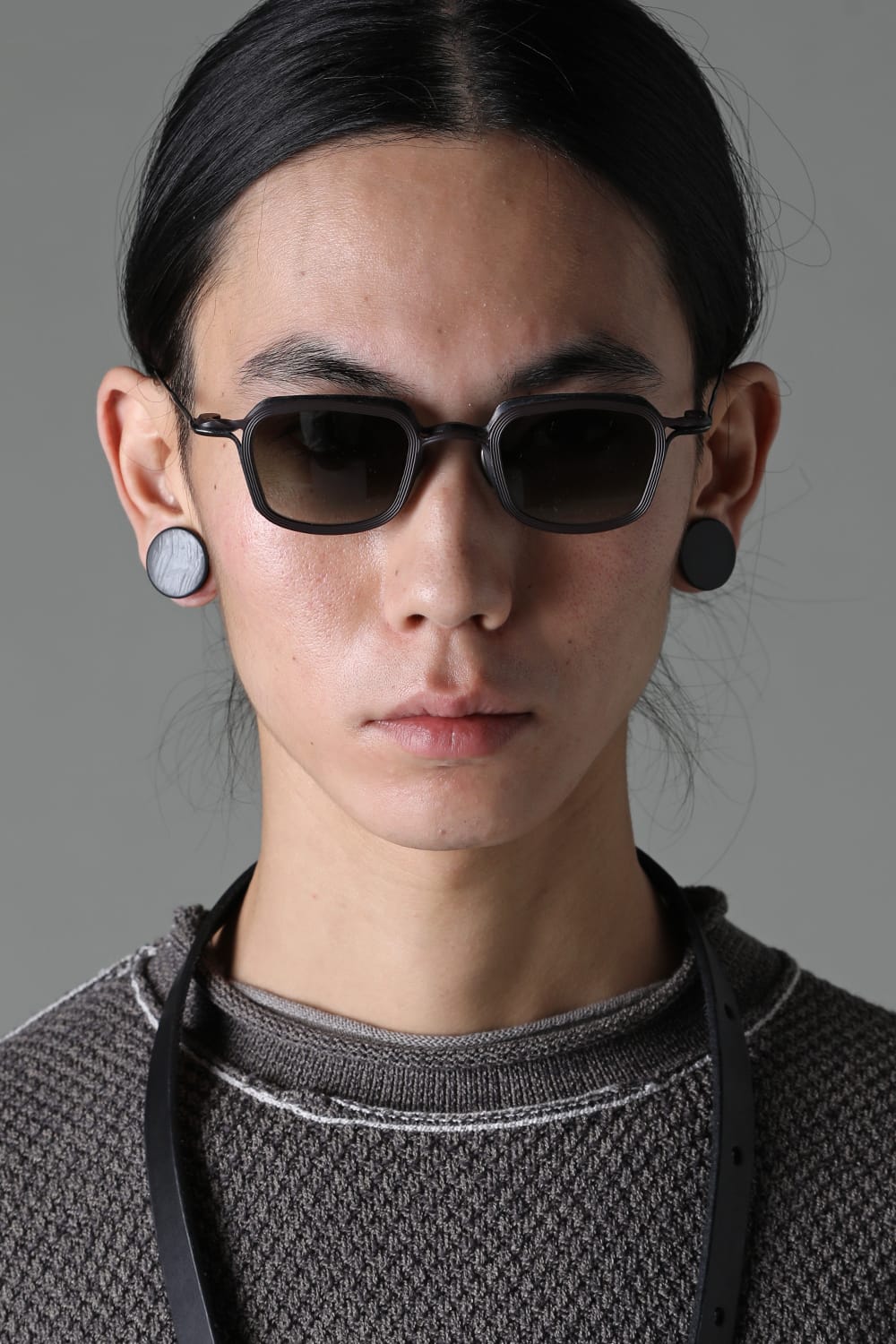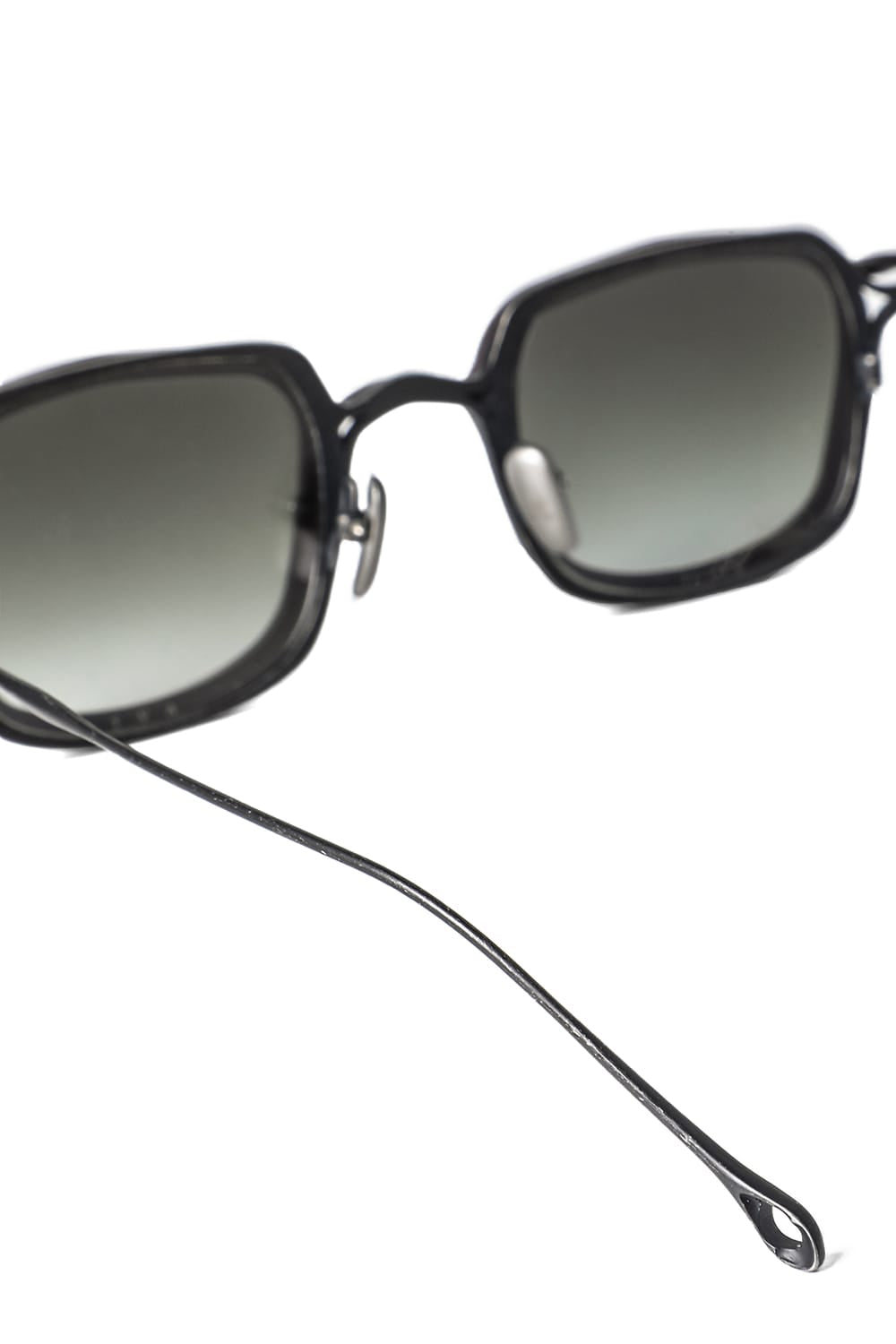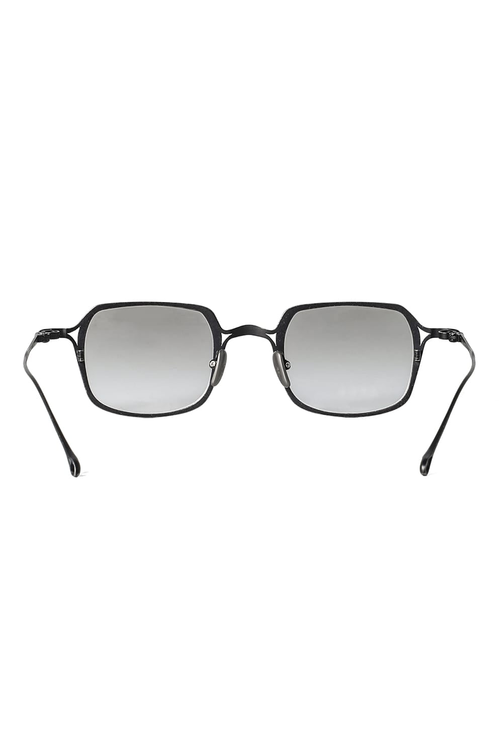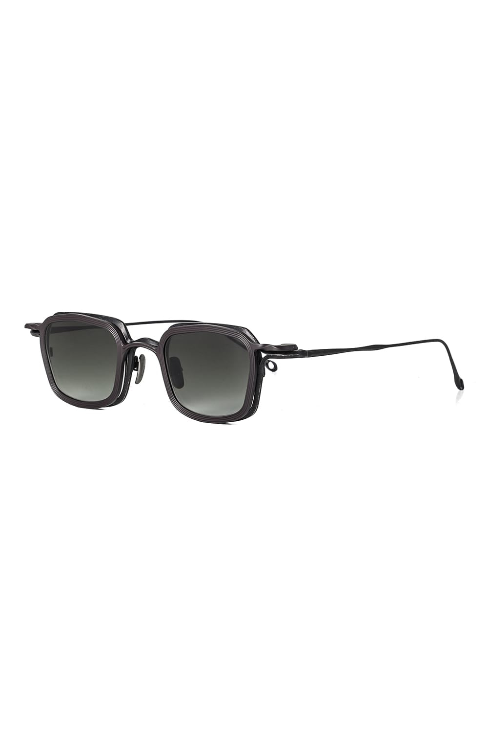 フレームはブラックのライトグレーレンズ、素材はチタニウム。クリップはダークブラウンのダークグレーレンズ、素材はアルミニウムを用いて制作。