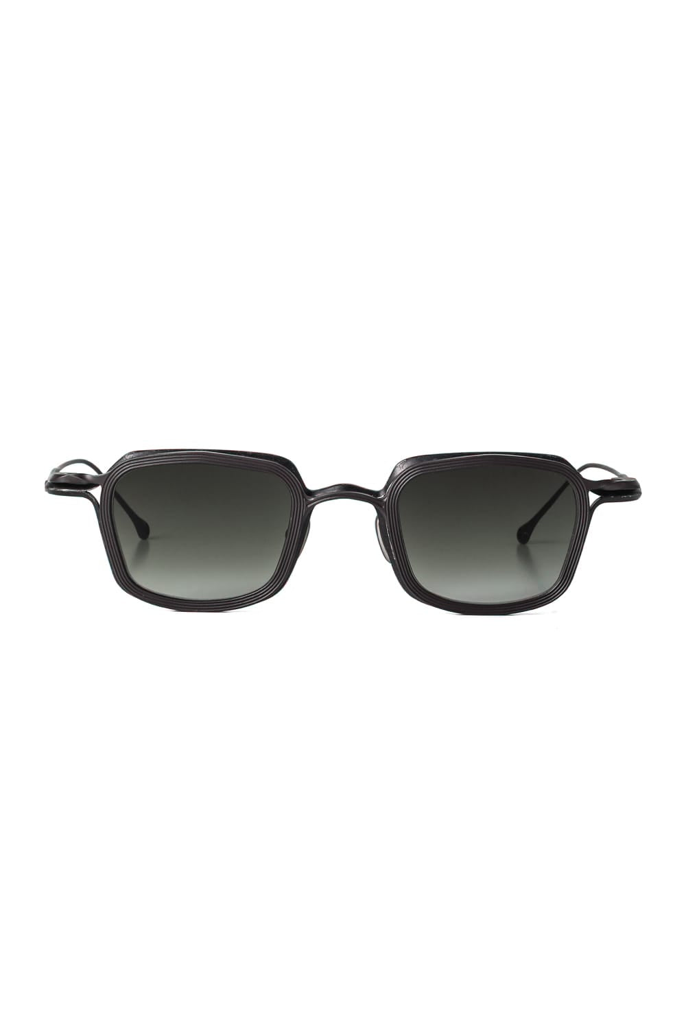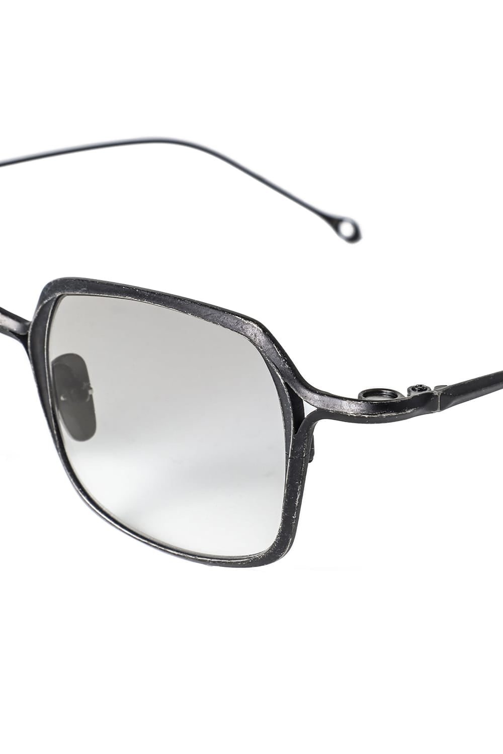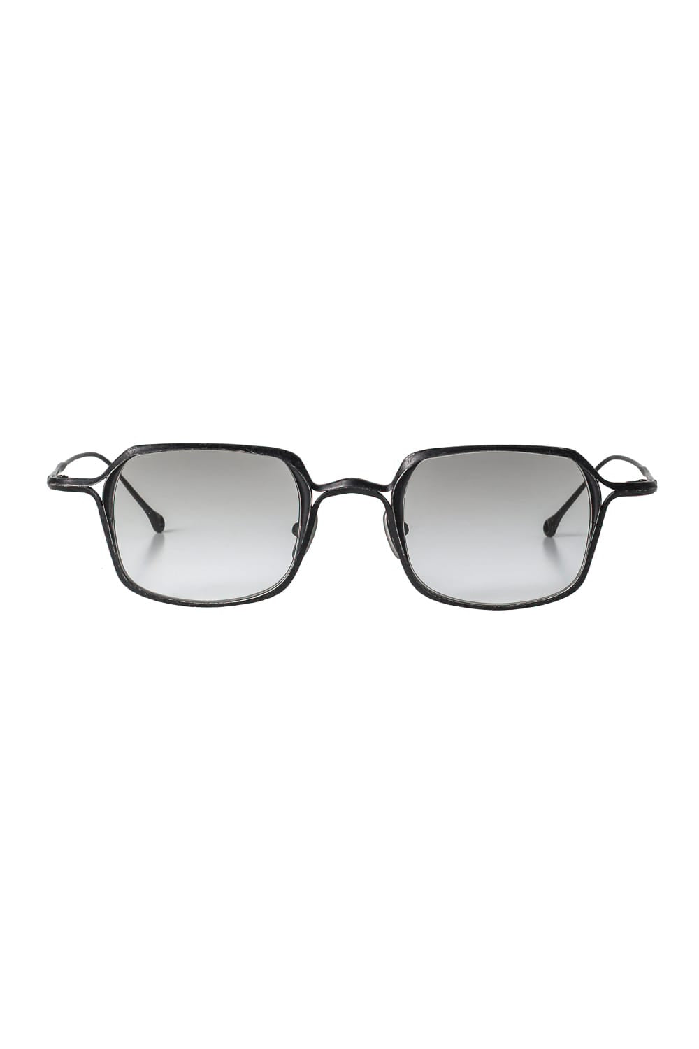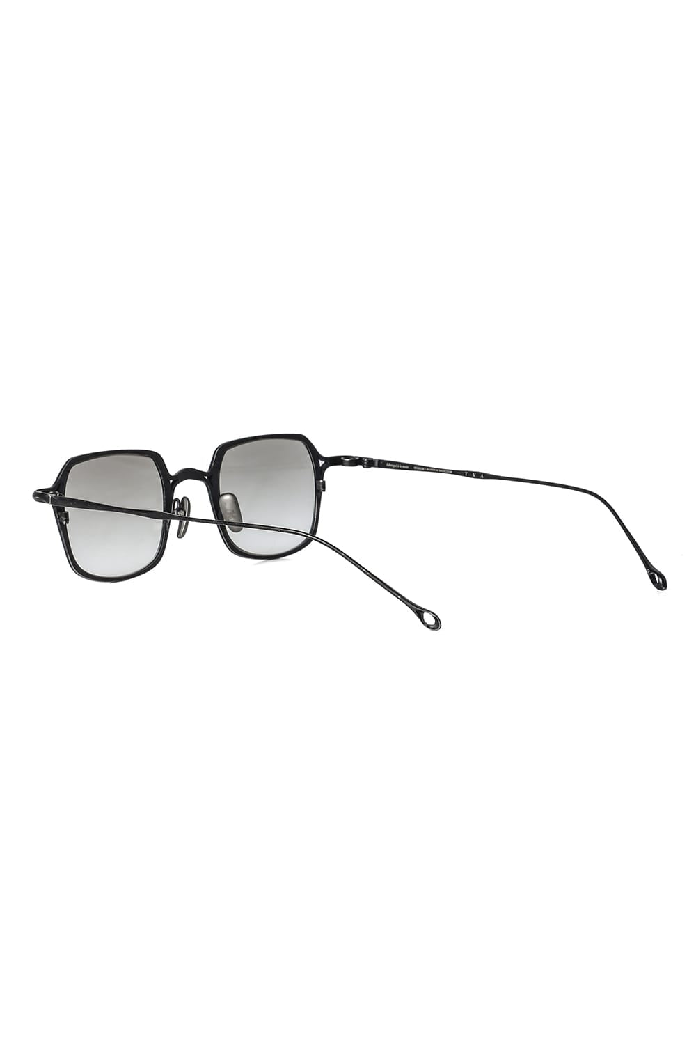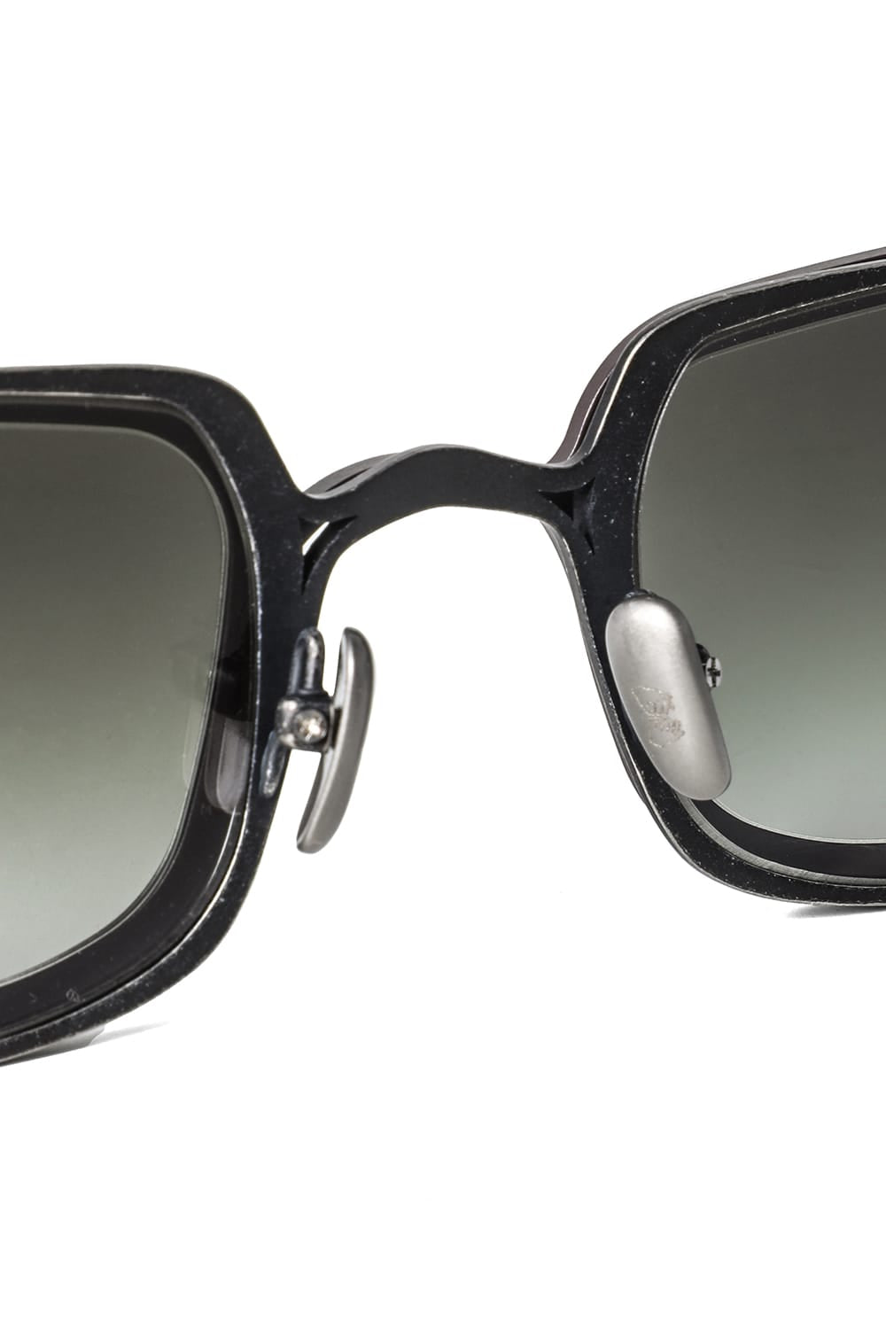 フレームはブラックのライトグレーレンズ、素材はチタニウム。クリップはダークブラウンのダークグレーレンズ、素材はアルミニウムを用いて制作。
