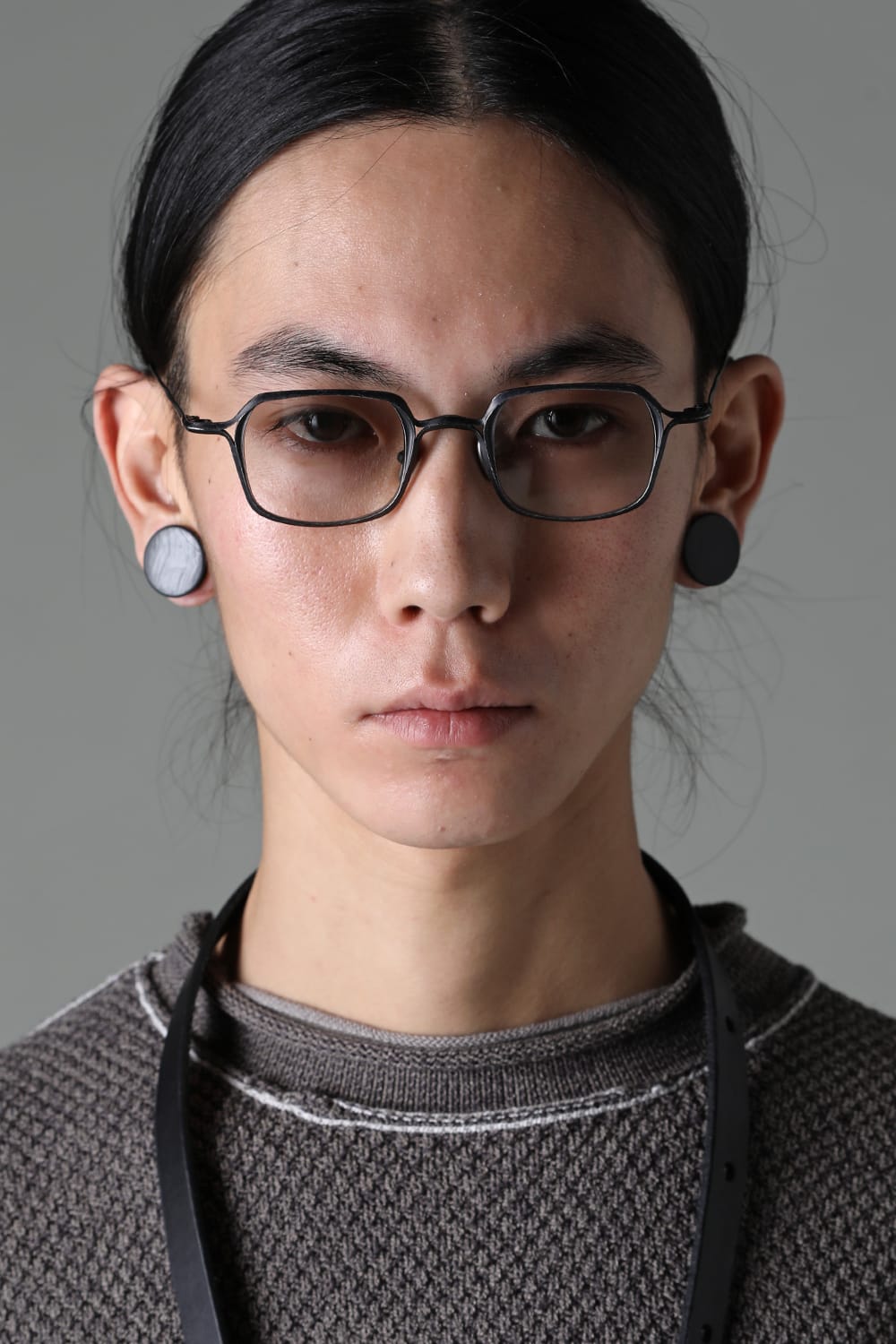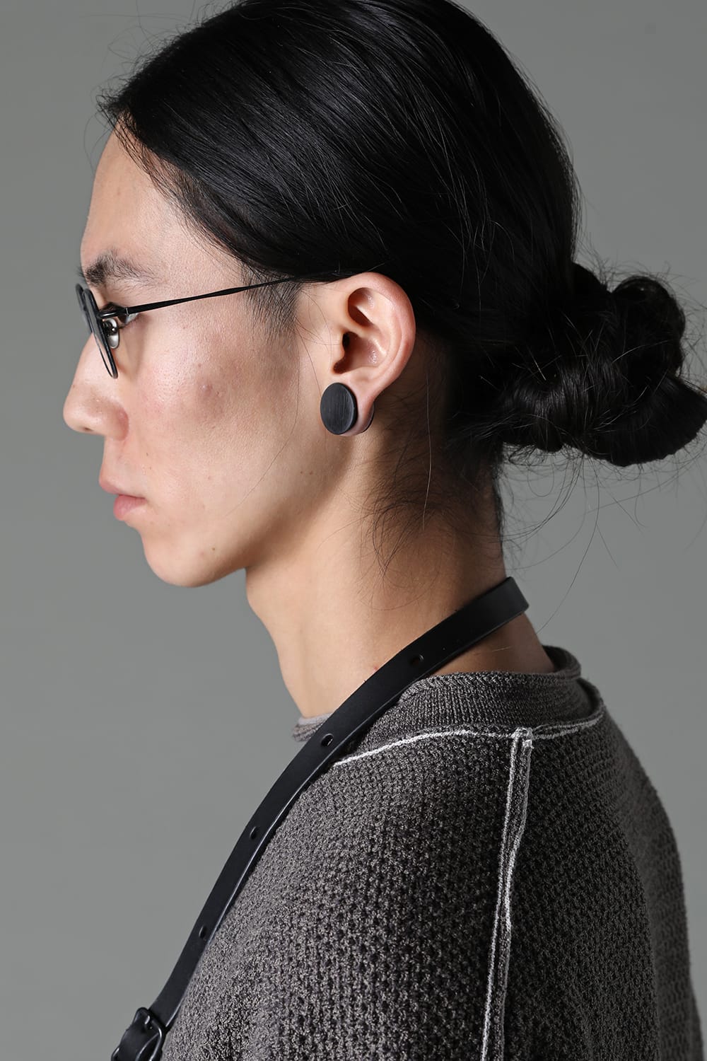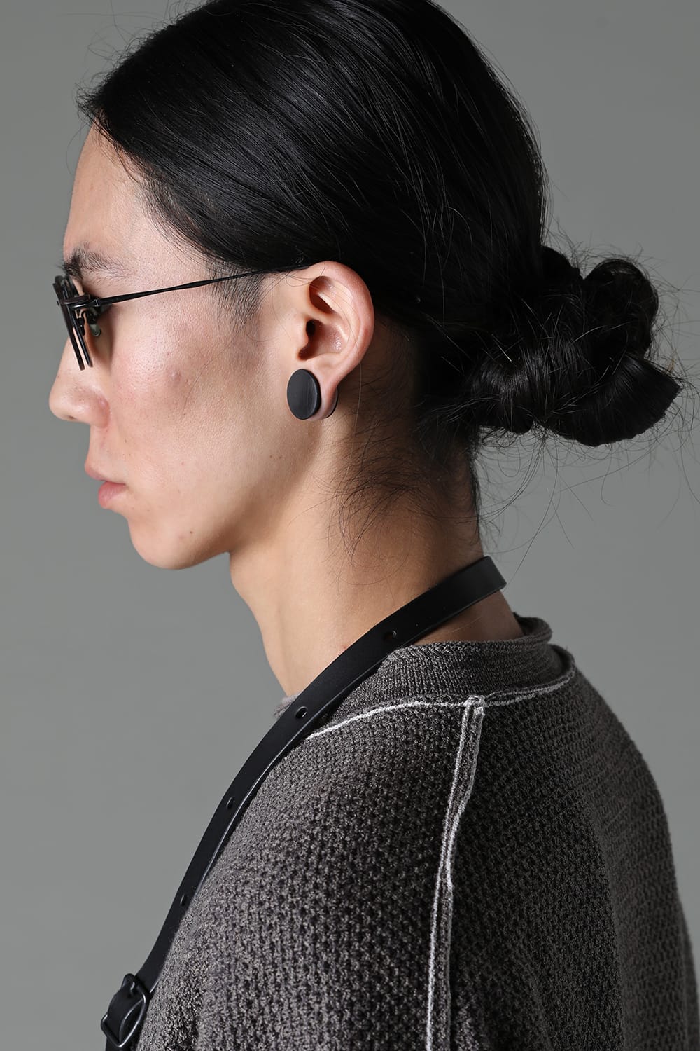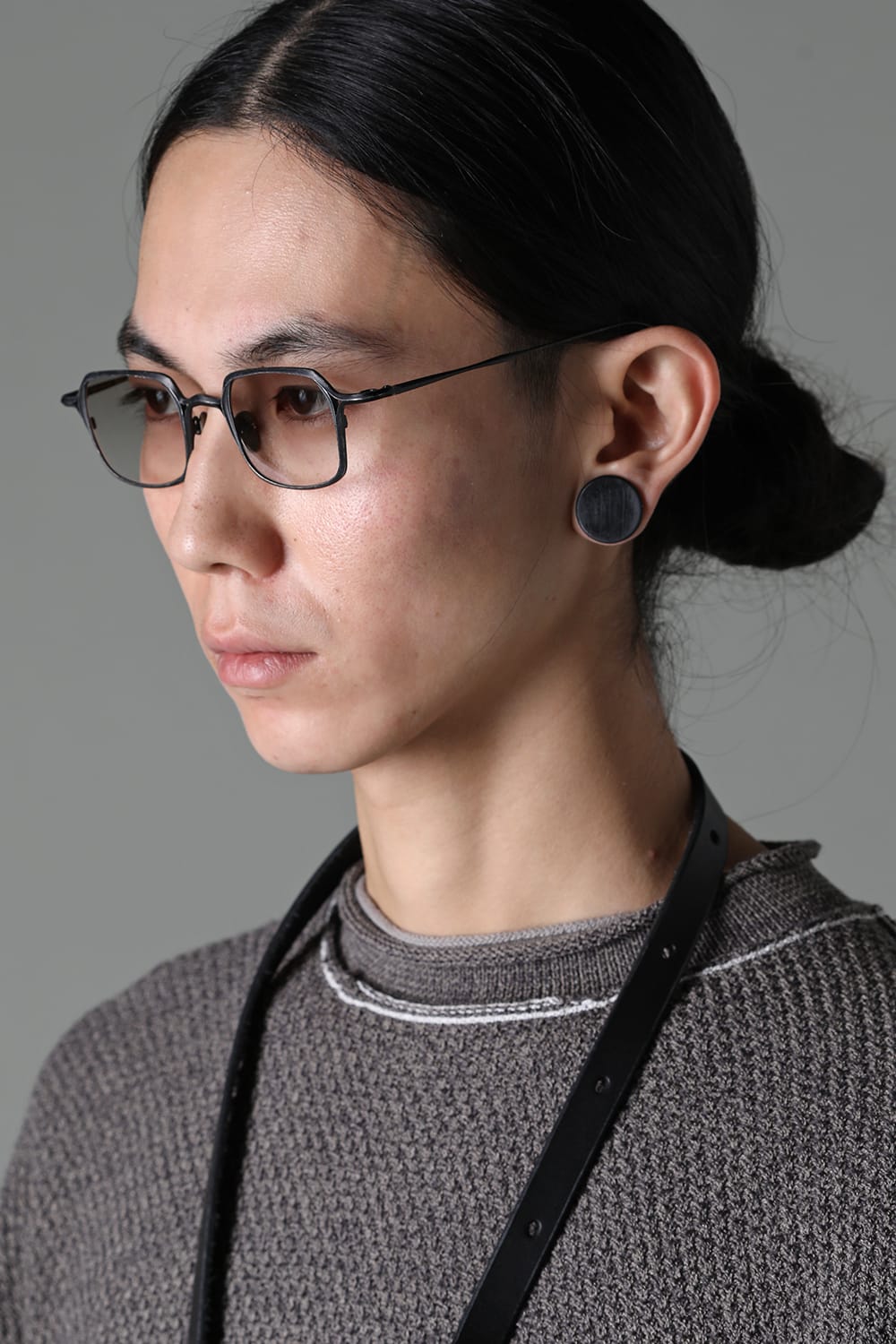 フレームはブラックのライトグレーレンズ、素材はチタニウム。クリップはダークブラウンのダークグレーレンズ、素材はアルミニウムを用いて制作。
