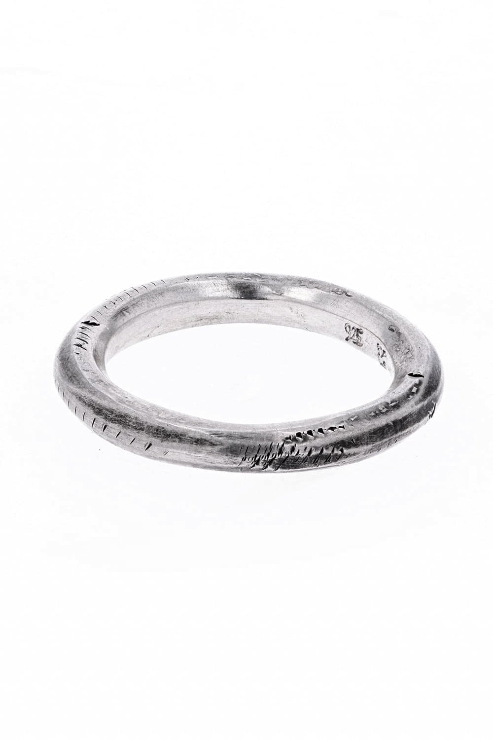 甲丸をベースとした同ブランドでも最もシンプルなディテールで製作されたリングです。 20-21AWシーズンより新たに展開されたXXSサイズも展開されており、シンプルな分ピンキーリングとしての着用もオススメの一品です。