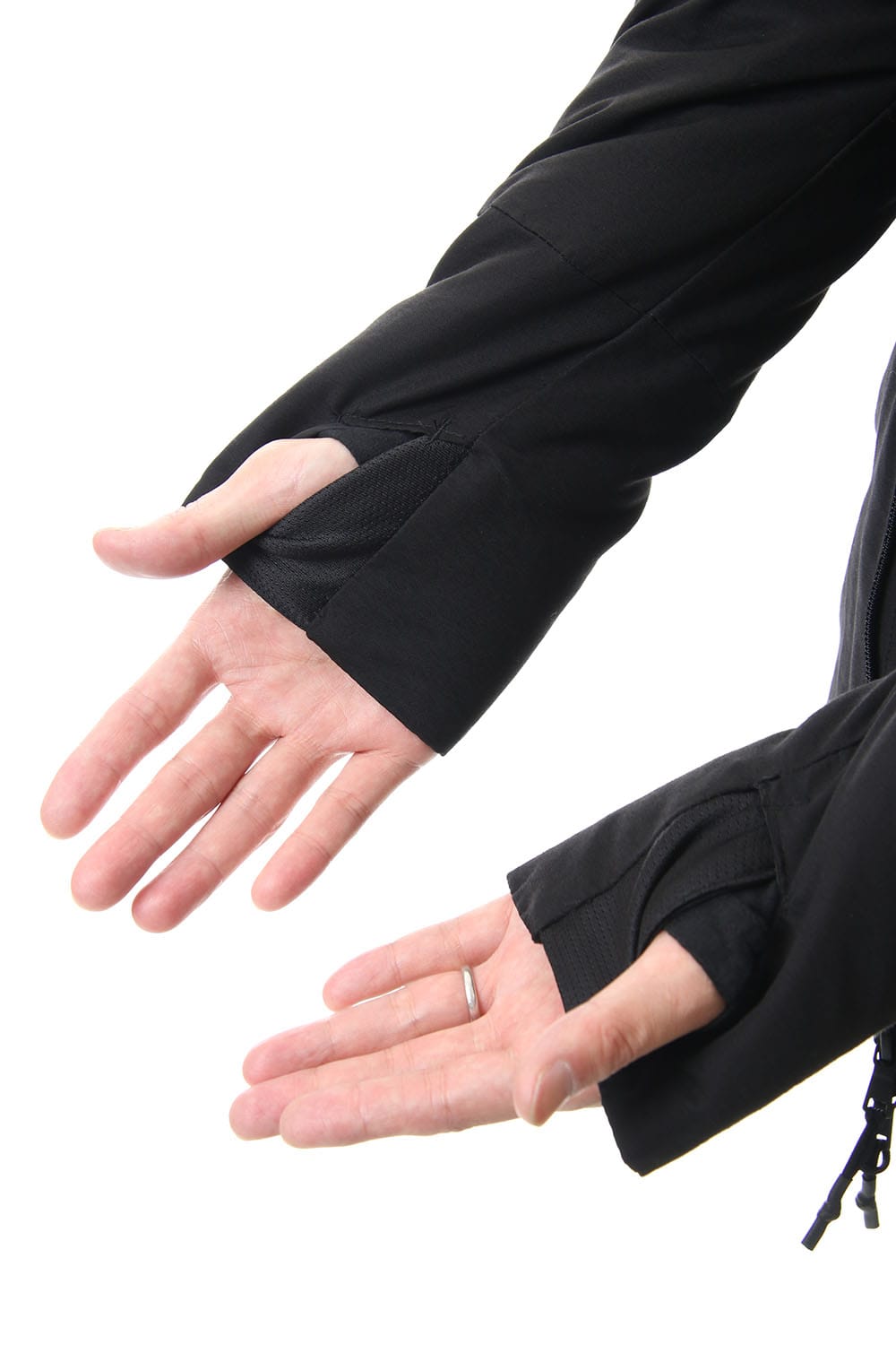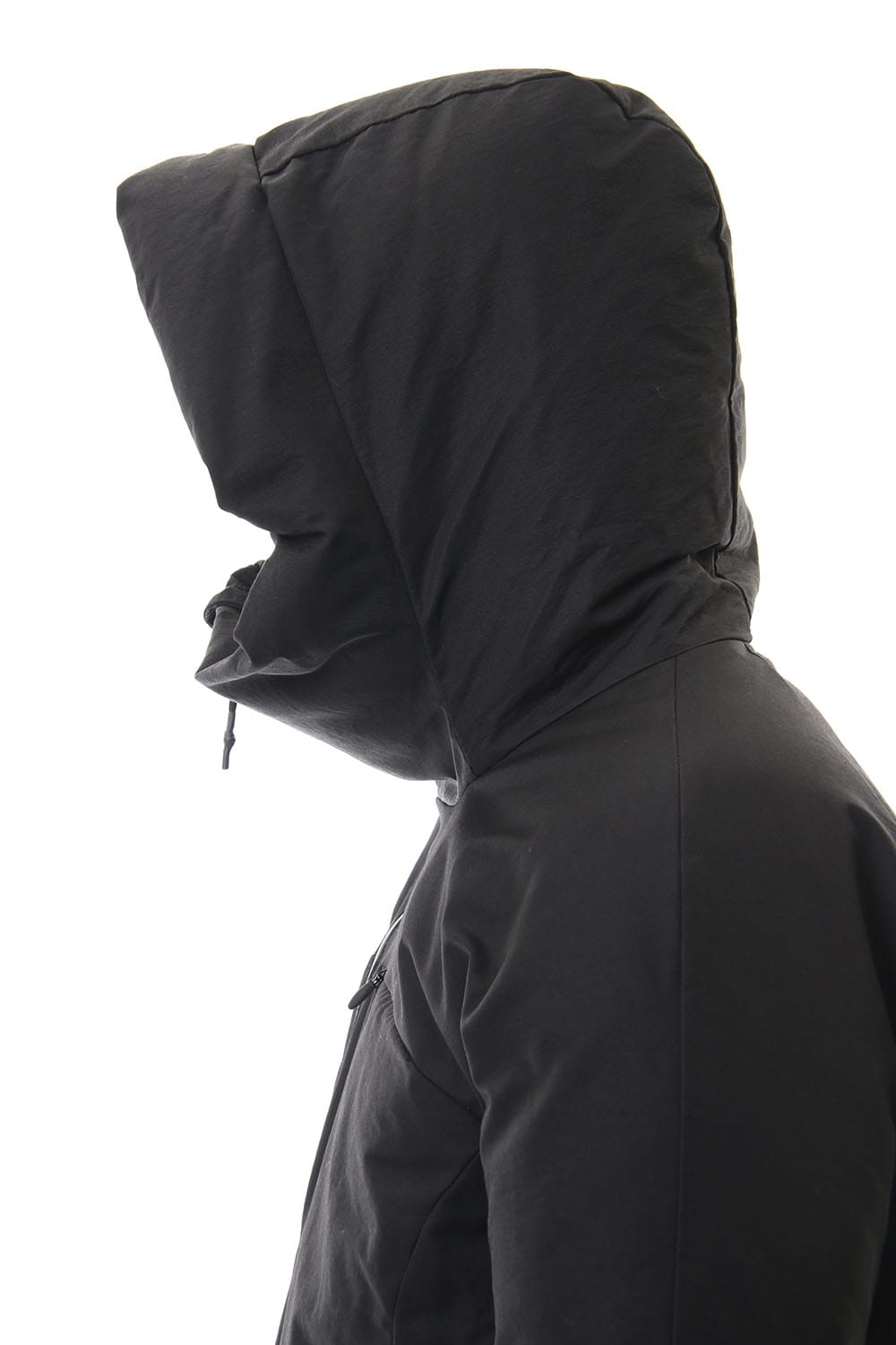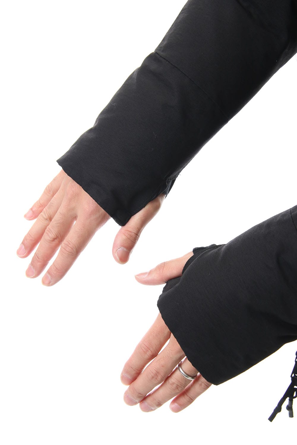 止水カーブファスナーでサムホールも装備したダウンジャケット。グログラン組織のコットンナイロンで、しっかりとした手ごたえと、強い横畝が特徴。裏地も50デニールの裏シレー加工で撥水機能付き。4層構造ダウンでダウン量150g。