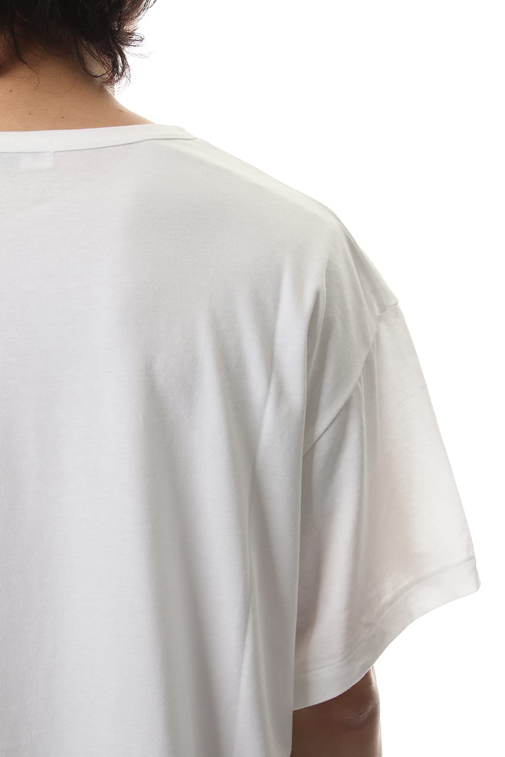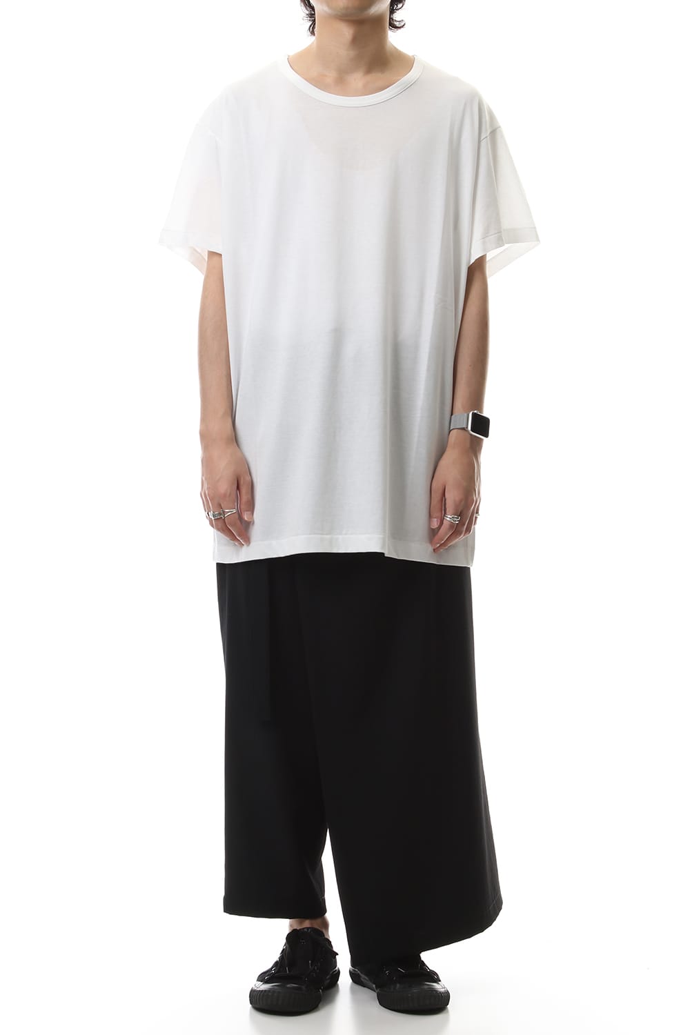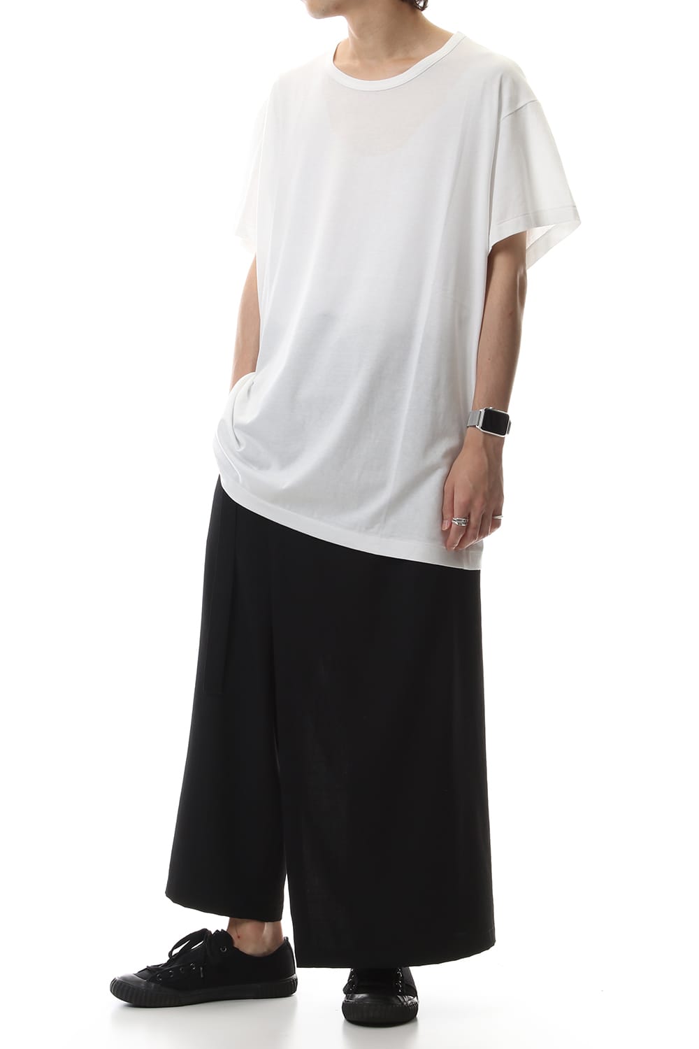 適度な張りと綺麗な目面が特徴のヨウジヤマモト定番のショートスリーブTシャツ。裾の幅が広く、分量の大きいYohji Yamamotoのパンツのシルエットを崩さず着用できるため、同ブランドのウェアを着用するのであれば一着は持っておきたいアイテムです。