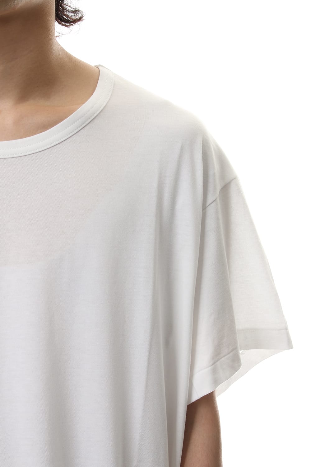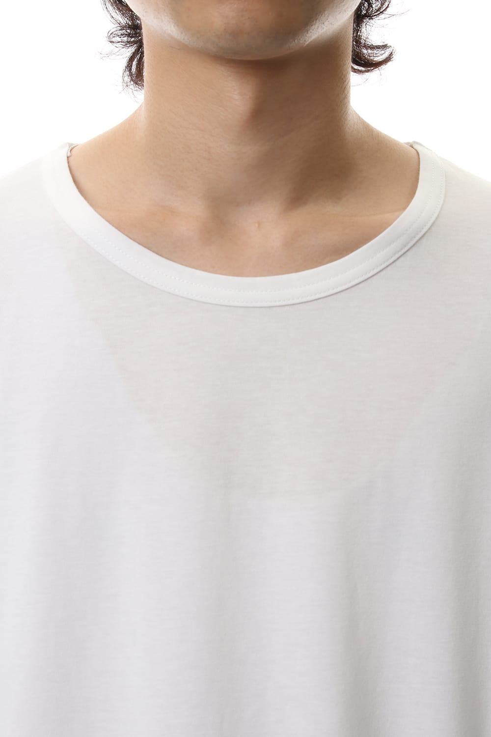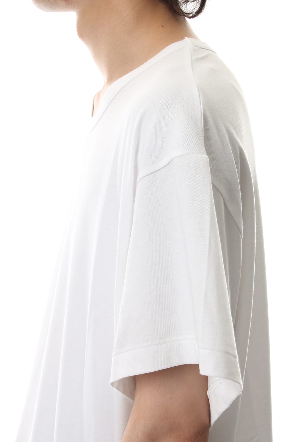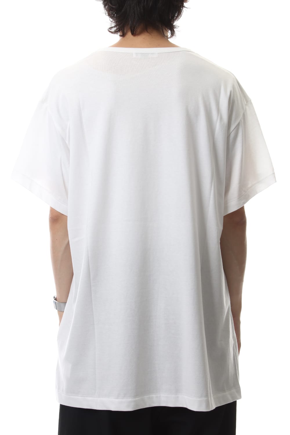 適度な張りと綺麗な目面が特徴のヨウジヤマモト定番のショートスリーブTシャツ。裾の幅が広く、分量の大きいYohji Yamamotoのパンツのシルエットを崩さず着用できるため、同ブランドのウェアを着用するのであれば一着は持っておきたいアイテムです。