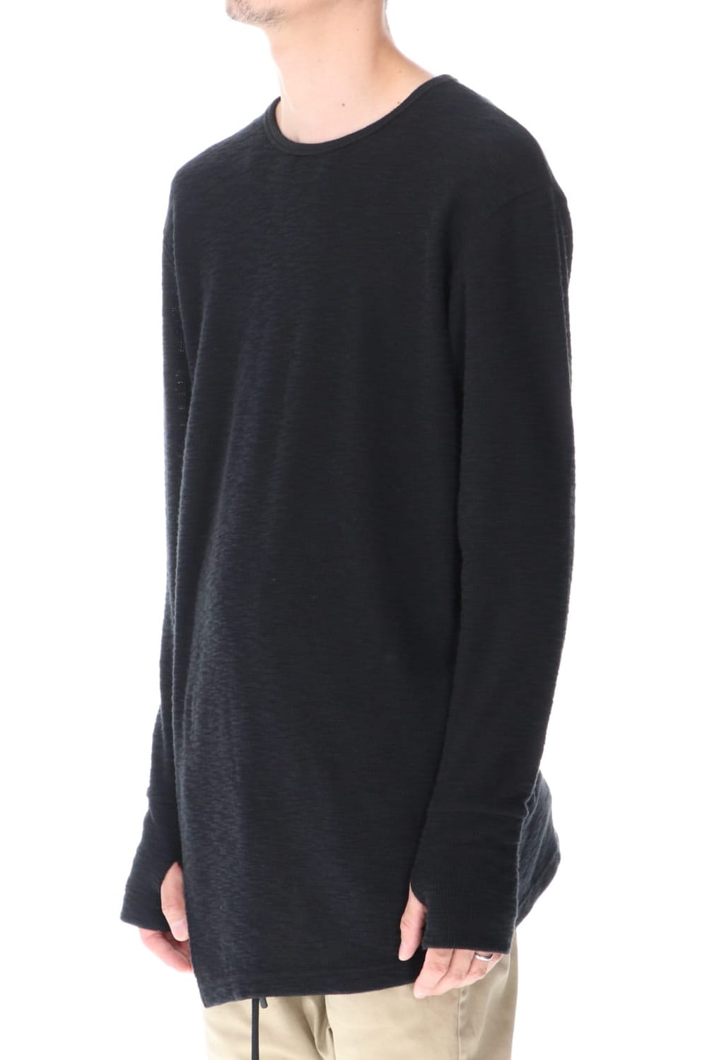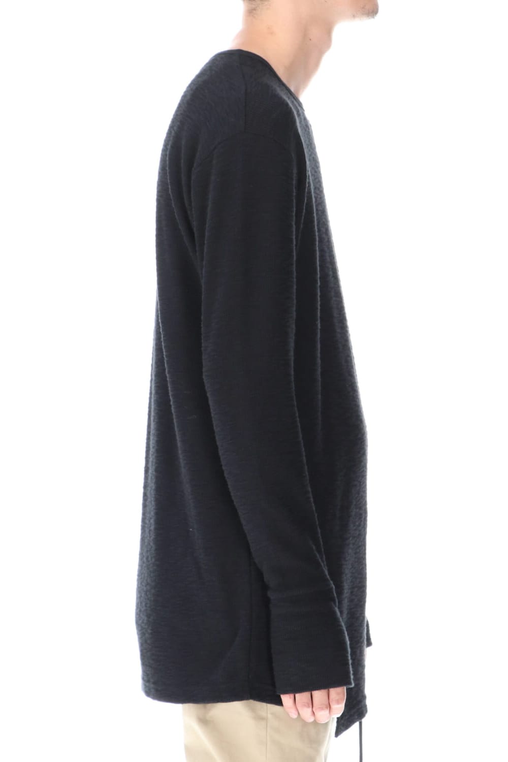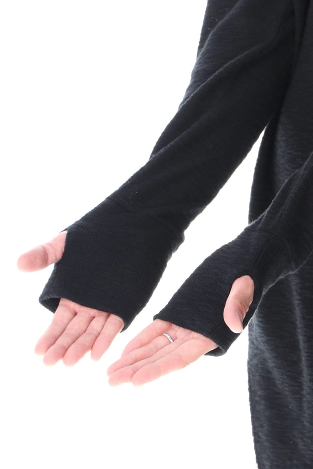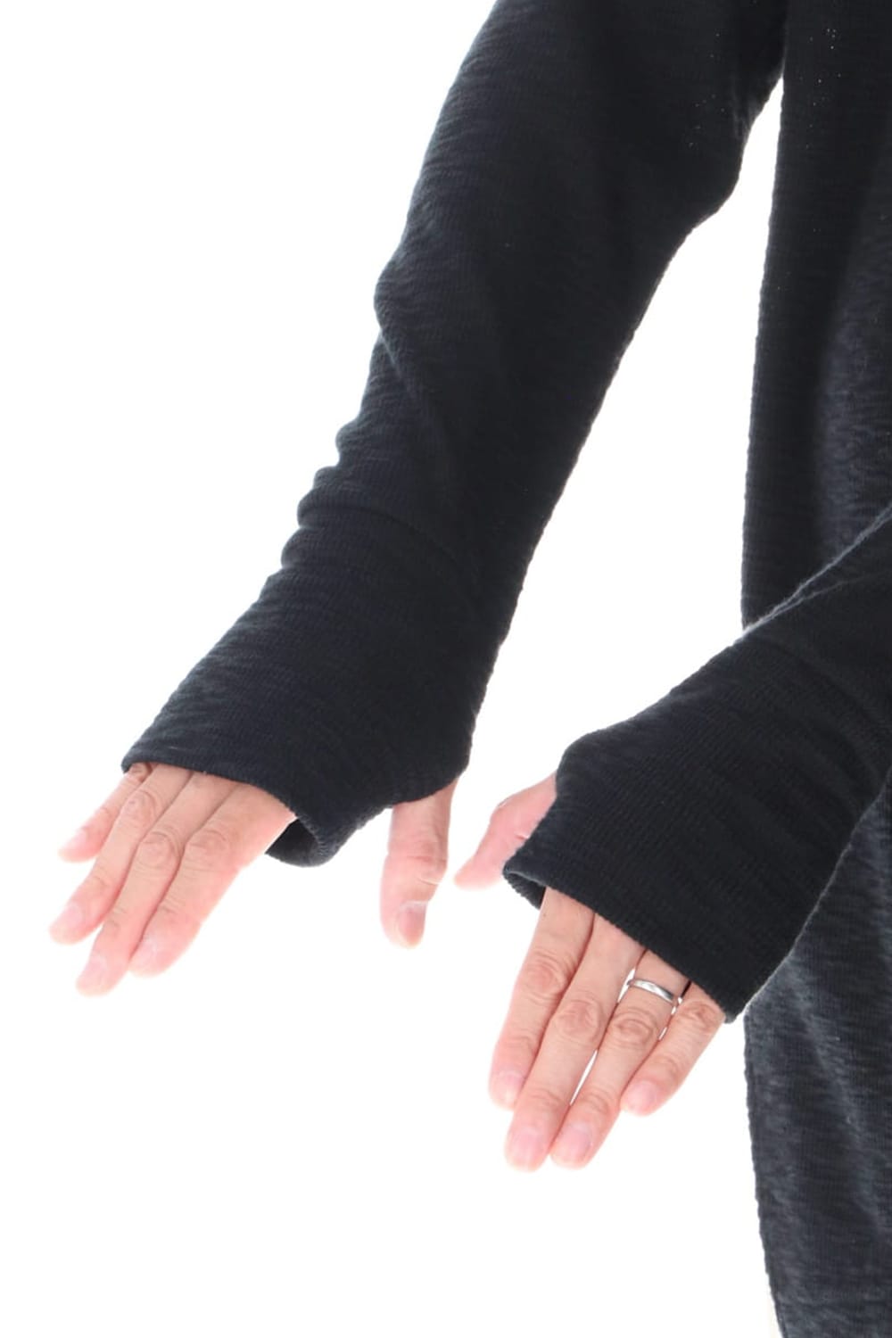 糸染めをしたスラブ糸と、染無しのスラブ糸を編立てた後に、オーバーダイを施すことで絶妙なムラ感と独特な風合いな表情を持つ素材です。