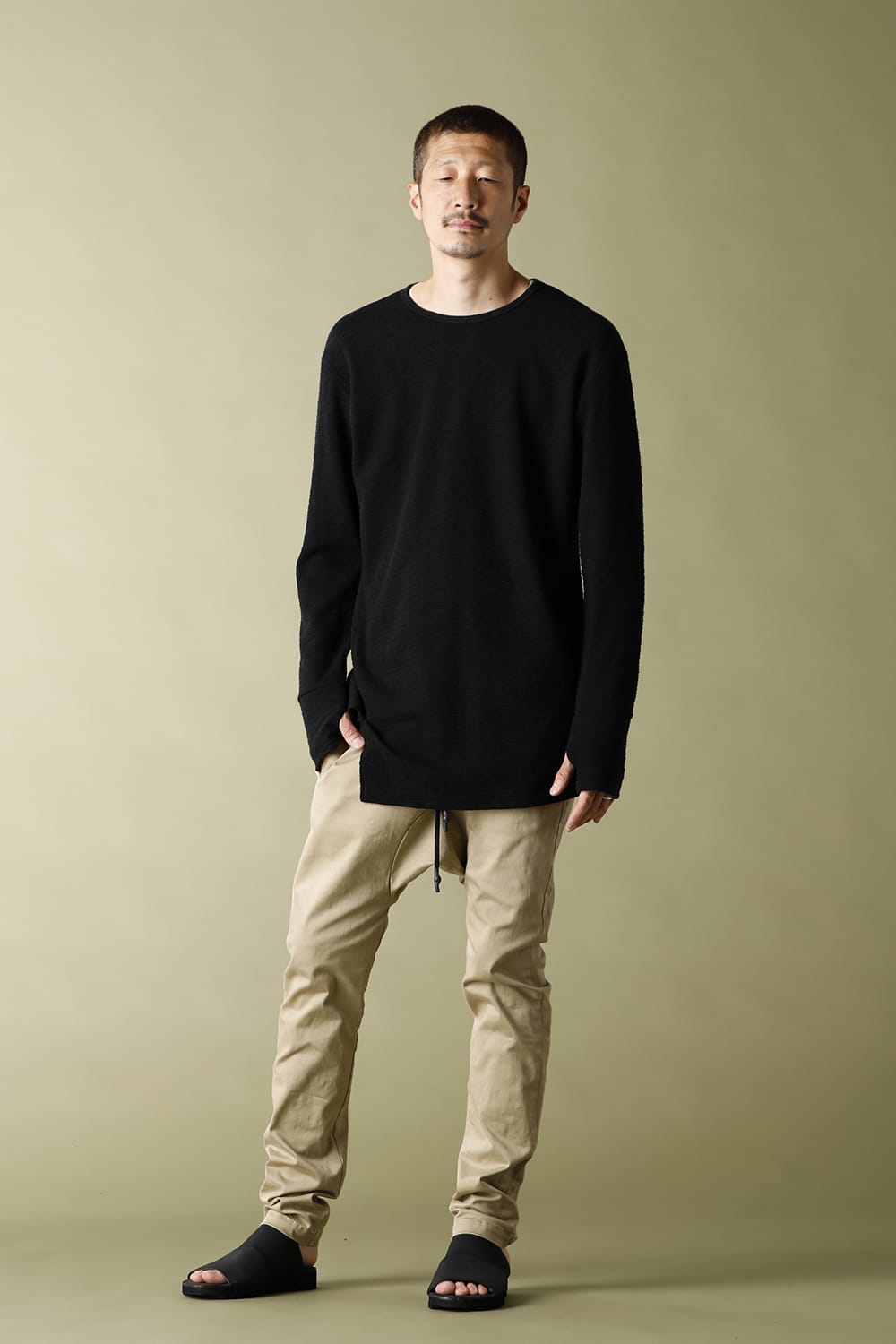 アシンメトリーなデザインで左サイドにポケットを装備した、新型のロングスラブジャージ。