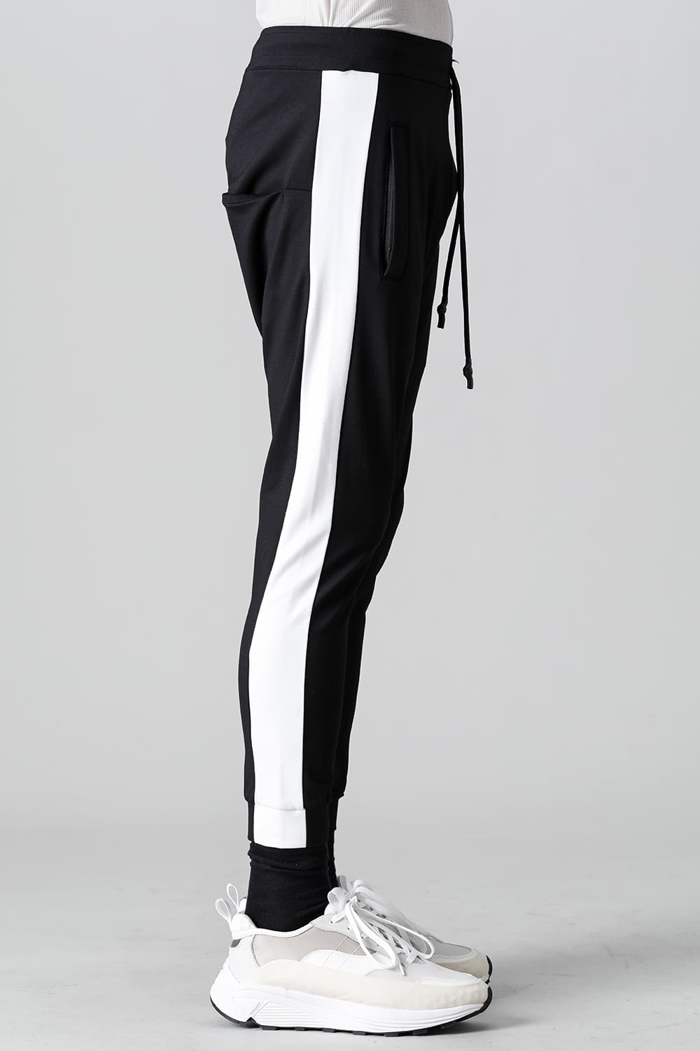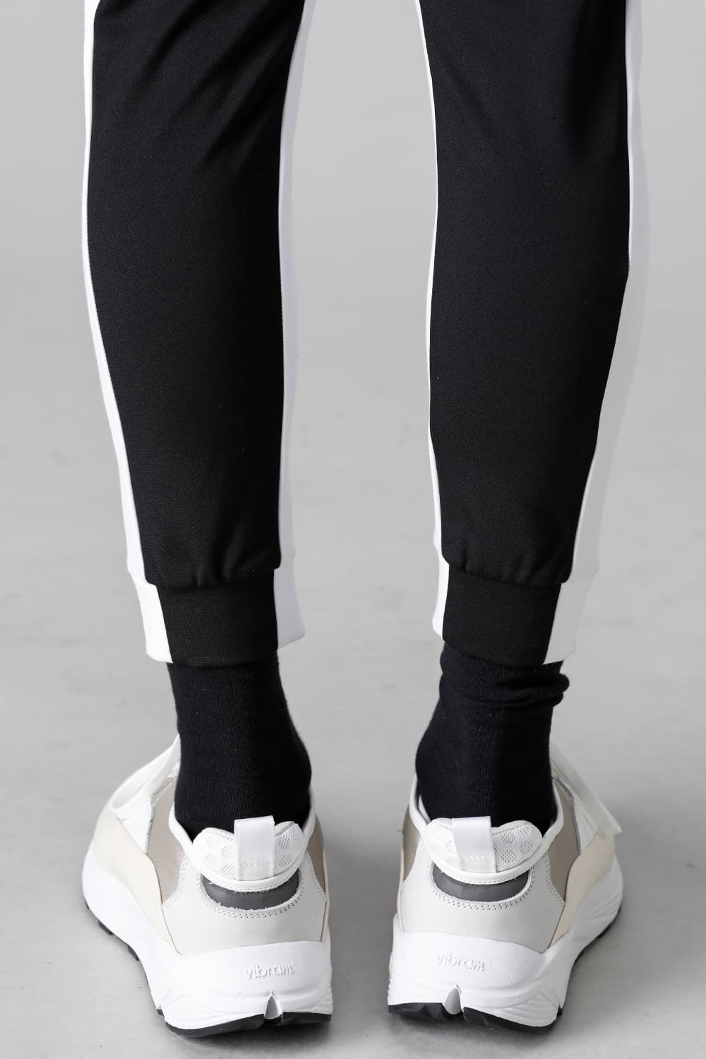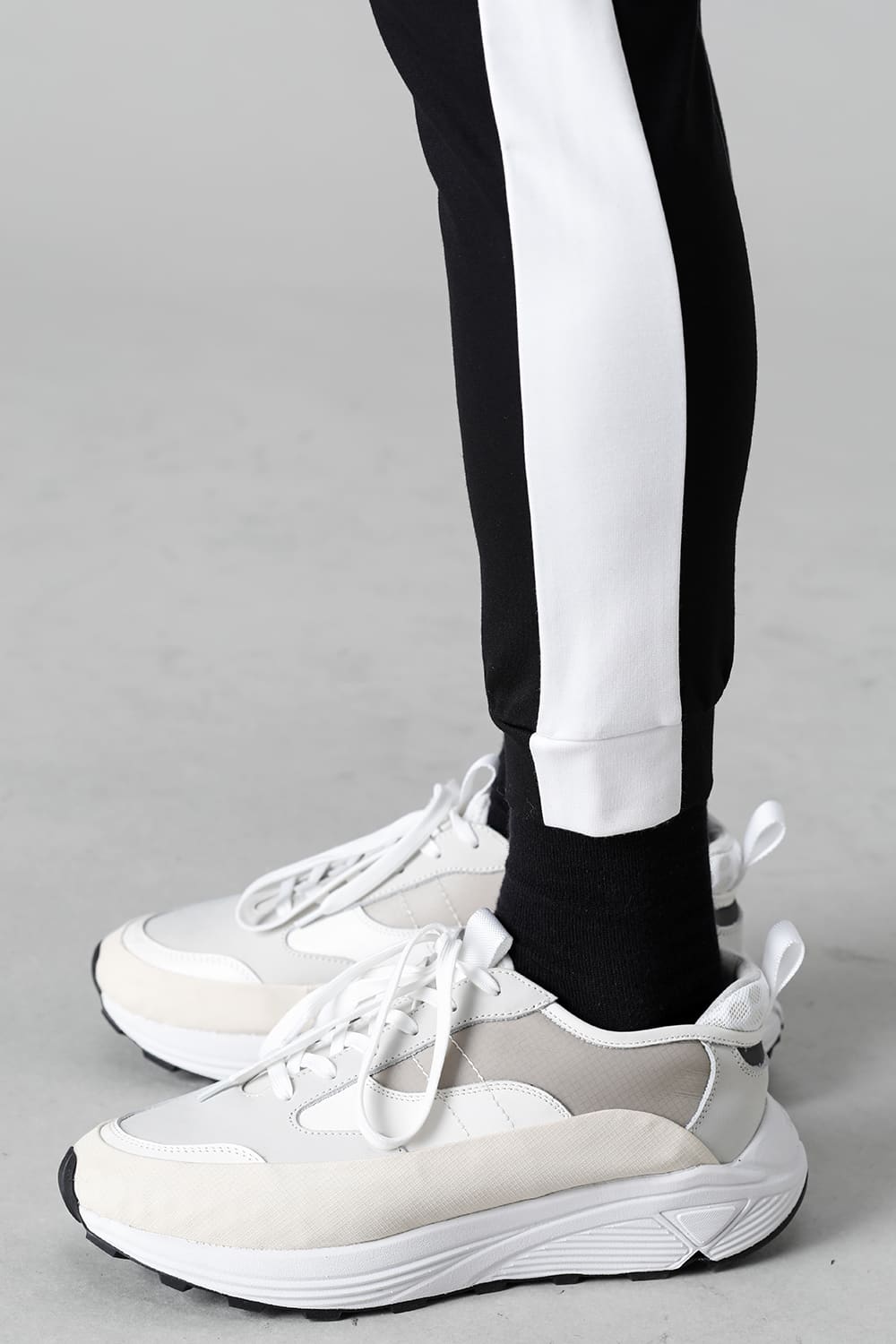 キックバックの強いストレッチ仕様でバーズアイ組織のラインジャージー。