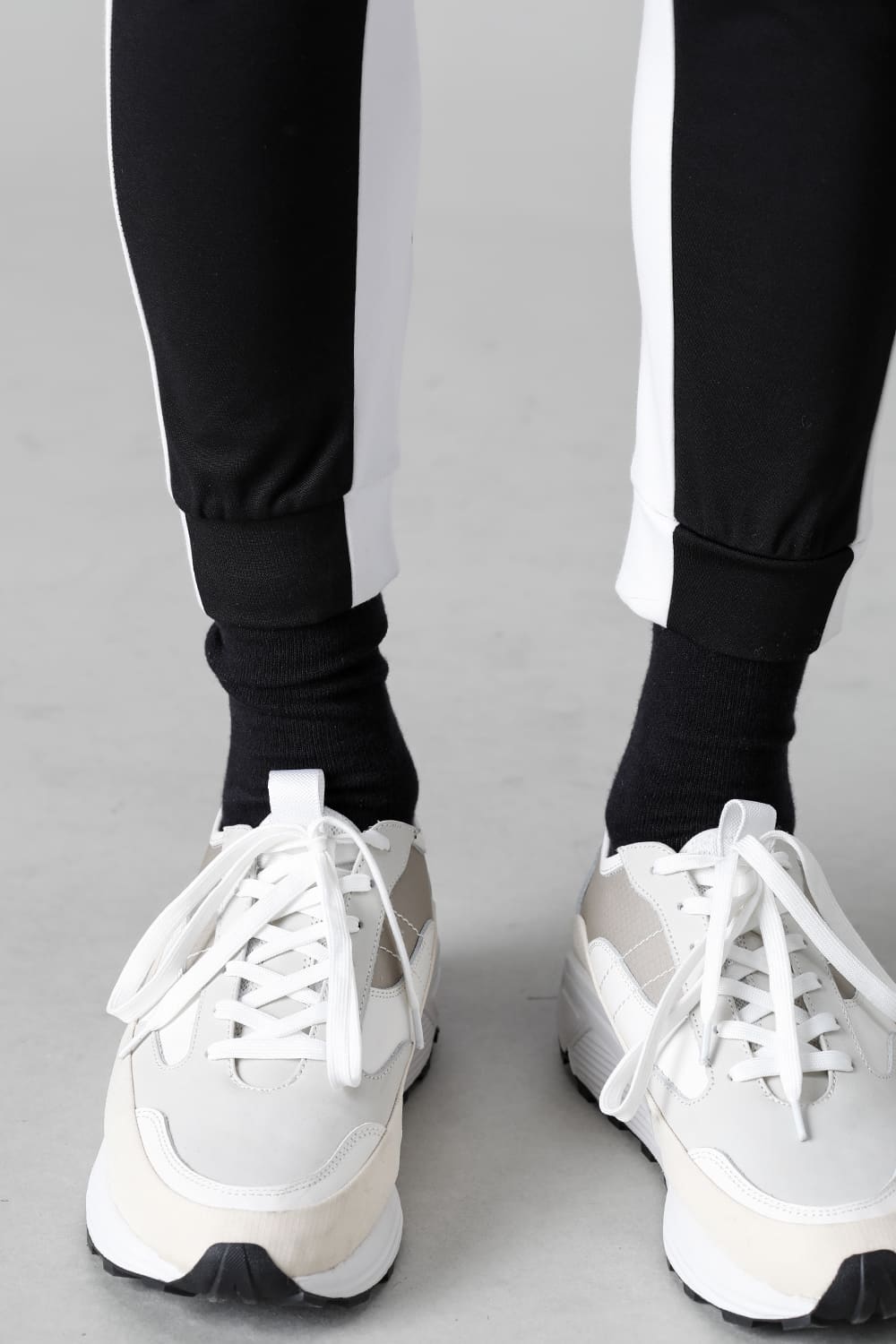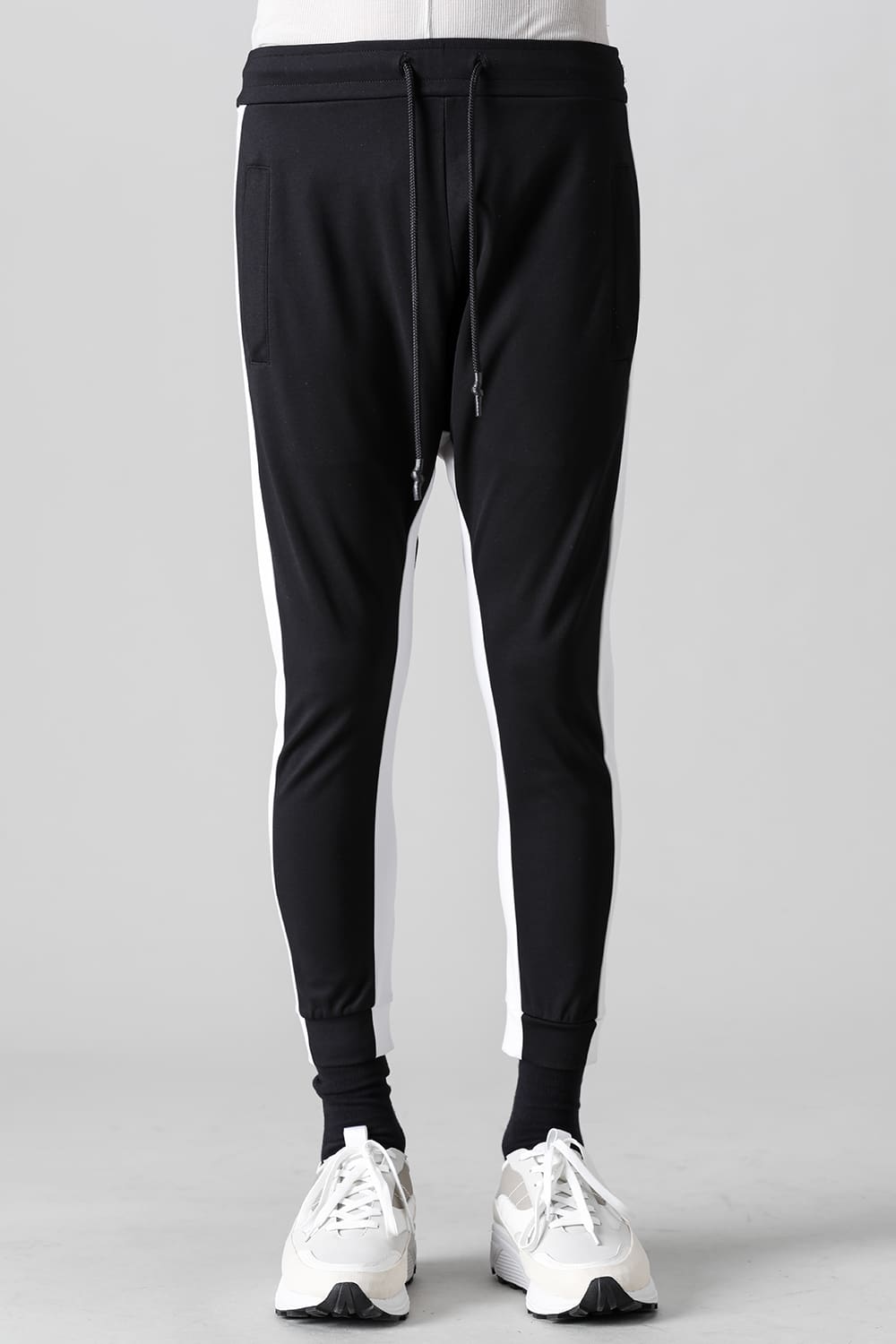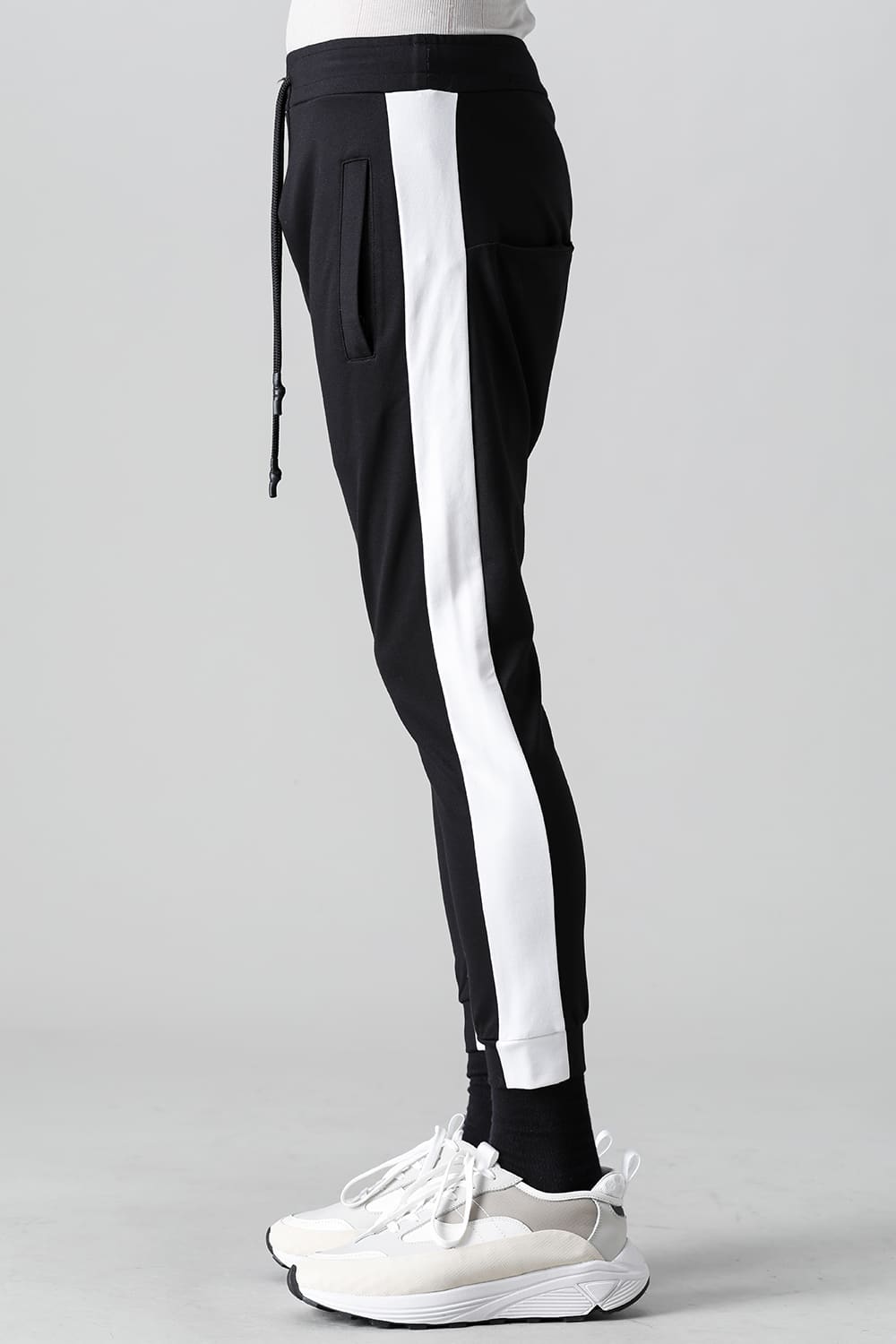 キックバックの強いストレッチ仕様でバーズアイ組織のラインジャージー。
