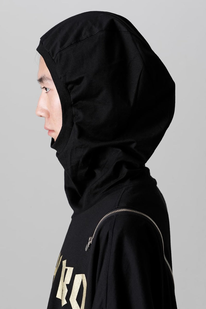 ネック部分はバラクラバ式のフーディーとなっており、秋冬には防寒対策としても活用していただける仕様。
