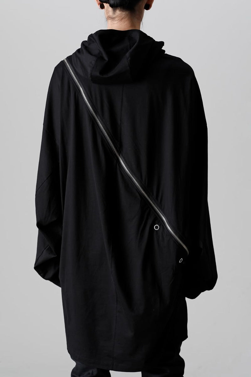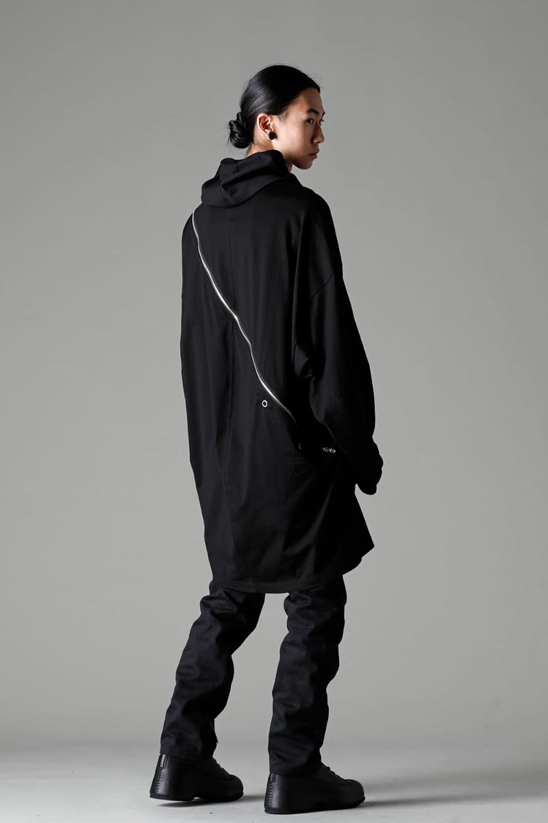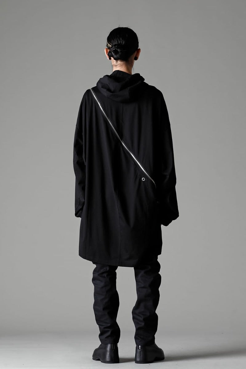背中部分は斜めに配備したジップデザインを採用しており、開閉により様々なアレンジをして着用できるユーモア性も感じるアイテムです。