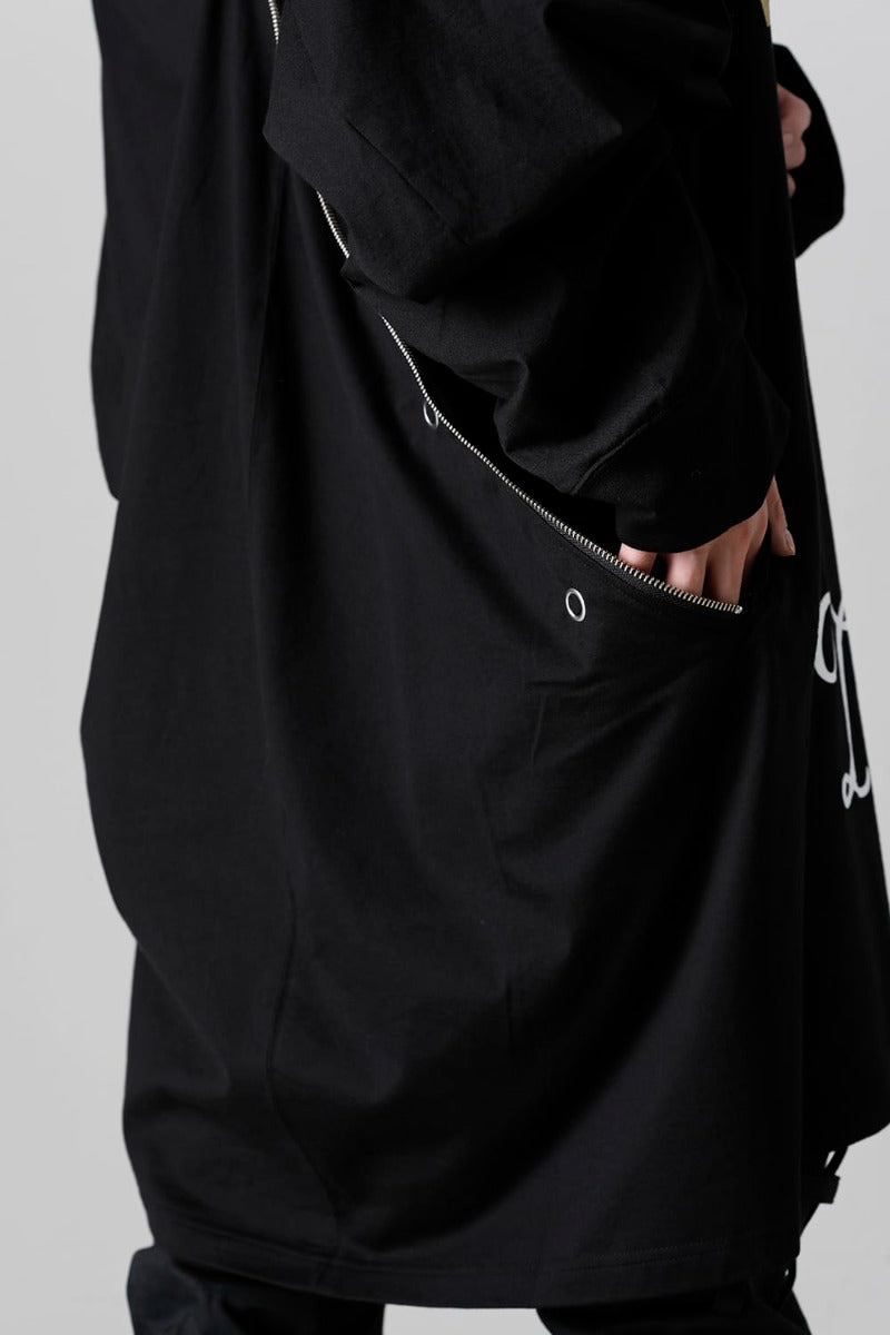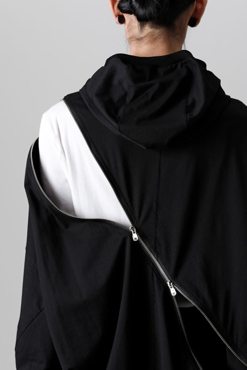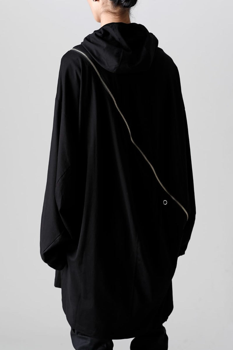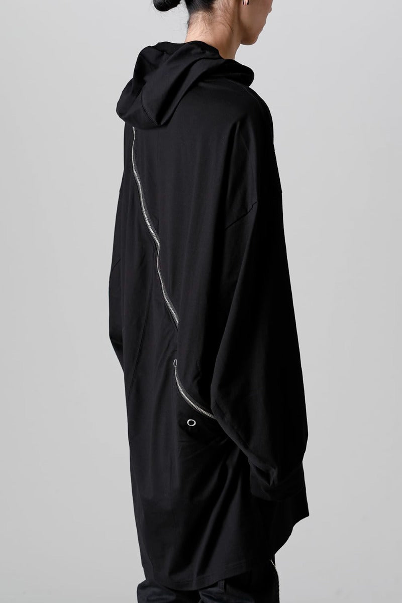 背中部分は斜めに配備したジップデザインを採用しており、開閉により様々なアレンジをして着用できるユーモア性も感じるアイテムです。