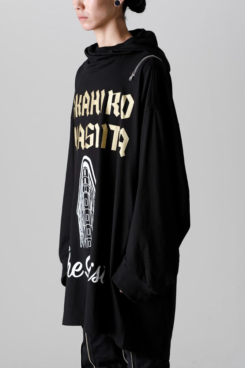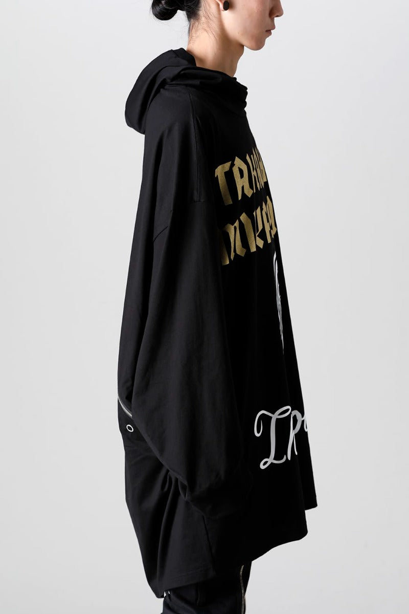 フロントに大きくブランドオリジナルプリントを施したプルオーバーフーディー。